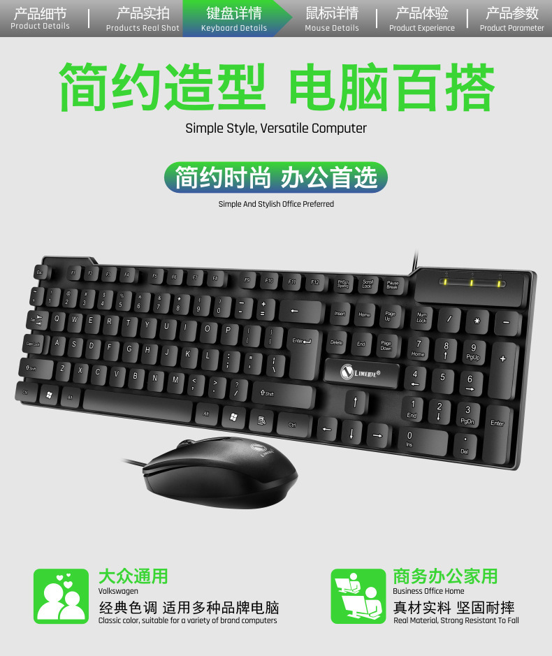 리튬 마그네슘 T13 유선 키보드 키보드 마우스 세트 USB 데스크톱 노트북 사무실 키보드 마우스 세트스토어 가기