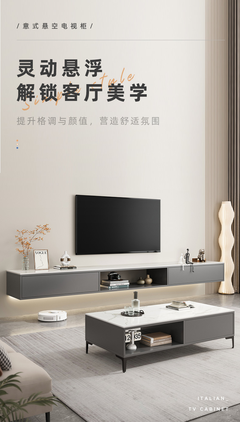 轻奢岩板电视柜茶几组合客厅家用悬空电视机柜卧室小户型简约现代