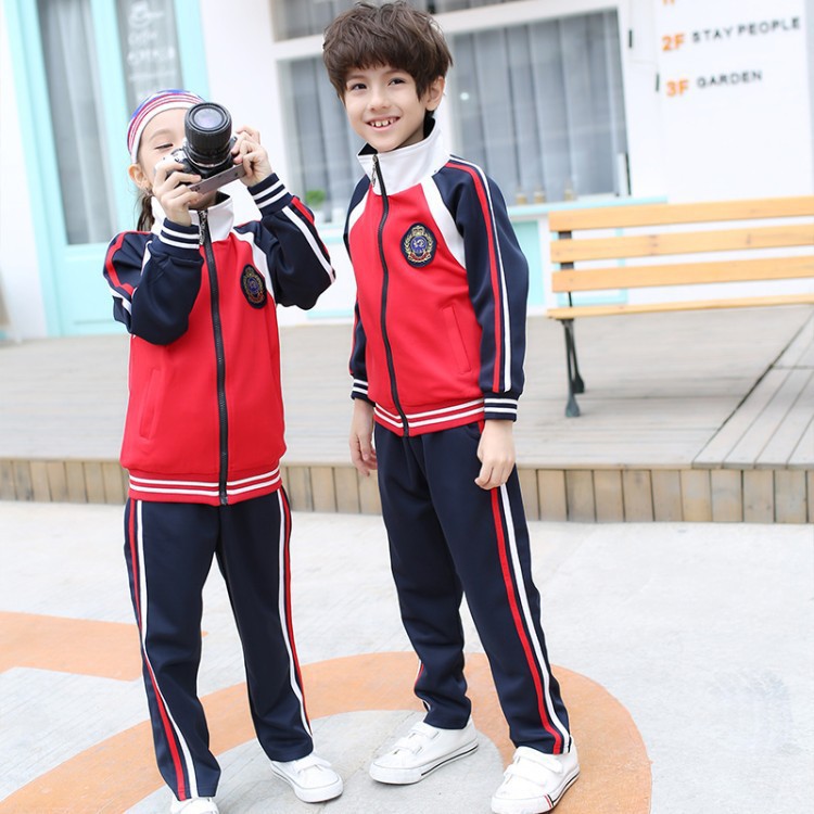남학생과 여학생을위한 유치원 의류 새 학교 유니폼 봄과 가을 새로운 긴 소매 세트 스포츠 초등학교 유니폼 도매스토어 가기