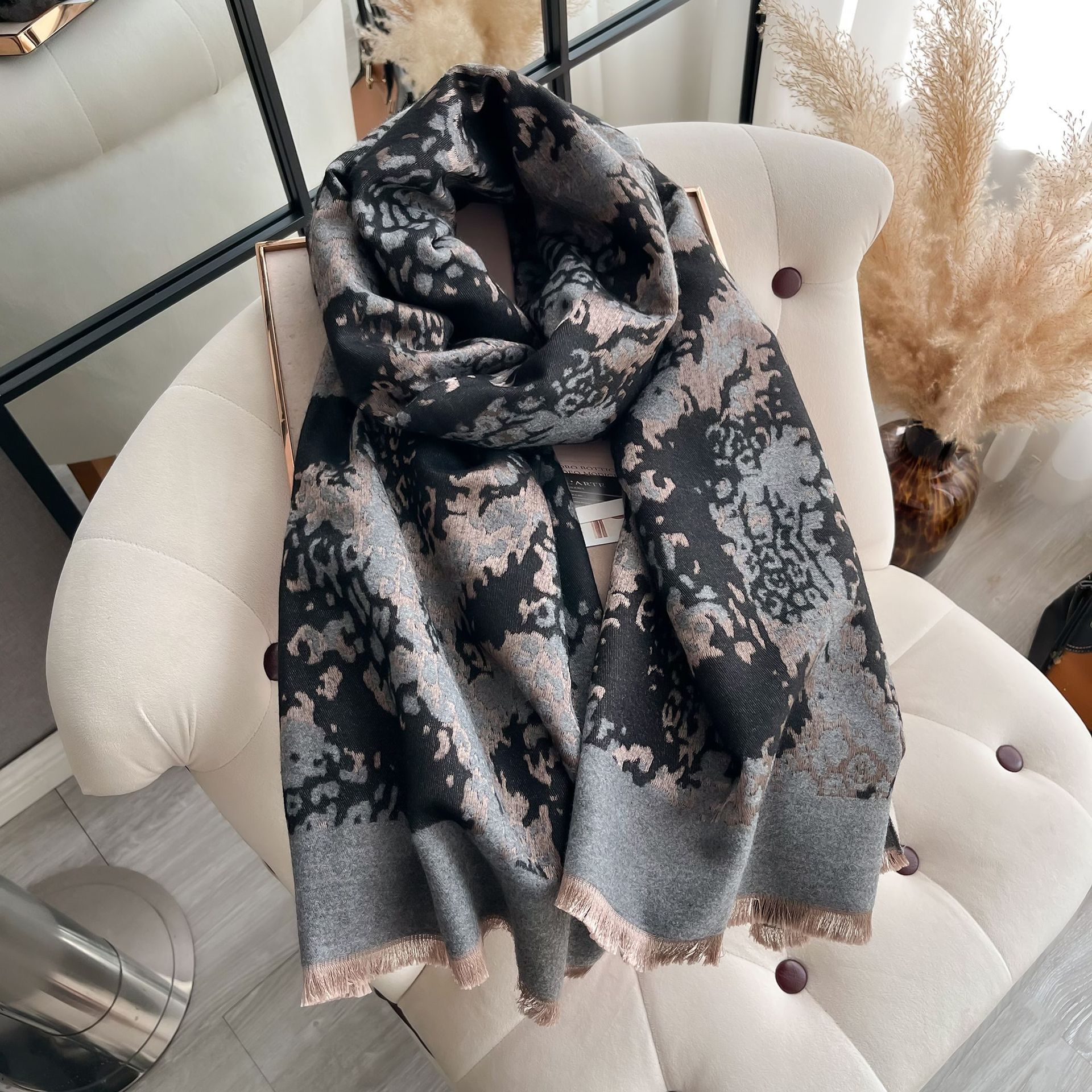 뉴 레오파드 무늬 대형 롱 스카프 한국식 올매치 따뜻한 캐시미어 스카프 여자 두꺼운 여자 목 케이프 목도리