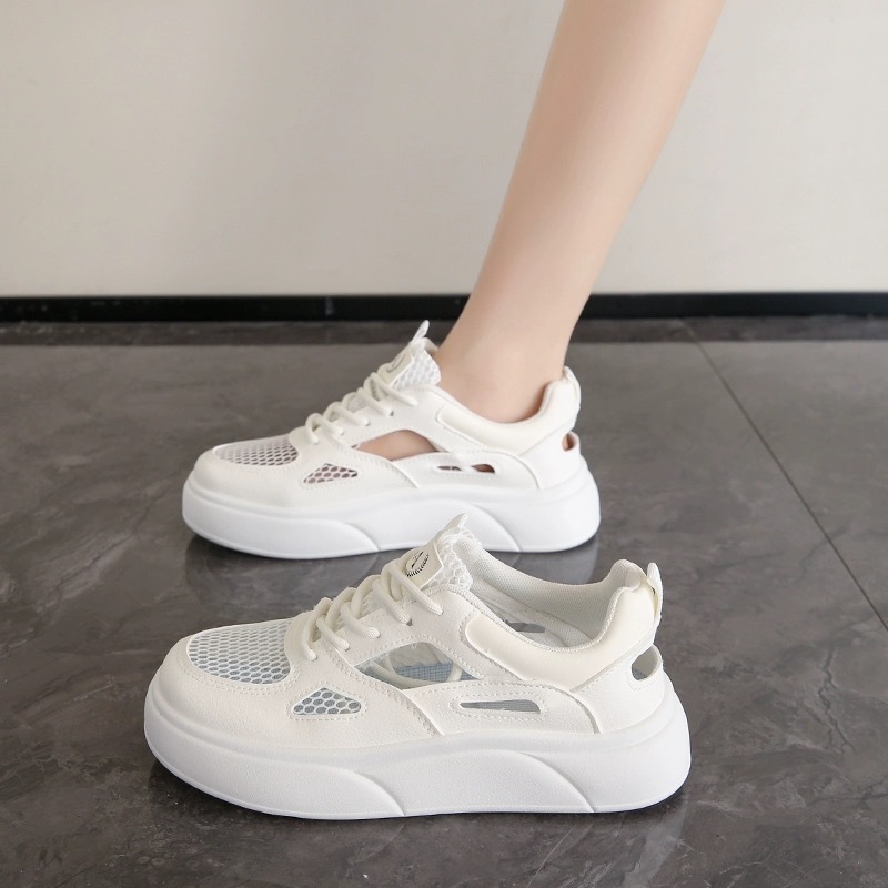 여자 스니커즈 2024 여름 새로운 두꺼운 밑창 캐주얼 독일 트레이닝 슈즈 올 매치 할로우 아웃 통기성 얇은 스포츠 화이트 슈즈