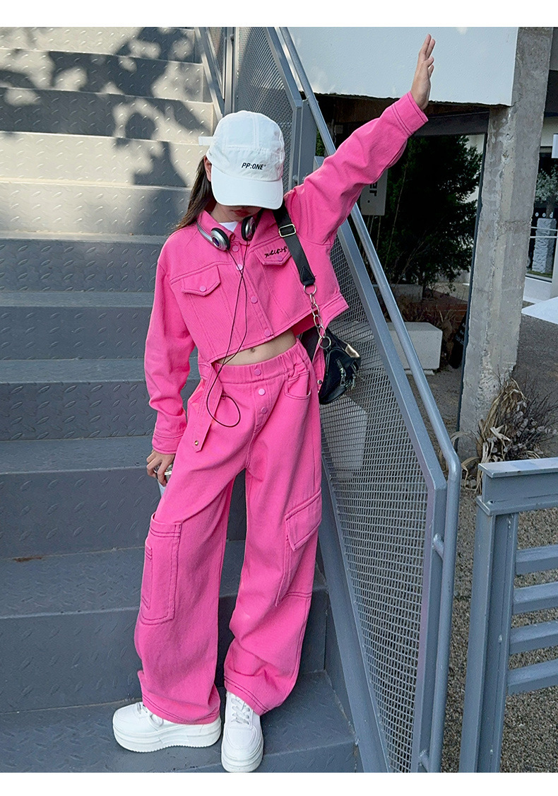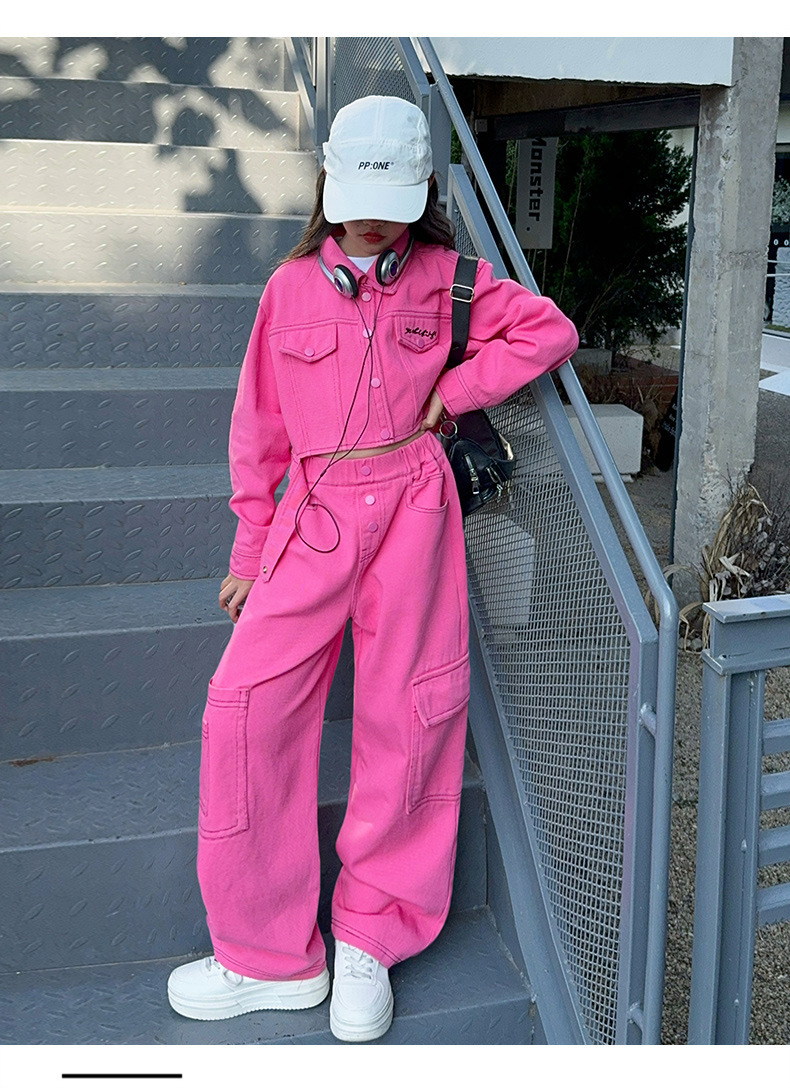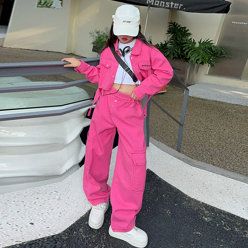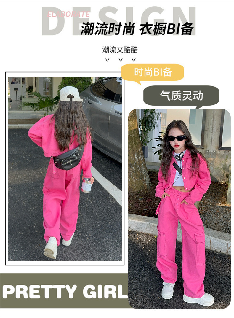 가을 새 스타일 큰 아이 스파이스 스타일 패션 긴 소매 자켓 넓은 다리 바지 바지 세트 원피스스토어 가기