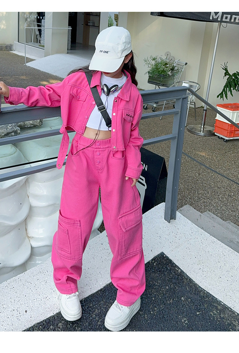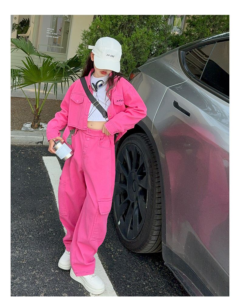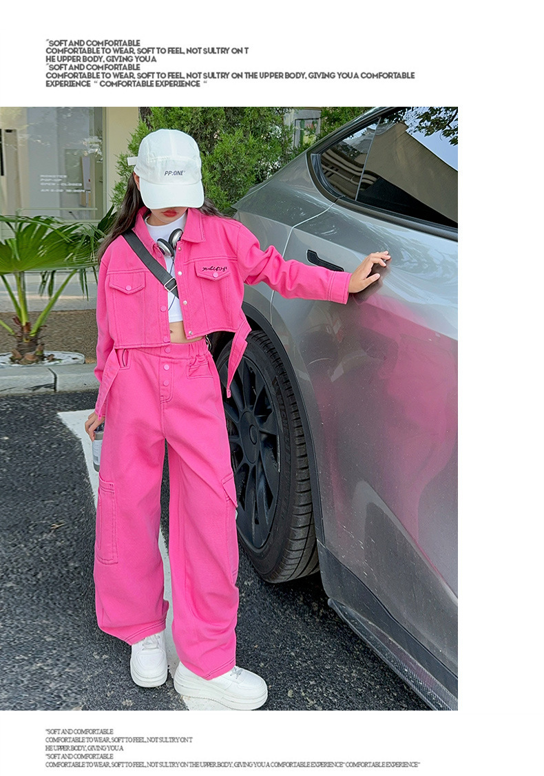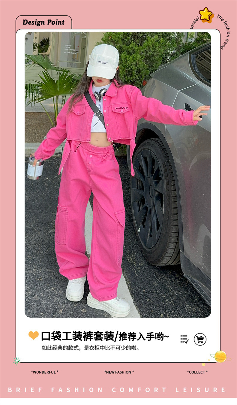 가을 새 스타일 큰 아이 스파이스 스타일 패션 긴 소매 자켓 넓은 다리 바지 바지 세트 원피스스토어 가기