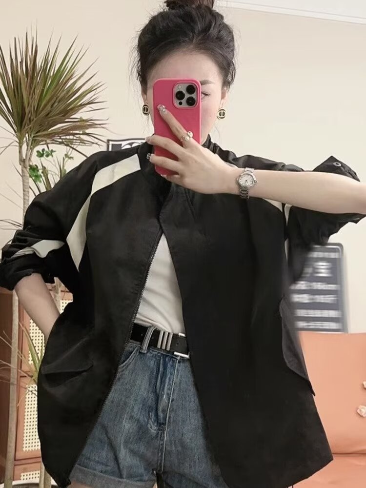 봄과 가을 러시 옷 여성 쇼트 코트 새로운 미국 캐주얼 스포츠 재킷 탑 작은 루즈 탑스토어 가기