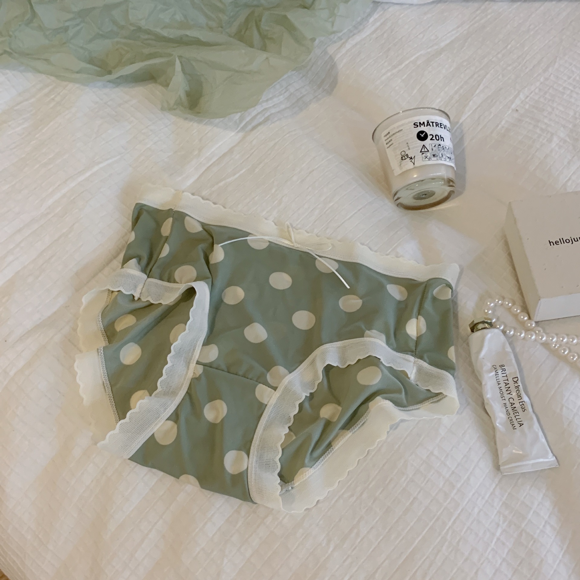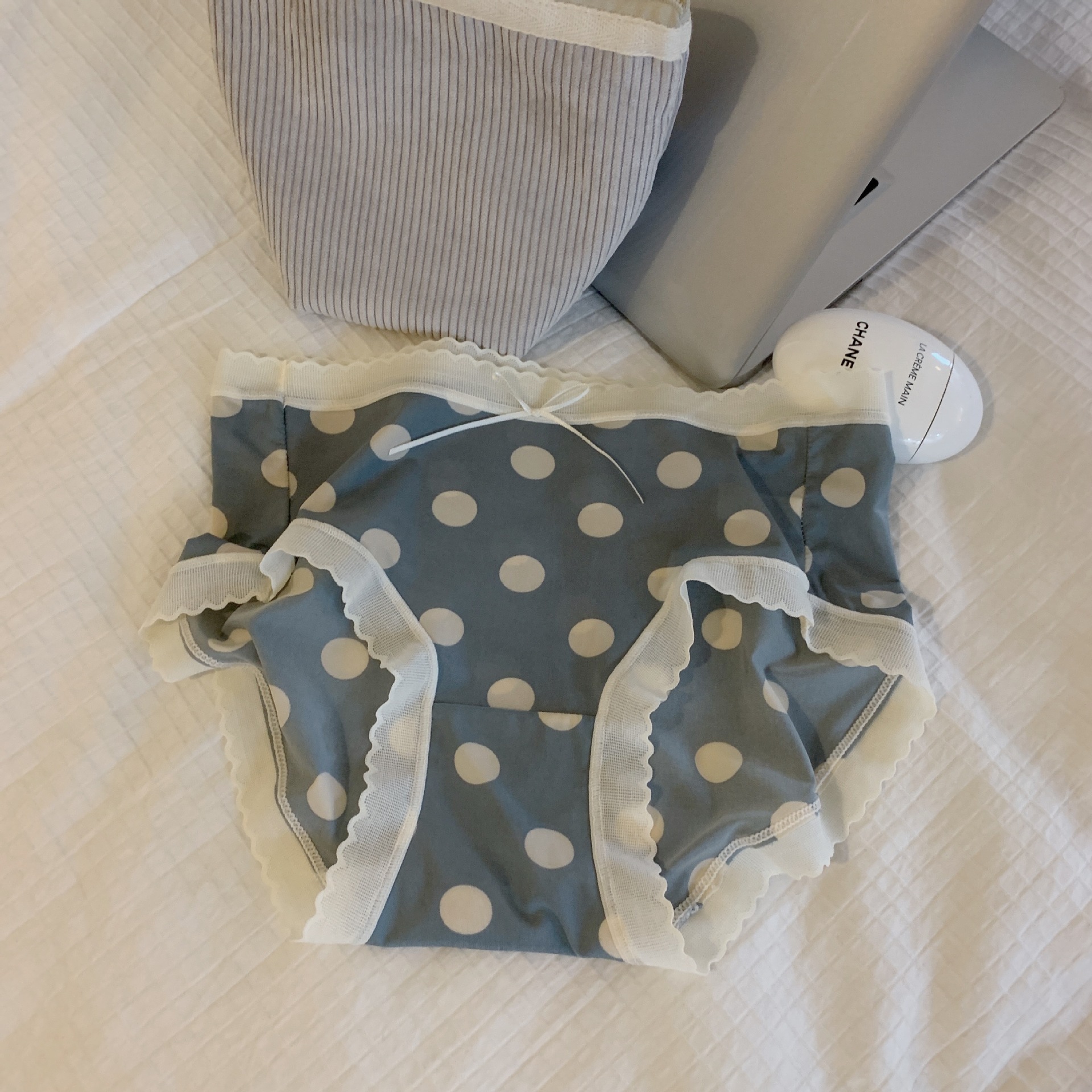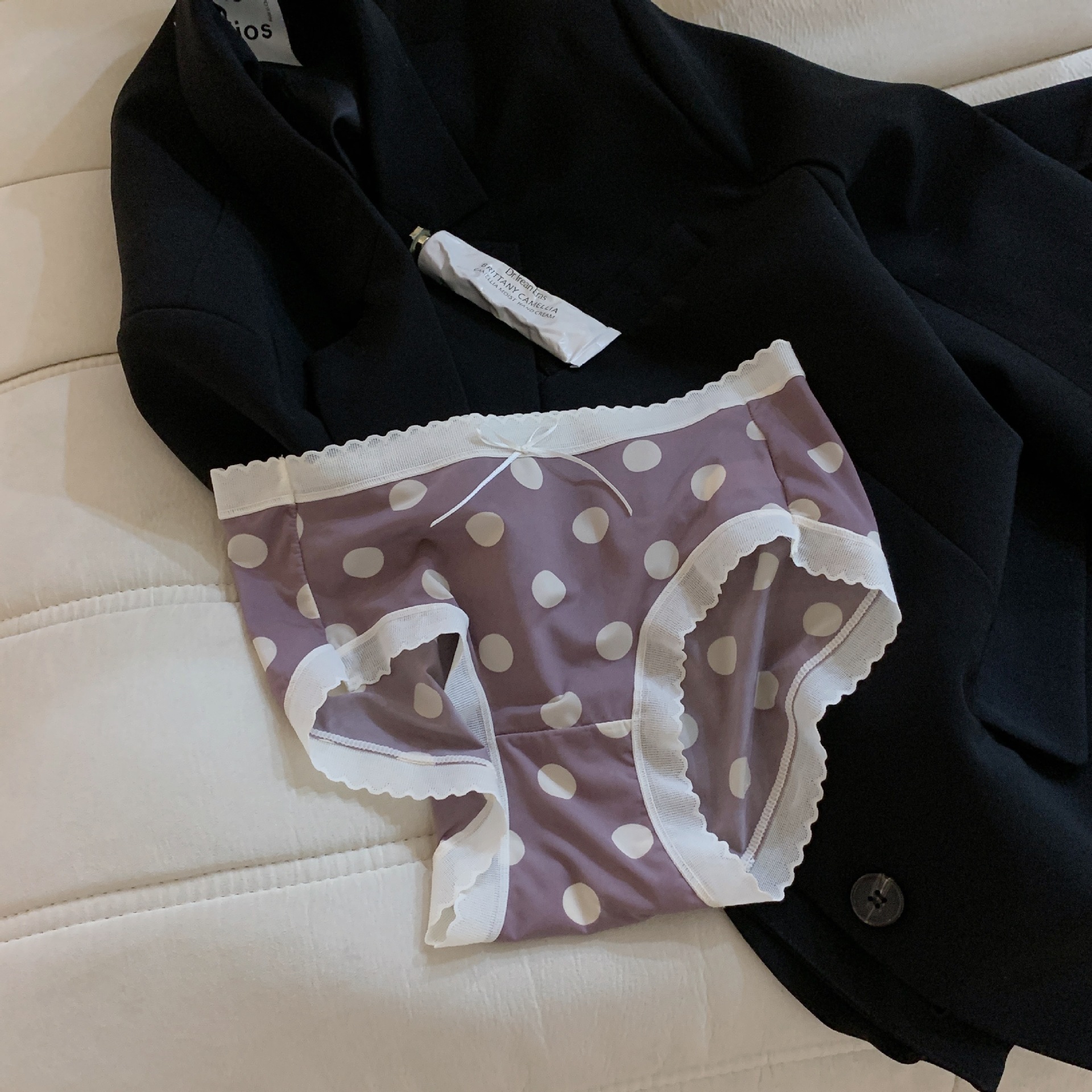 여름 귀여운 달콤한 소녀 웨이브 도트 아이스 실크 속옷 활 통기성 빠른 건조 코튼 크로치 중간 허리 소녀 브리프스토어 가기