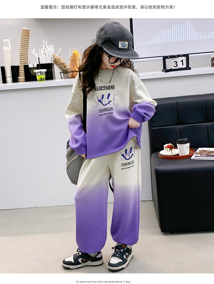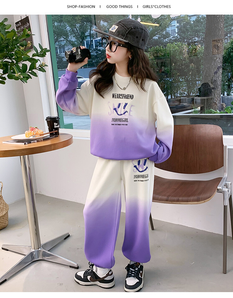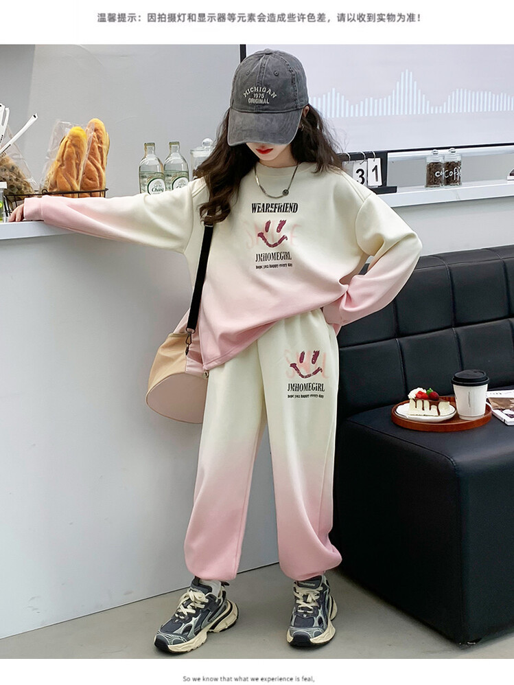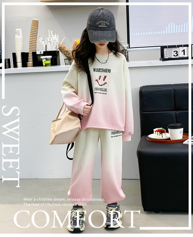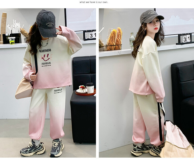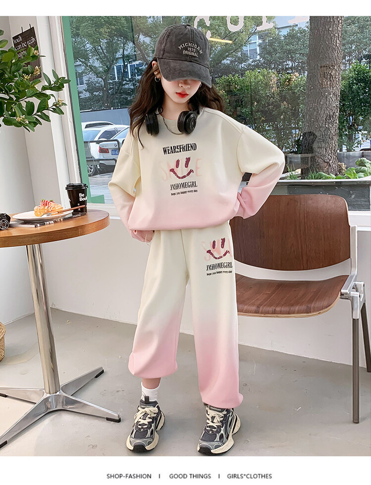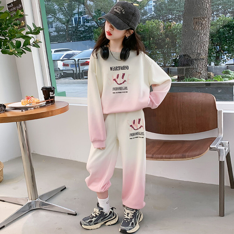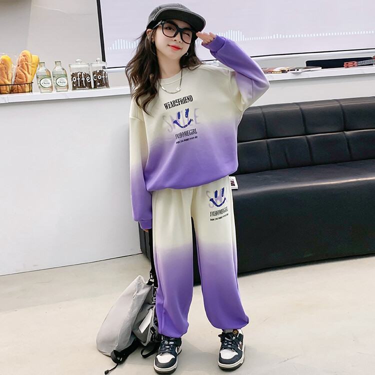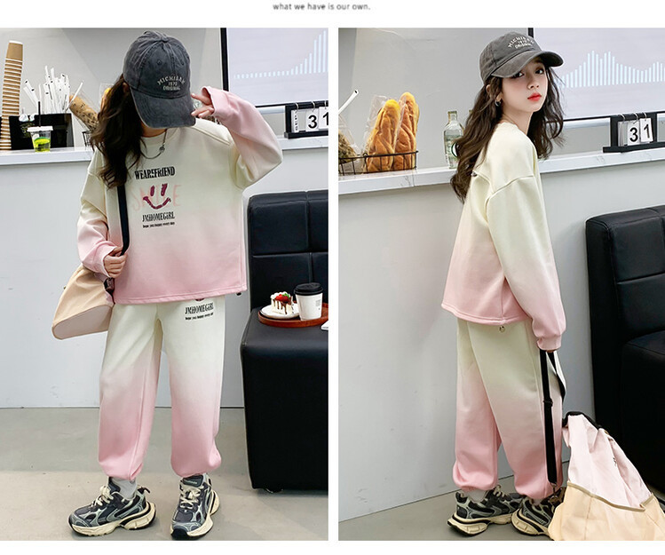 소녀 점진적 컬러 스웨트 셔츠 세트 2024 새로운 어린이 봄과 가을 착용 스포츠웨어 패셔너블 루즈 투피스 크로스 보더 세트스토어 가기