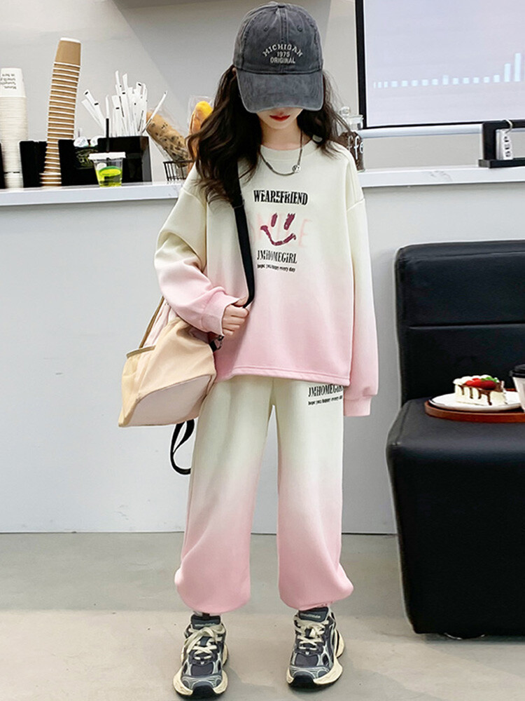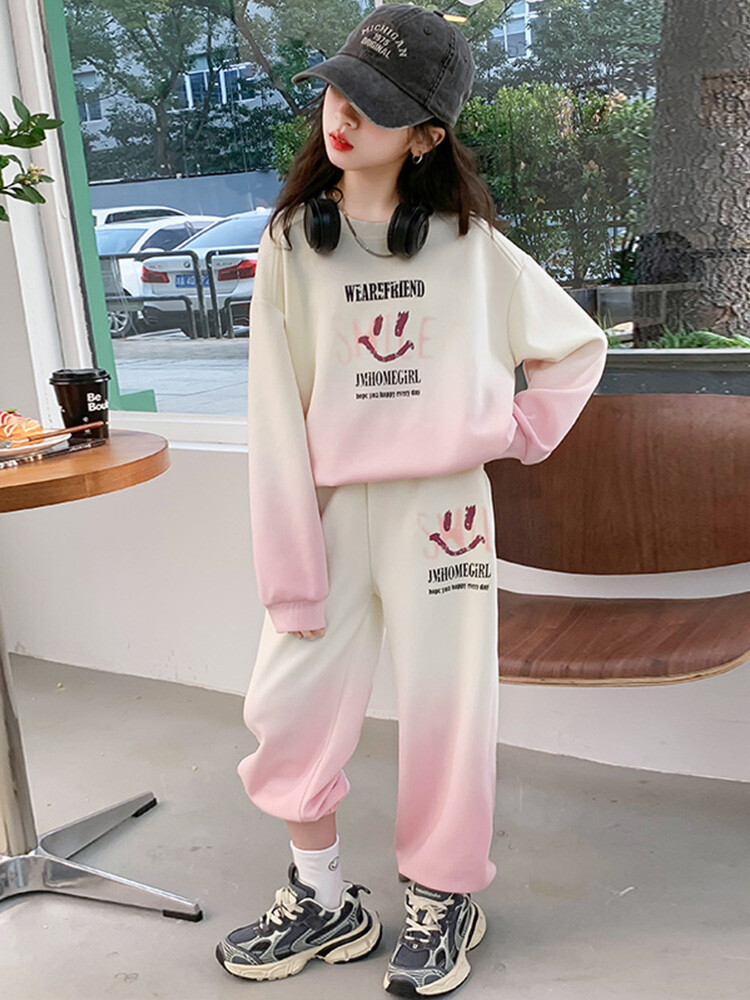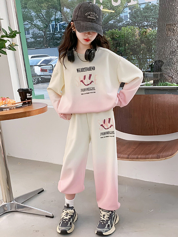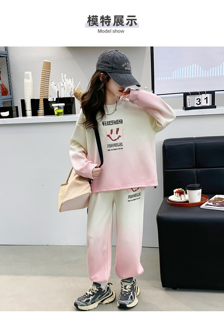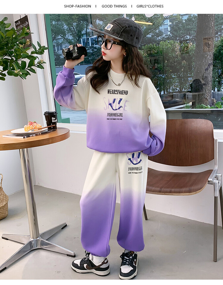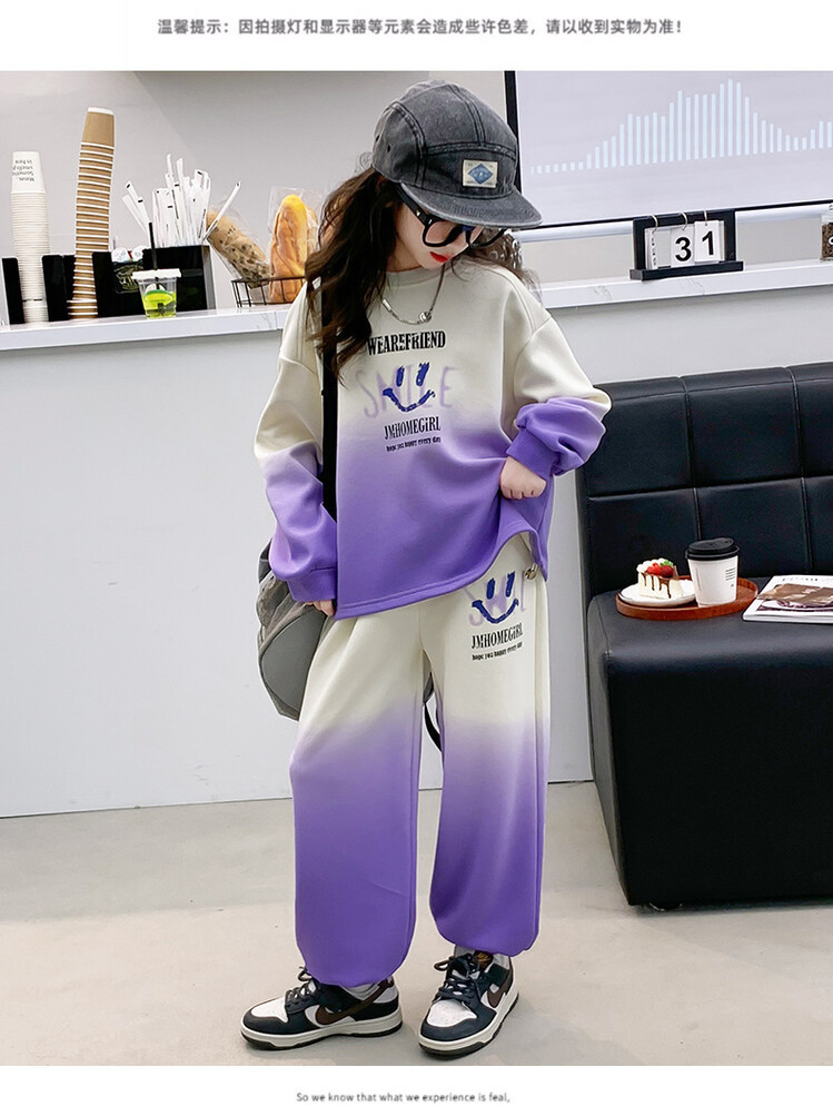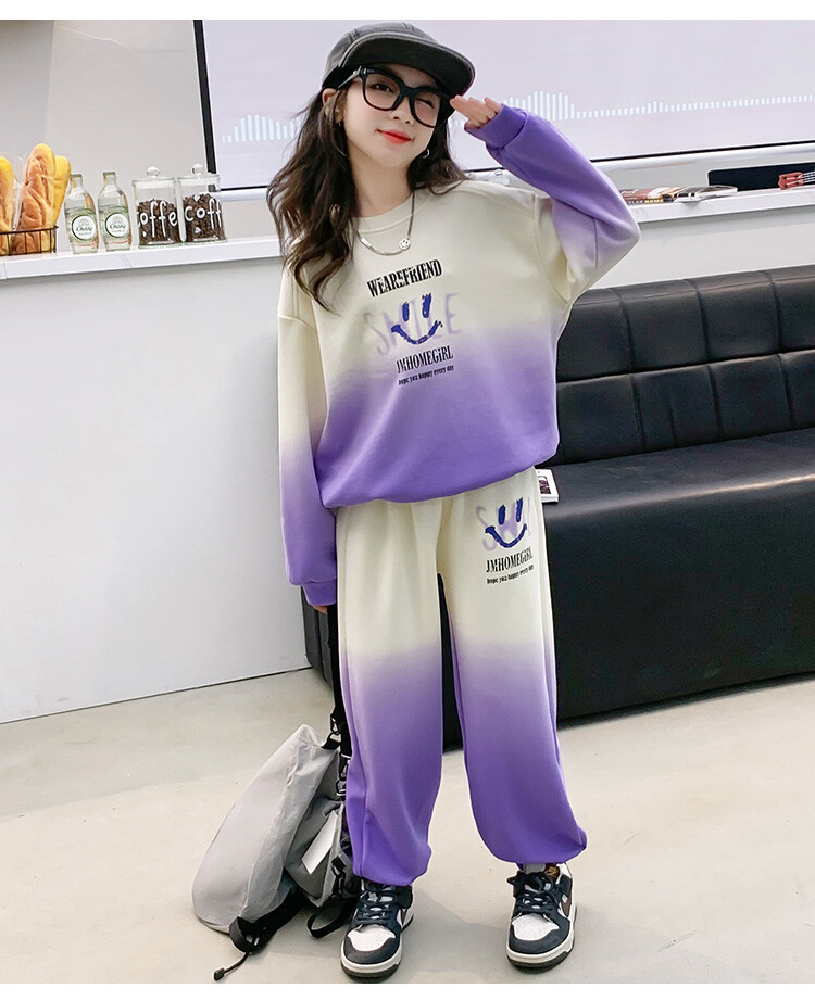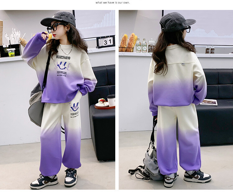 소녀 점진적 컬러 스웨트 셔츠 세트 2024 새로운 어린이 봄과 가을 착용 스포츠웨어 패셔너블 루즈 투피스 크로스 보더 세트스토어 가기
