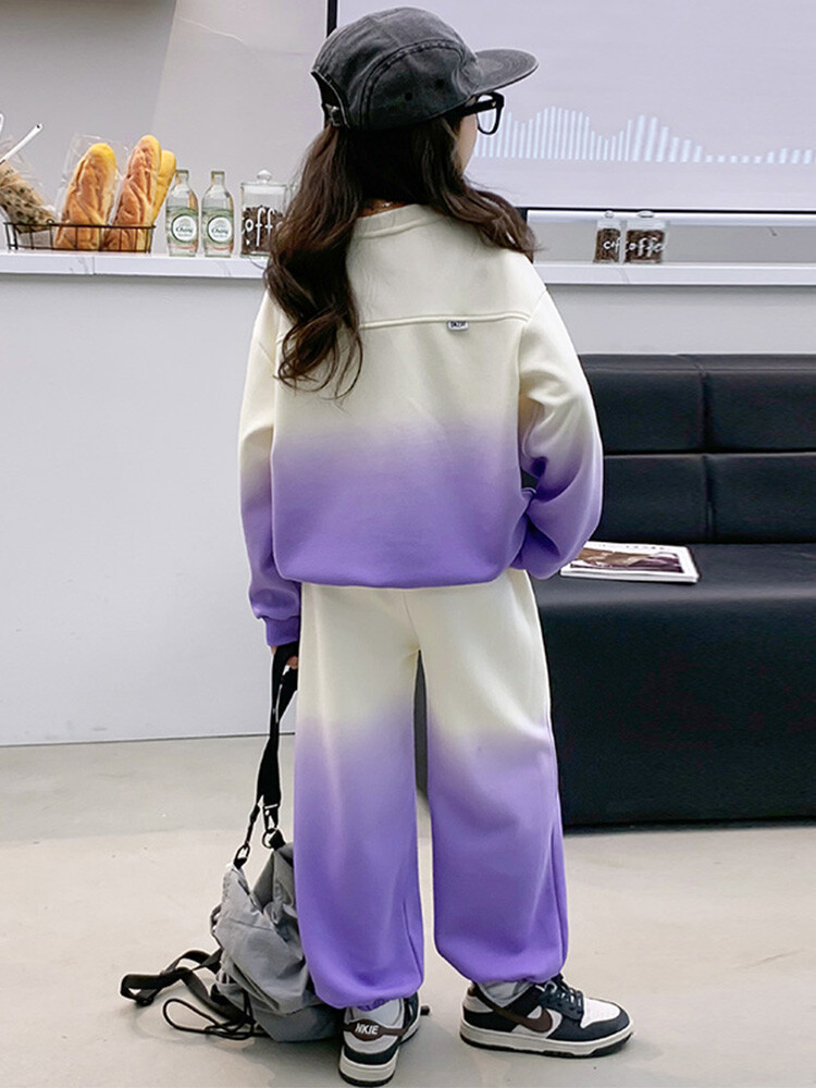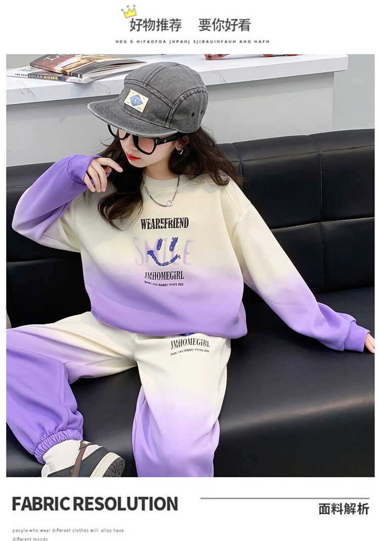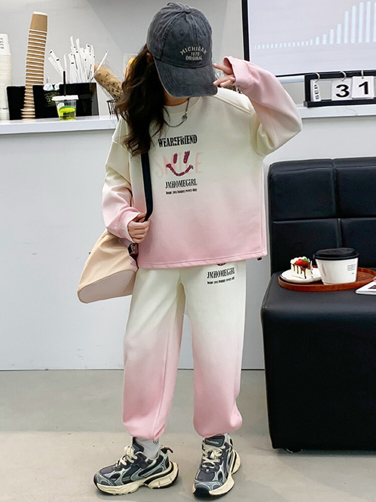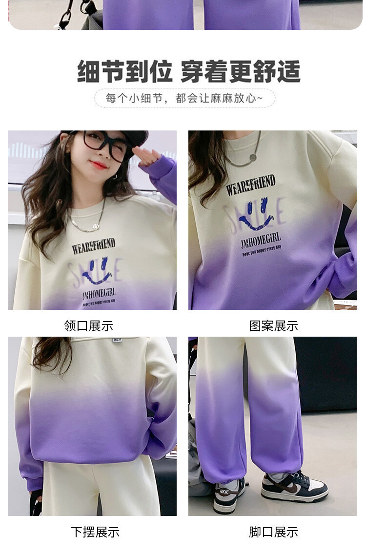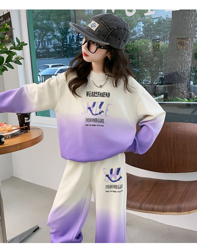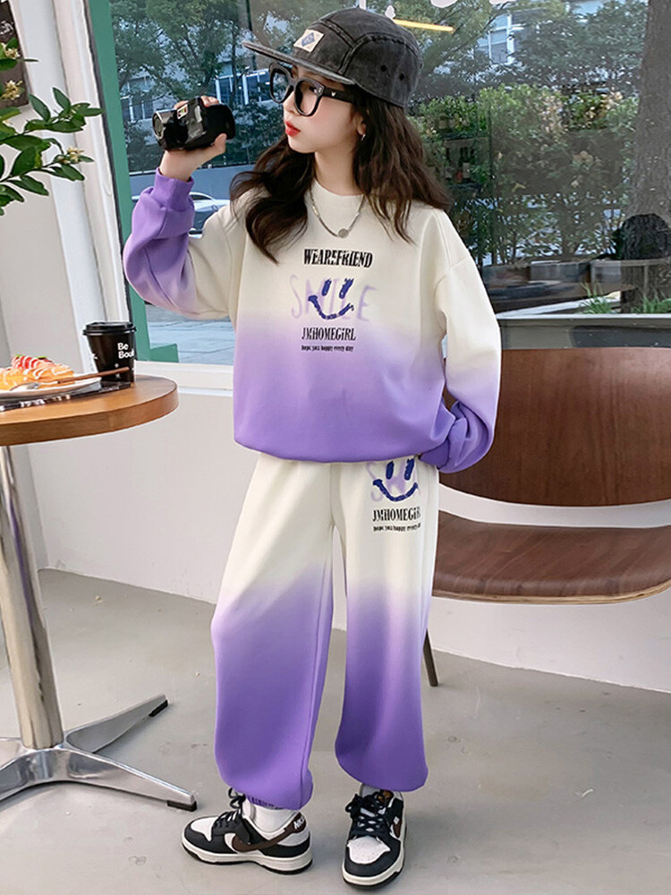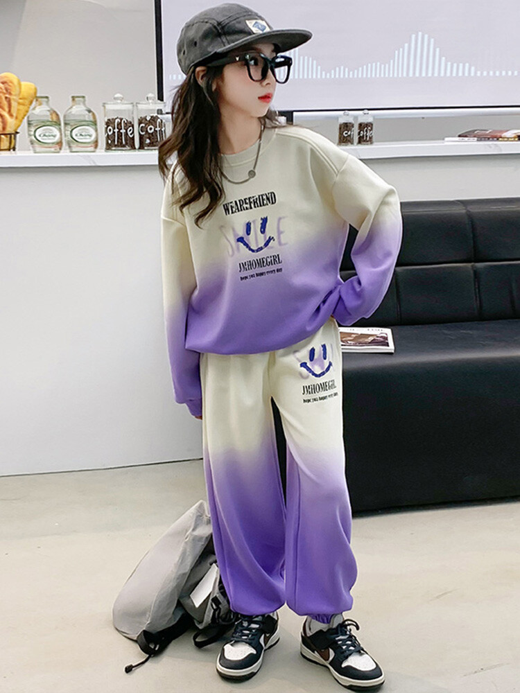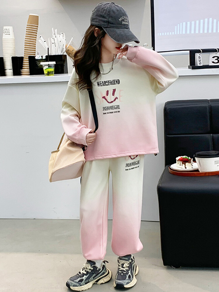 소녀 점진적 컬러 스웨트 셔츠 세트 2024 새로운 어린이 봄과 가을 착용 스포츠웨어 패셔너블 루즈 투피스 크로스 보더 세트스토어 가기