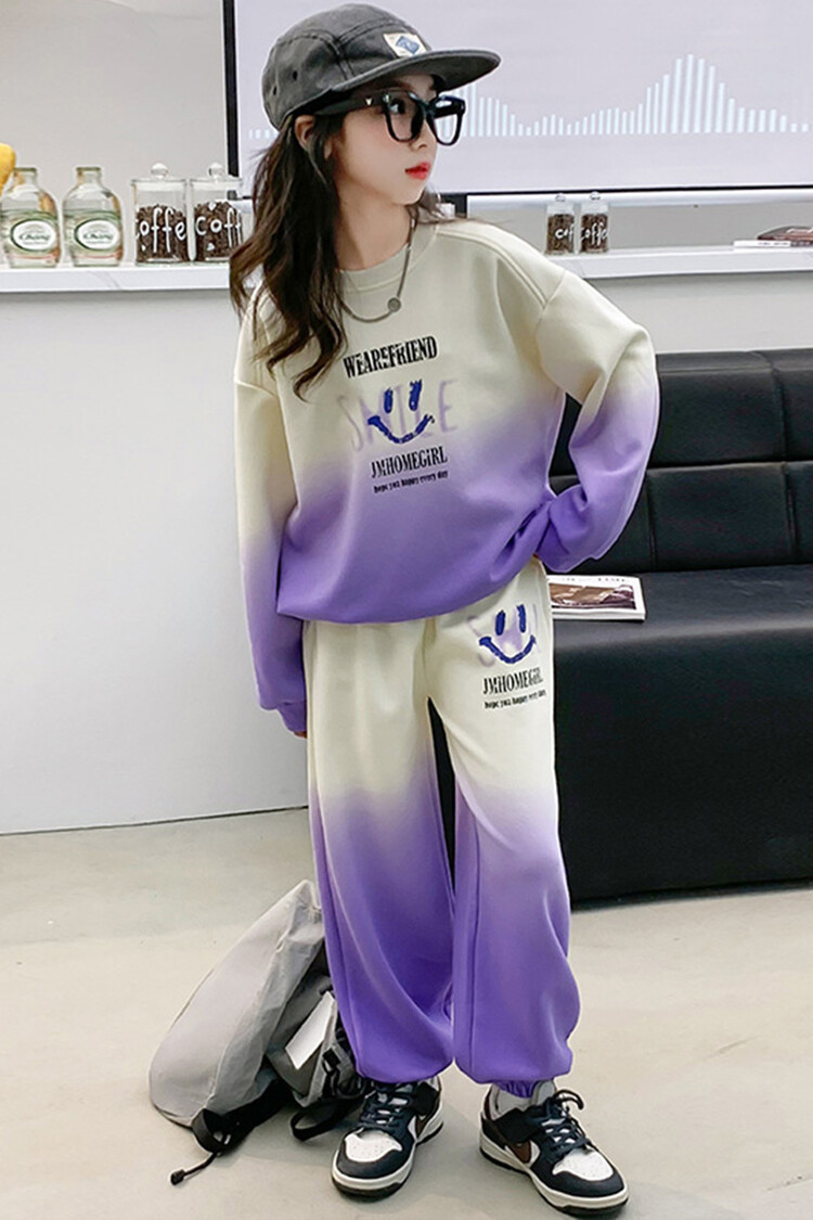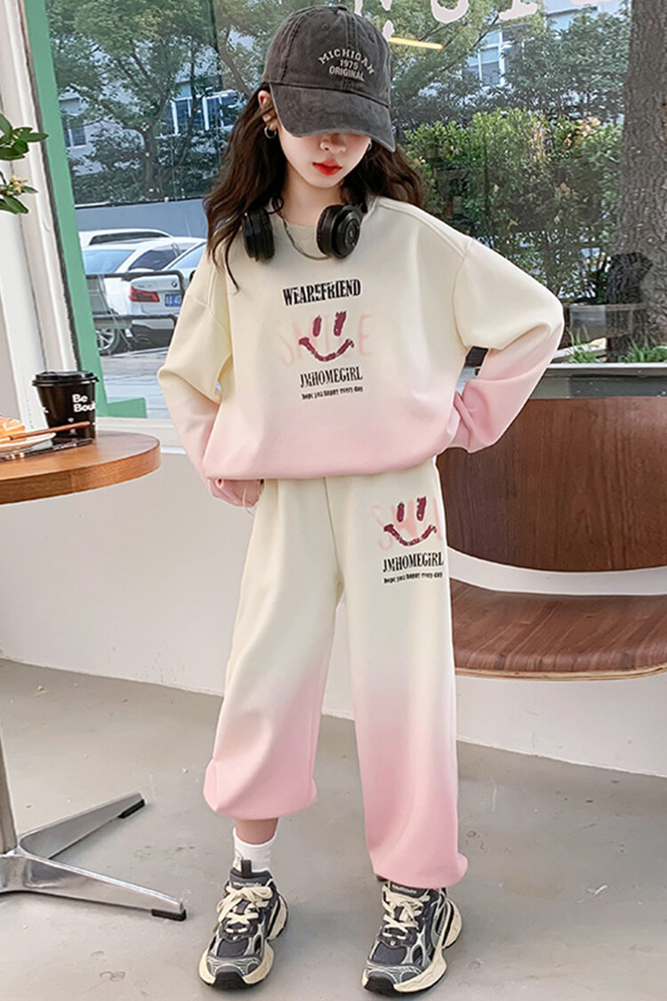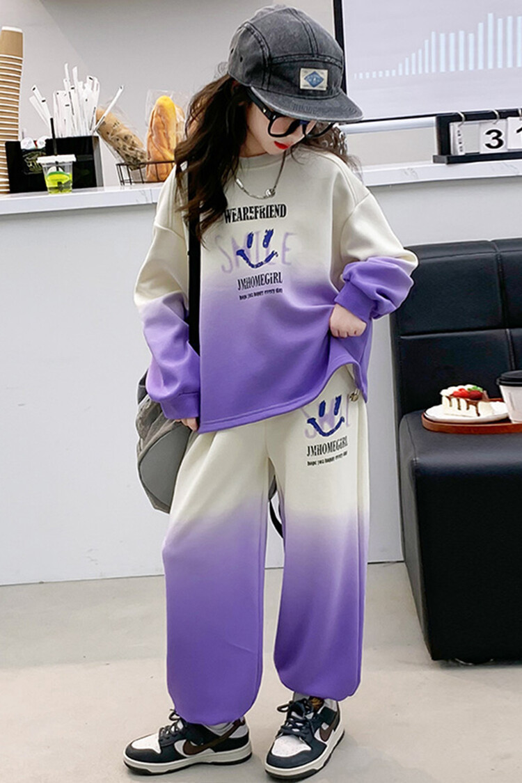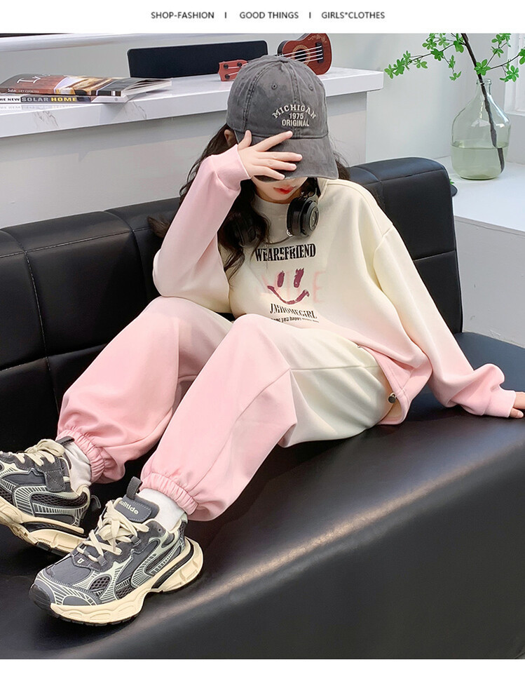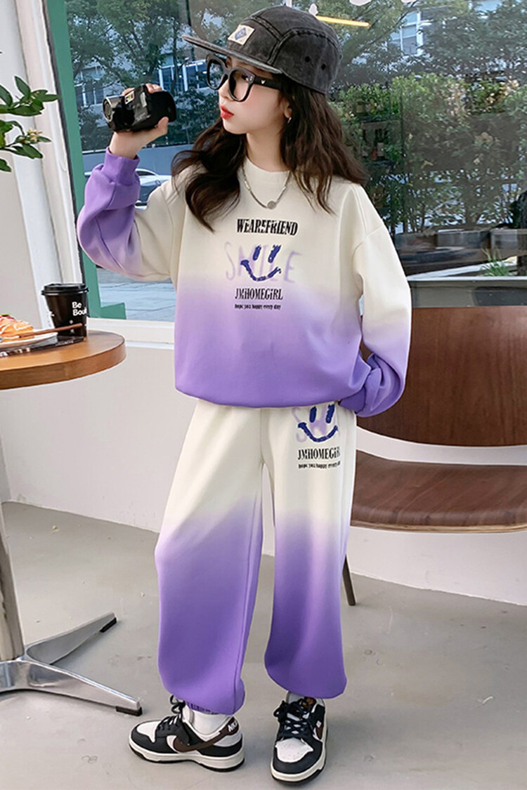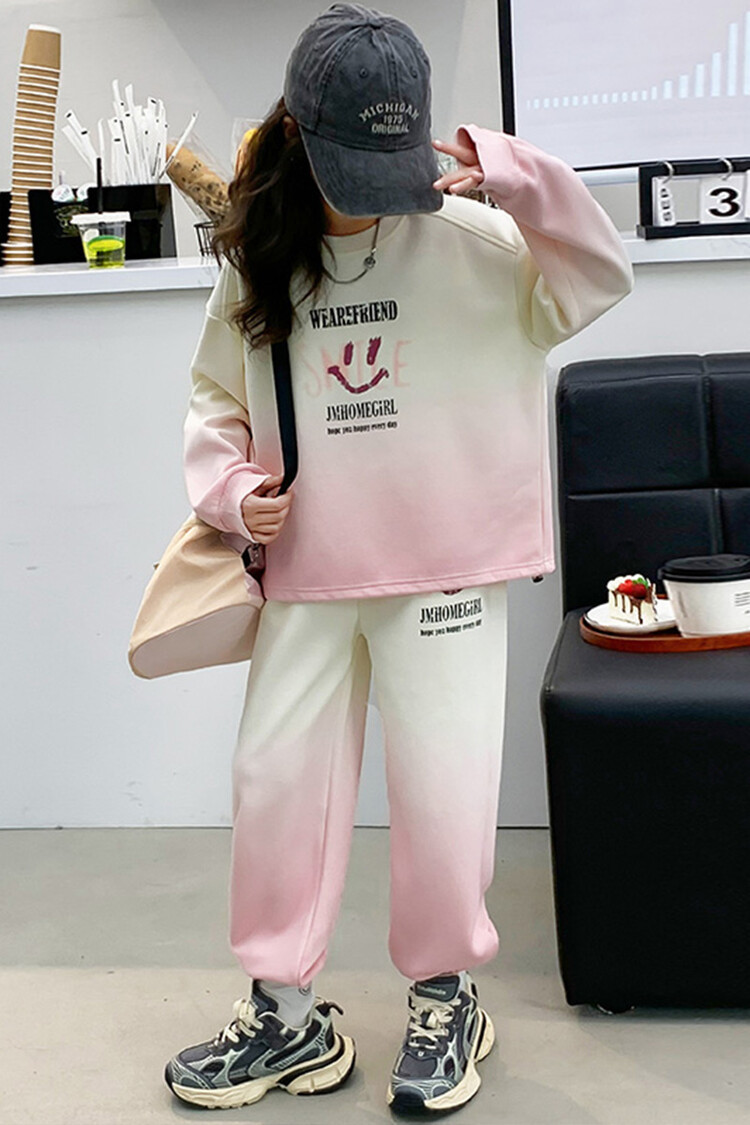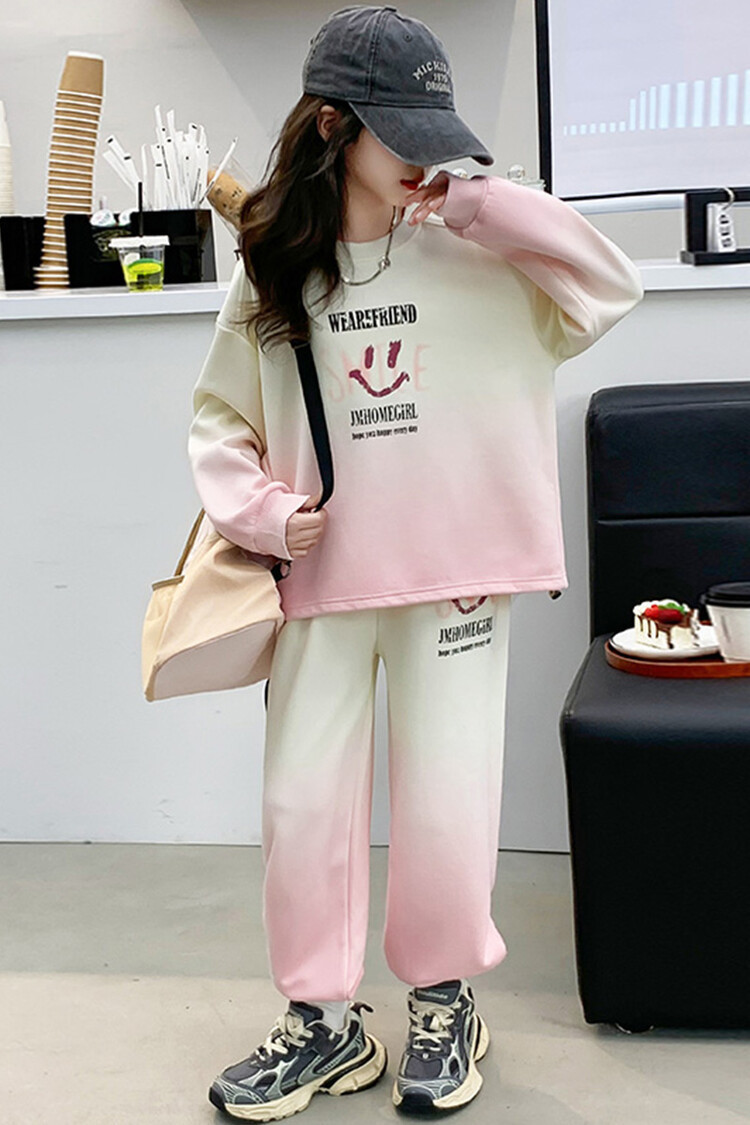 소녀 점진적 컬러 스웨트 셔츠 세트 2024 새로운 어린이 봄과 가을 착용 스포츠웨어 패셔너블 루즈 투피스 크로스 보더 세트스토어 가기