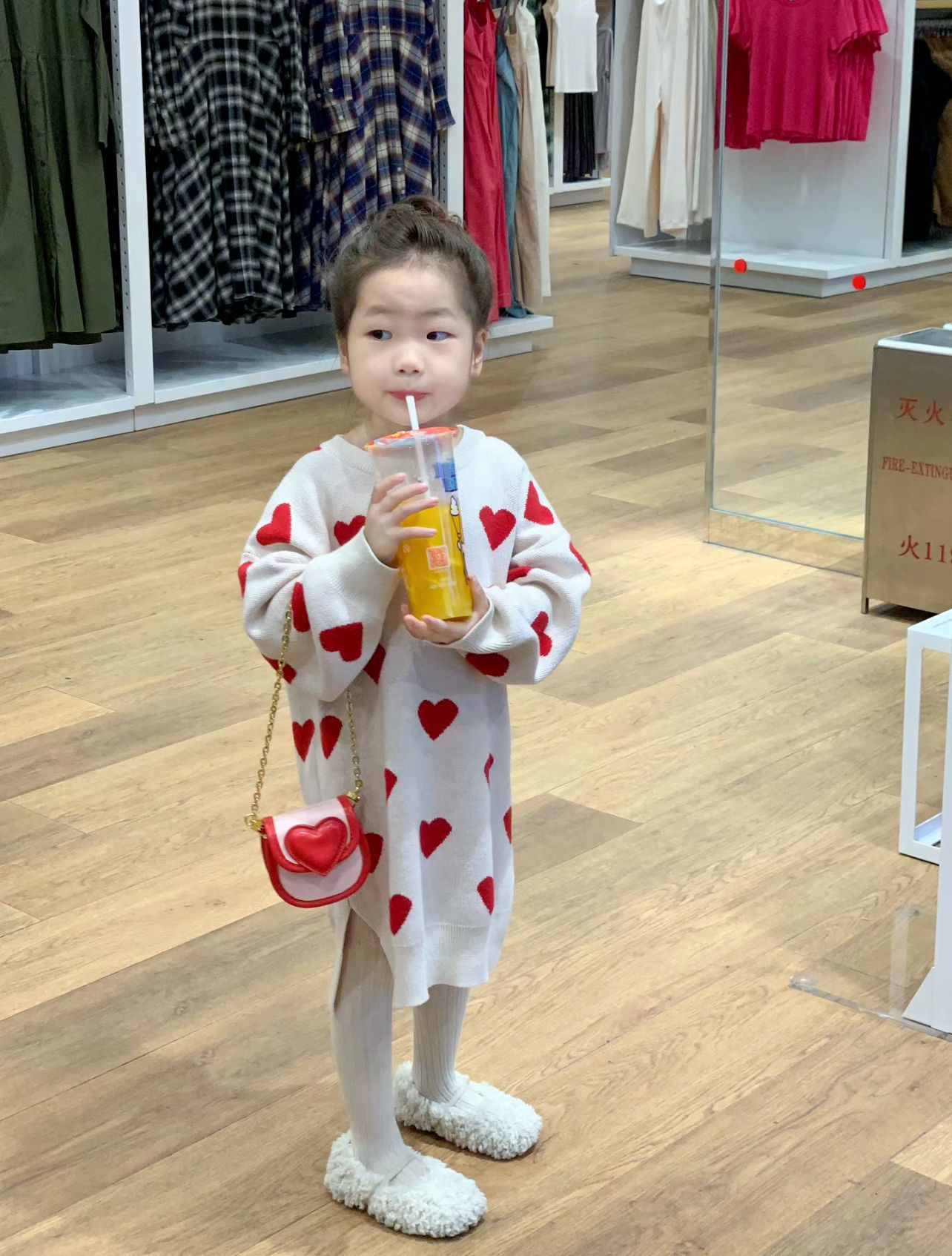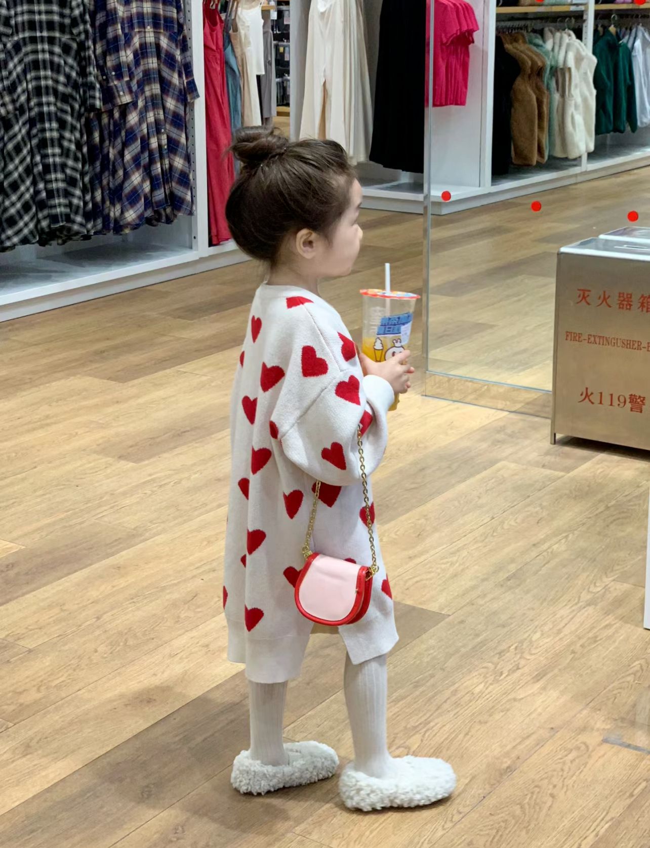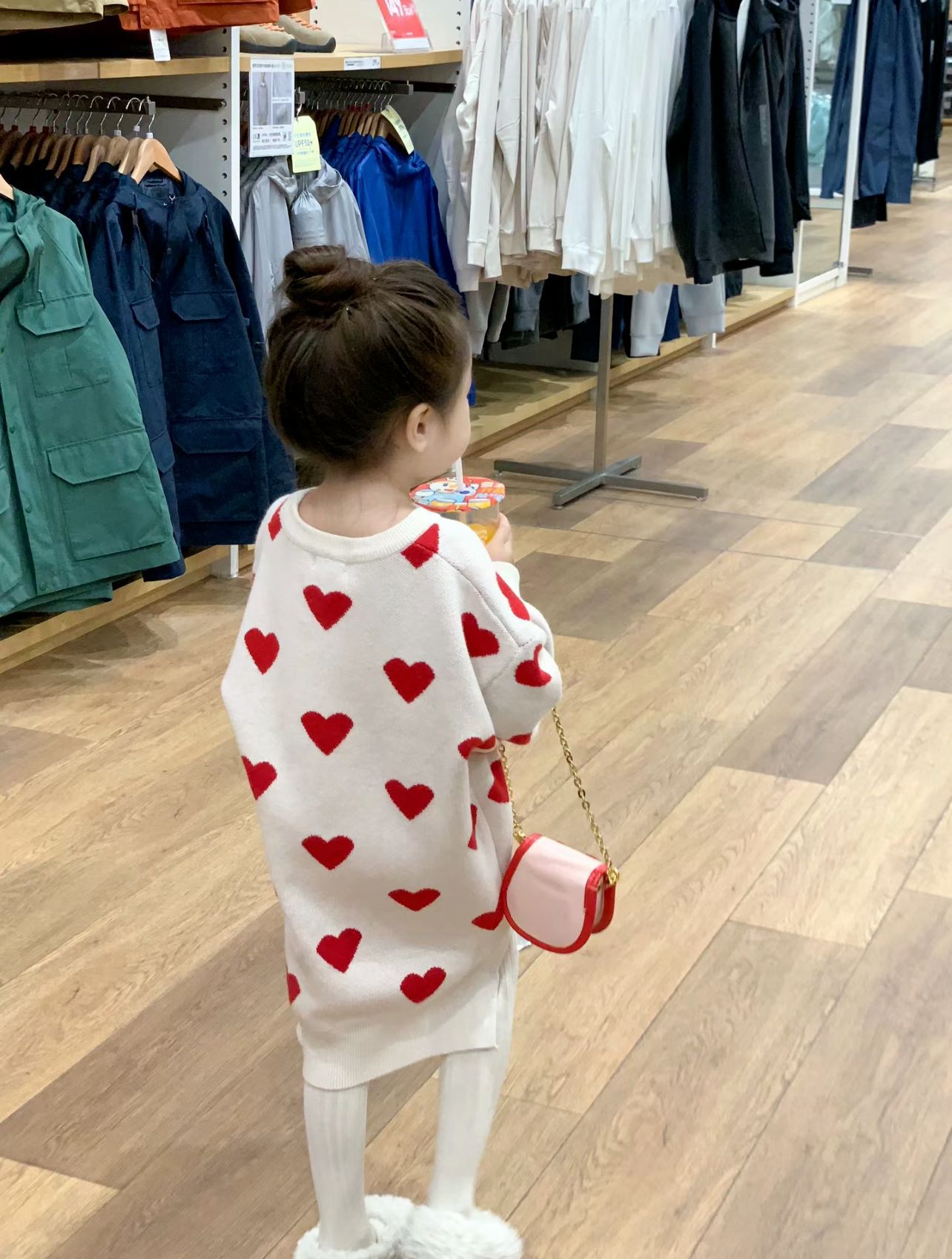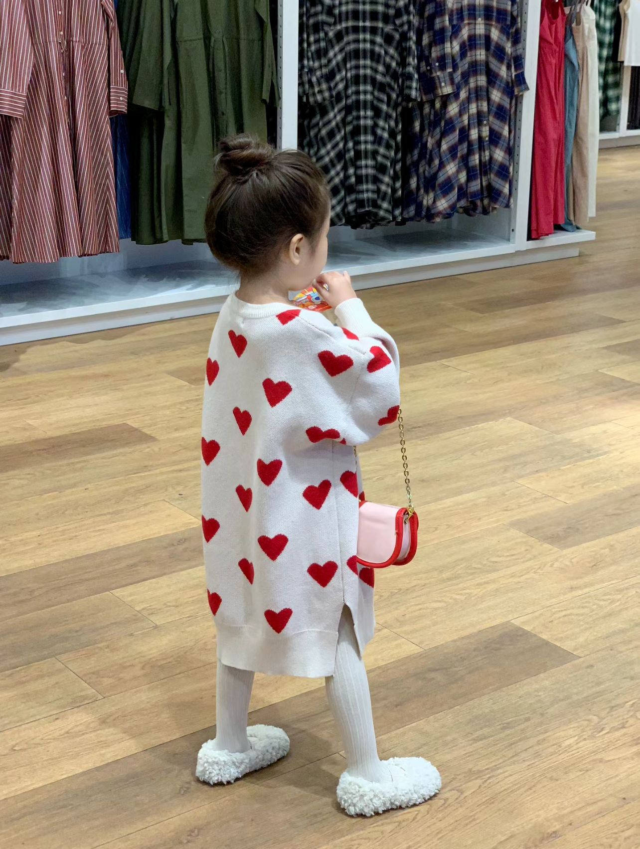 한국 아동복 게으른 스타일 소녀의 봄과 가을 긴 니트 울 레드 러브 헴스 분할 풀오버 스웨터스토어 가기
