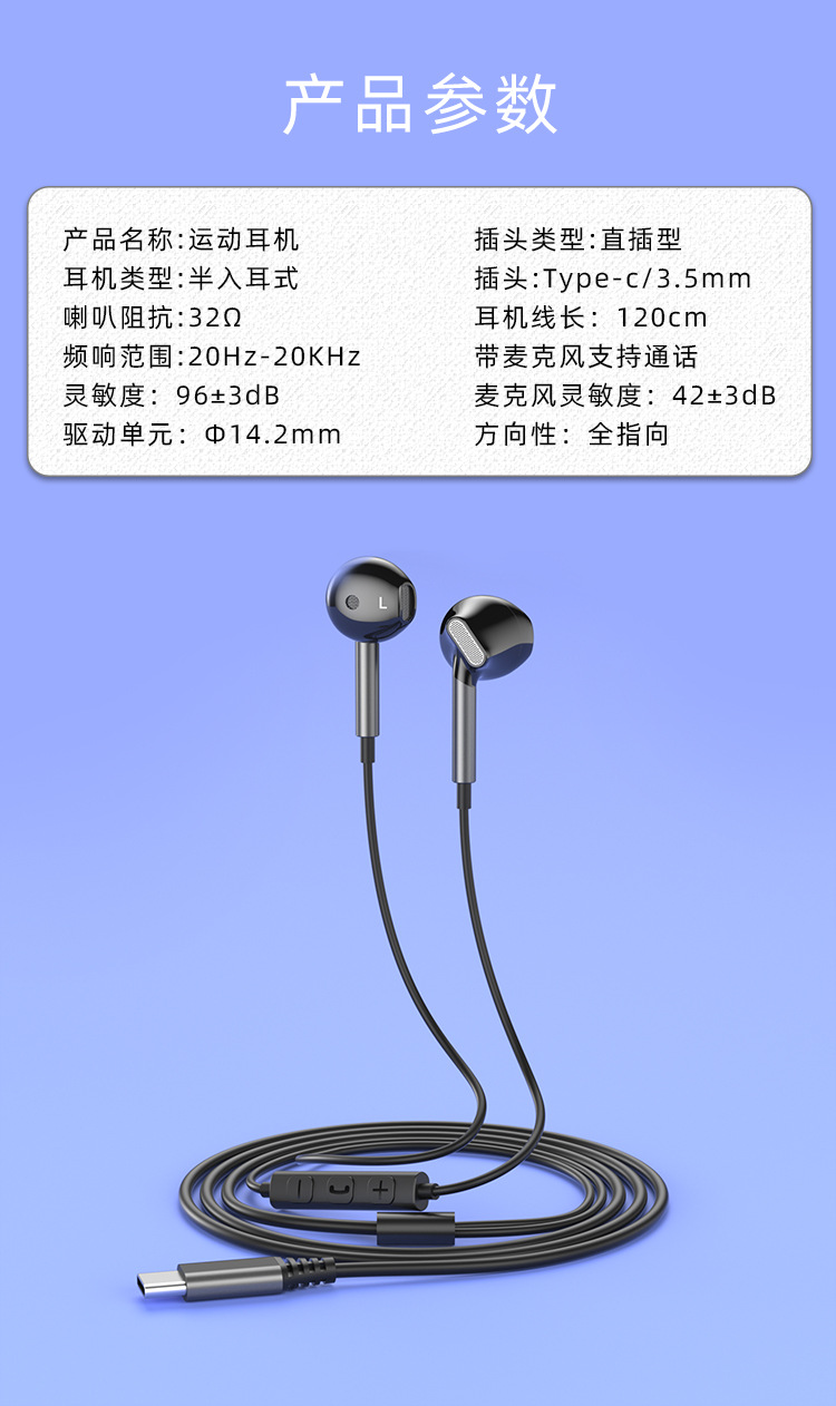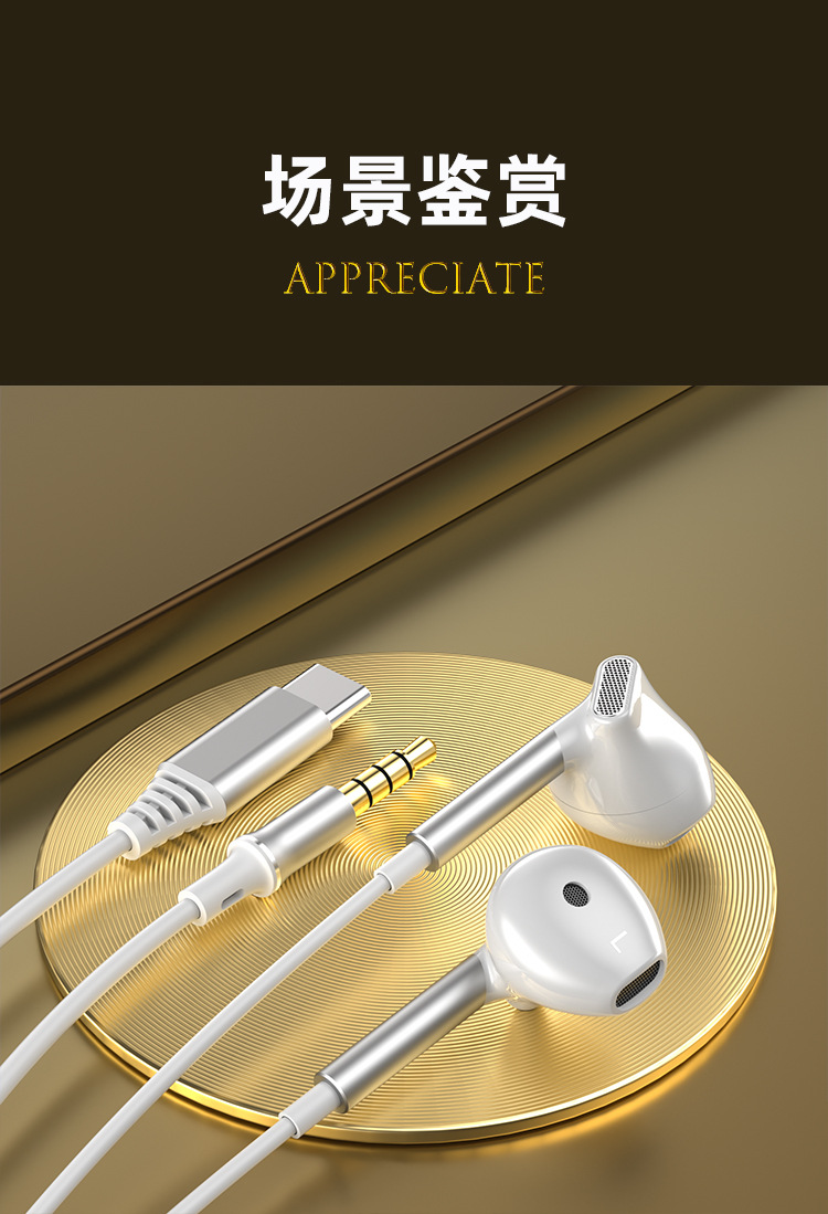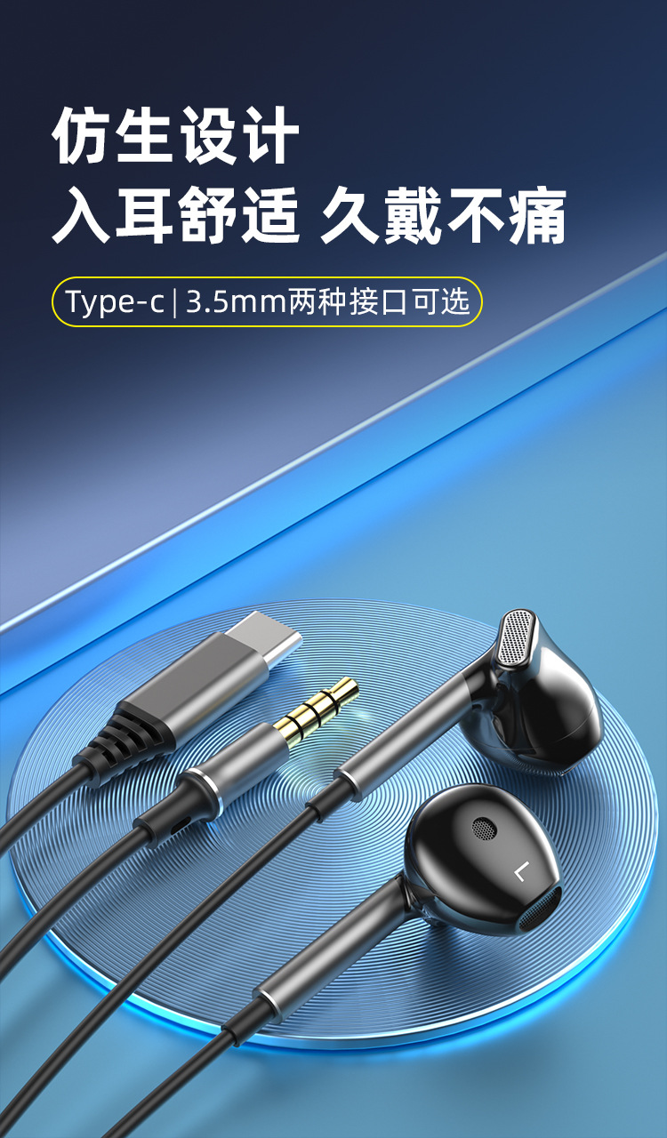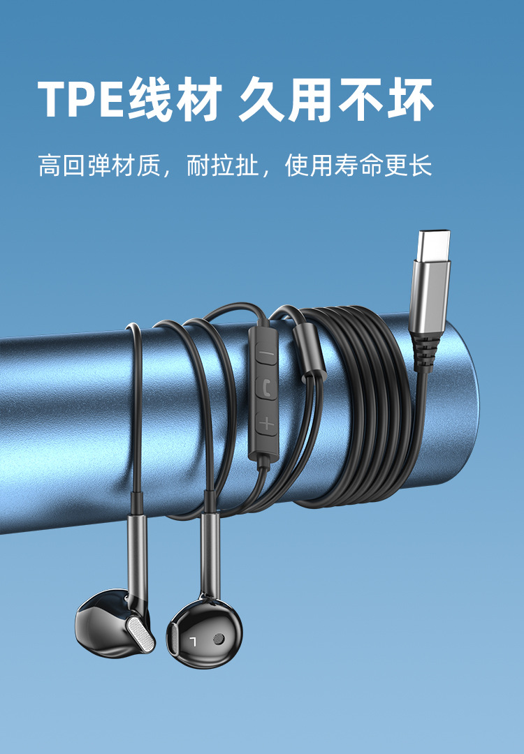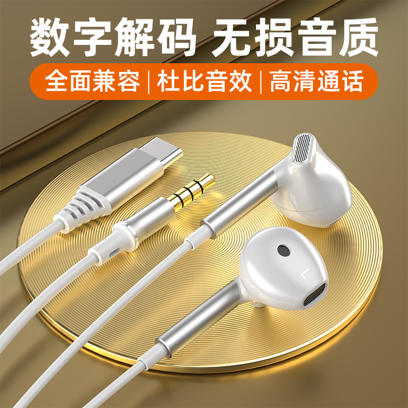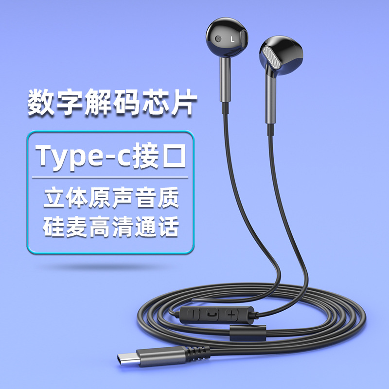 TYPE-C 인터페이스 세미인이어 크로스보더 유선 헤드셋 고품질 휴대폰 컴퓨터 유선 헤드셋 원형 구멍 헤드셋스토어 가기
