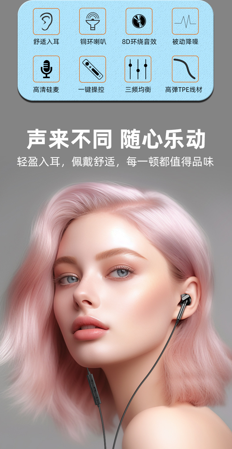 TYPE-C 인터페이스 세미인이어 크로스보더 유선 헤드셋 고품질 휴대폰 컴퓨터 유선 헤드셋 원형 구멍 헤드셋