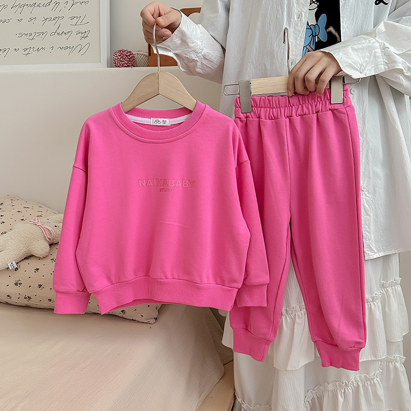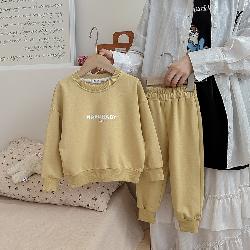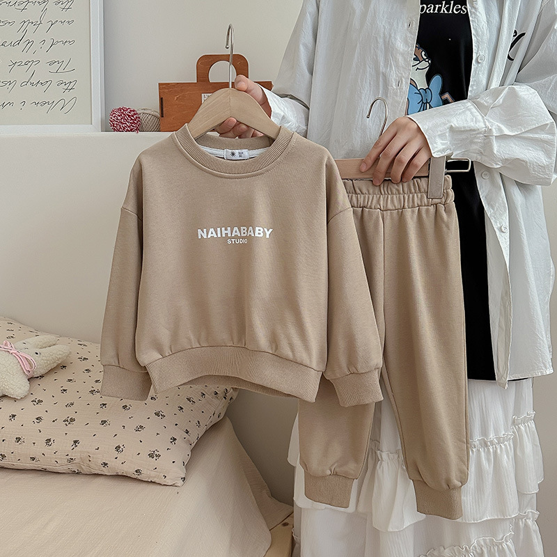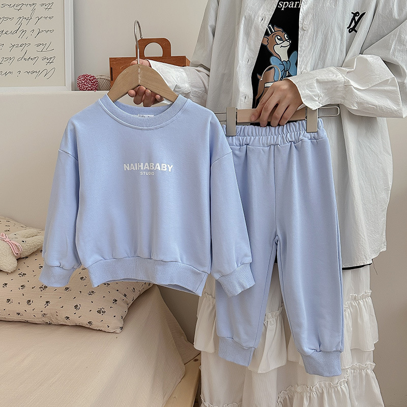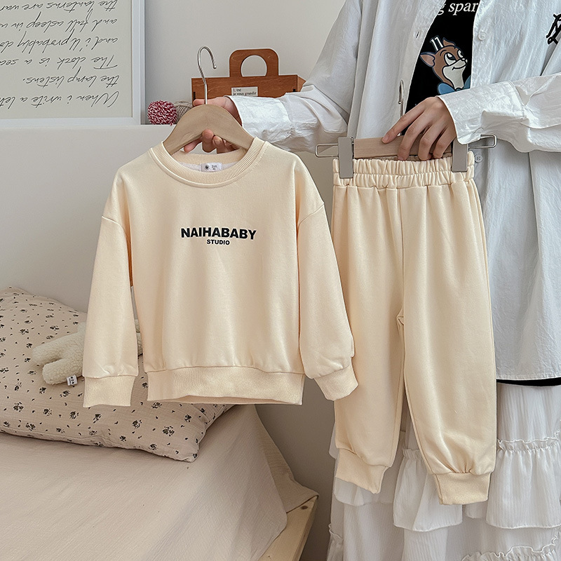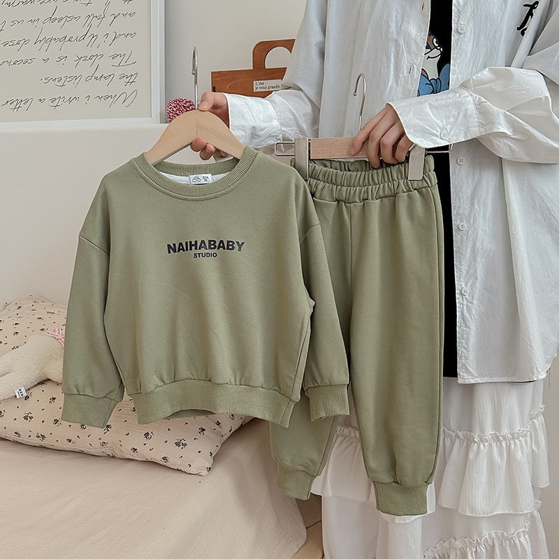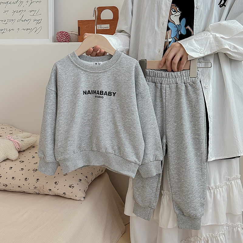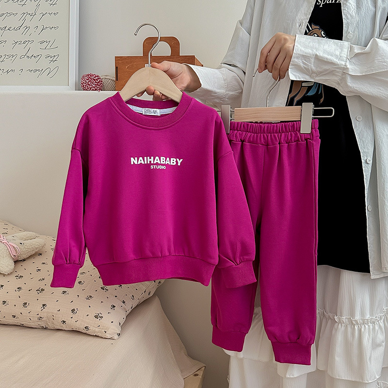 INS 가을 2025 새로운 한국 스타일 아동복 면 레터 컬러 스웨트 셔츠 + 소년 소녀용 바지 세트