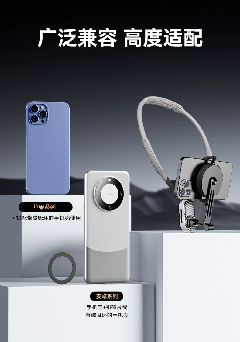 휴대 전화 라이브 안티 쉐이크 슈팅 마그네틱 교수형 넥 브래킷 첫 번째 시야각 스포츠 카메라 낚시 타기 비디오 브래킷스토어 가기
