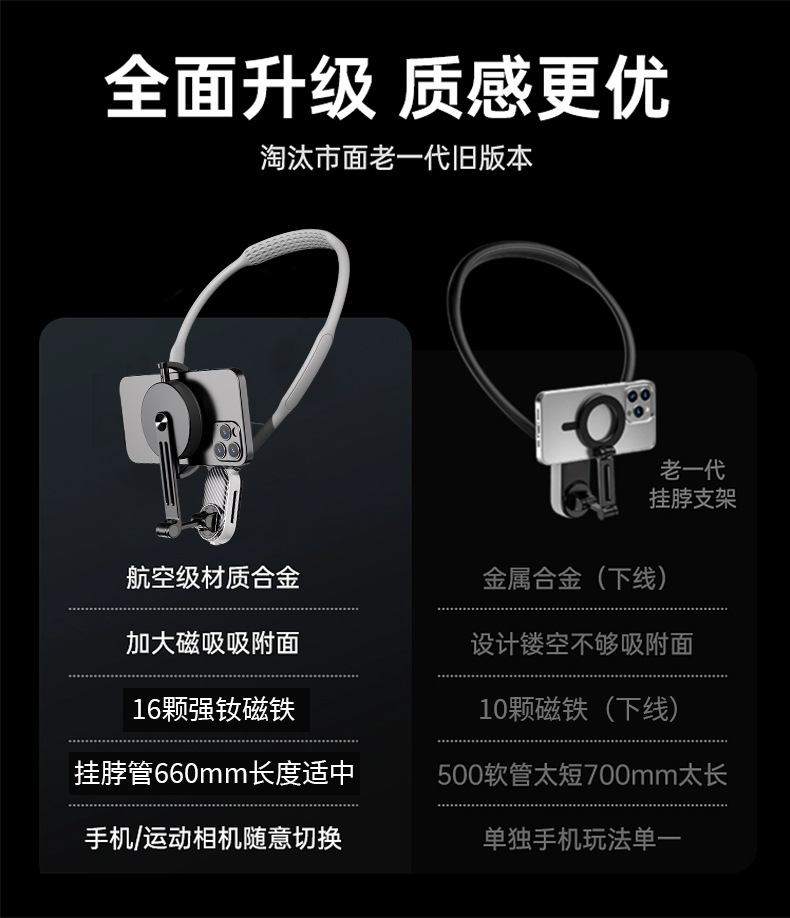 휴대 전화 라이브 안티 쉐이크 슈팅 마그네틱 교수형 넥 브래킷 첫 번째 시야각 스포츠 카메라 낚시 타기 비디오 브래킷