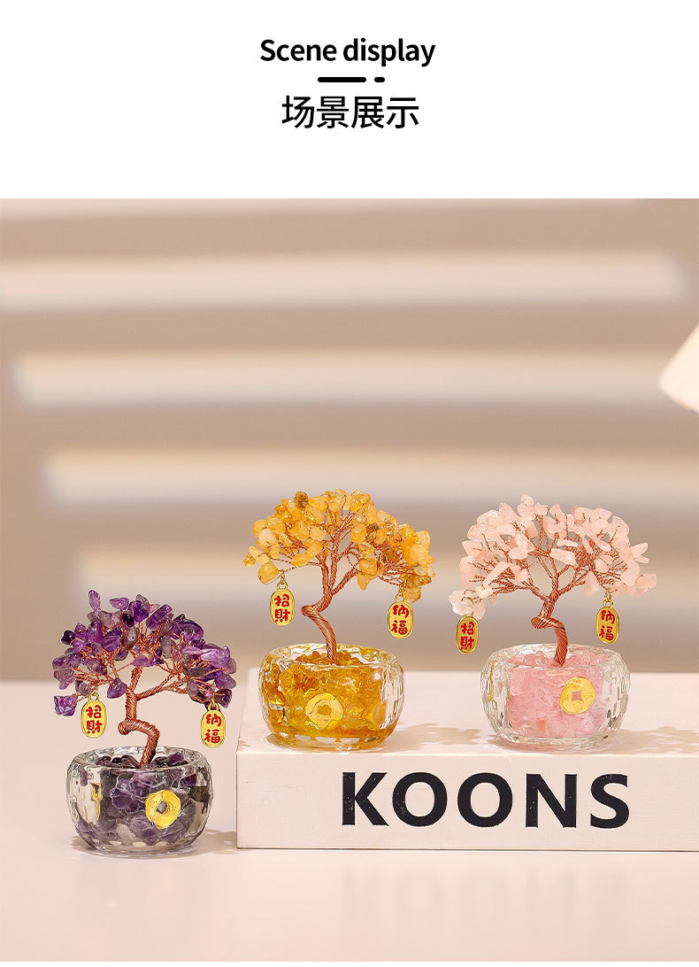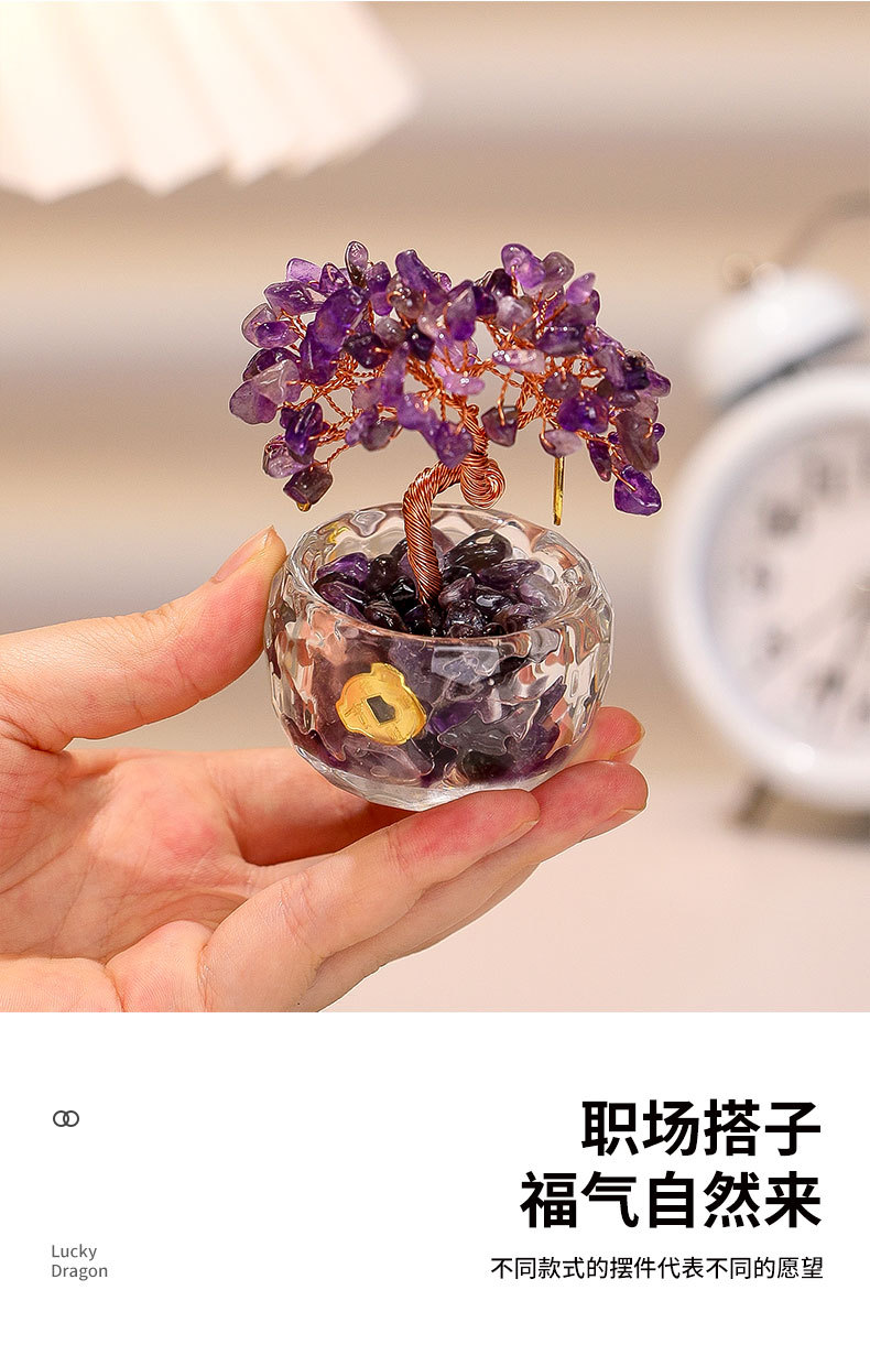 천연 황수정 행운의 나무 핑크 자수정 나무 사무실 워크 스테이션 장식 홈 데스크탑 보물 그릇스토어 가기