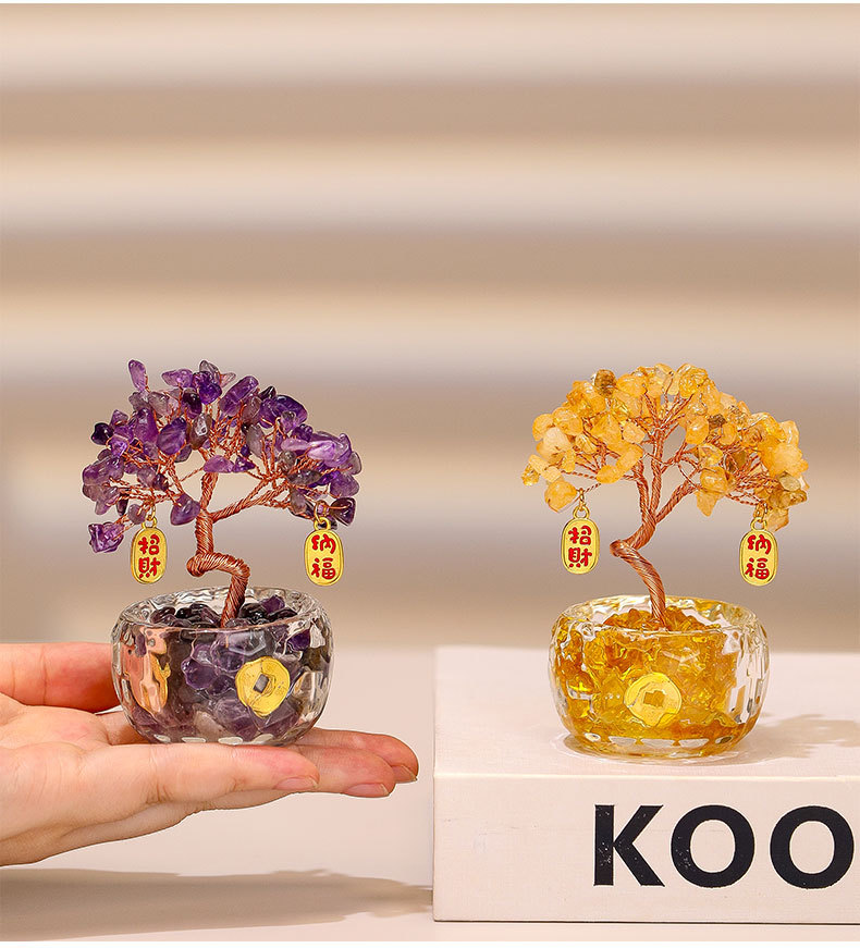 천연 황수정 행운의 나무 핑크 자수정 나무 사무실 워크 스테이션 장식 홈 데스크탑 보물 그릇