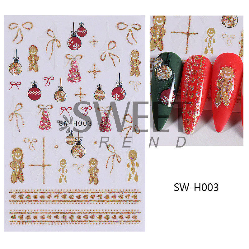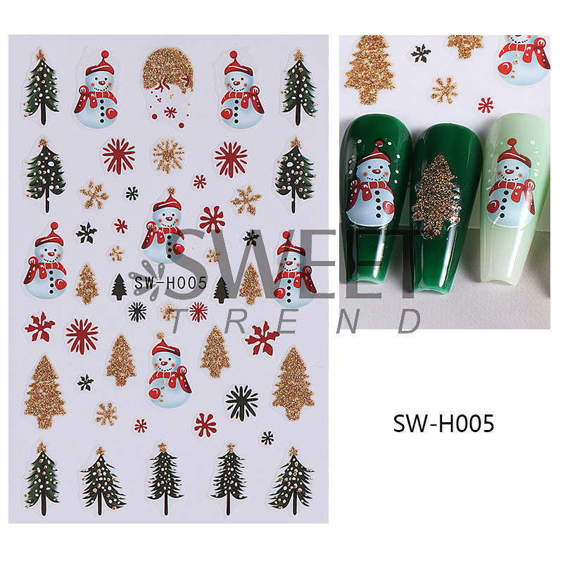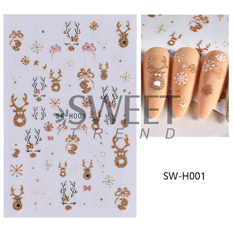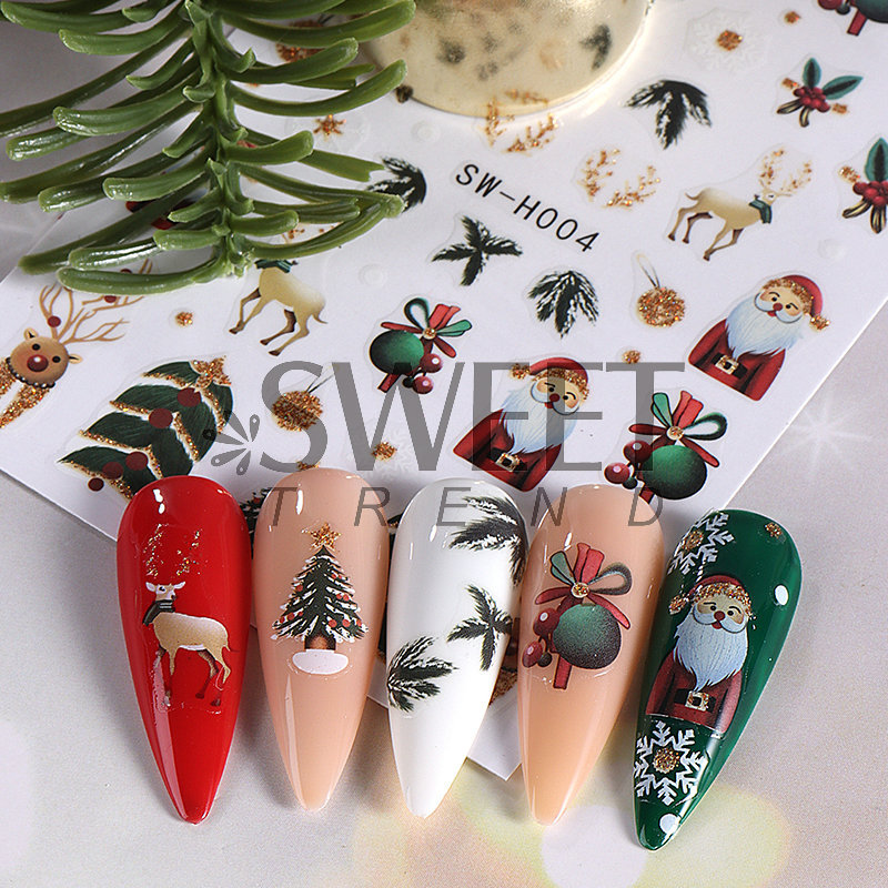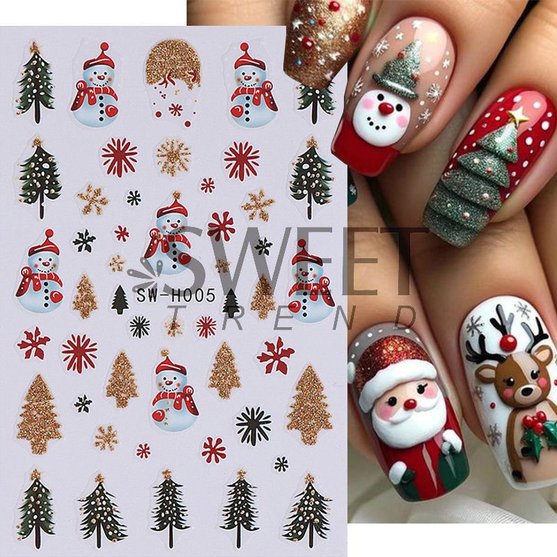 국경 간 새로운 크리스마스 네일 아트 스티커 3D 반짝이 눈송이 랜턴 만화 크리스마스 트리 눈사람 엘크 네일 스티커