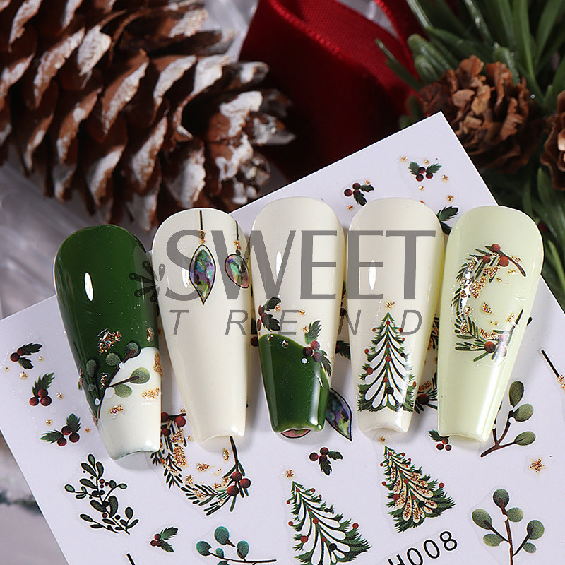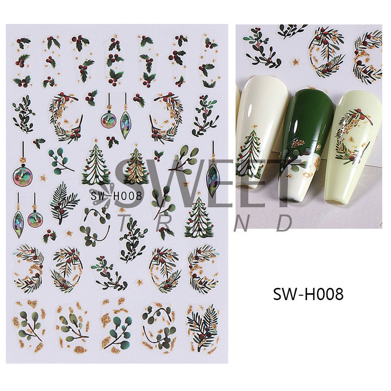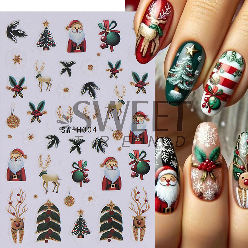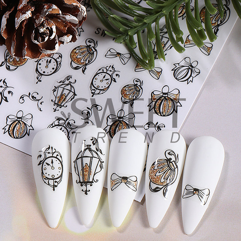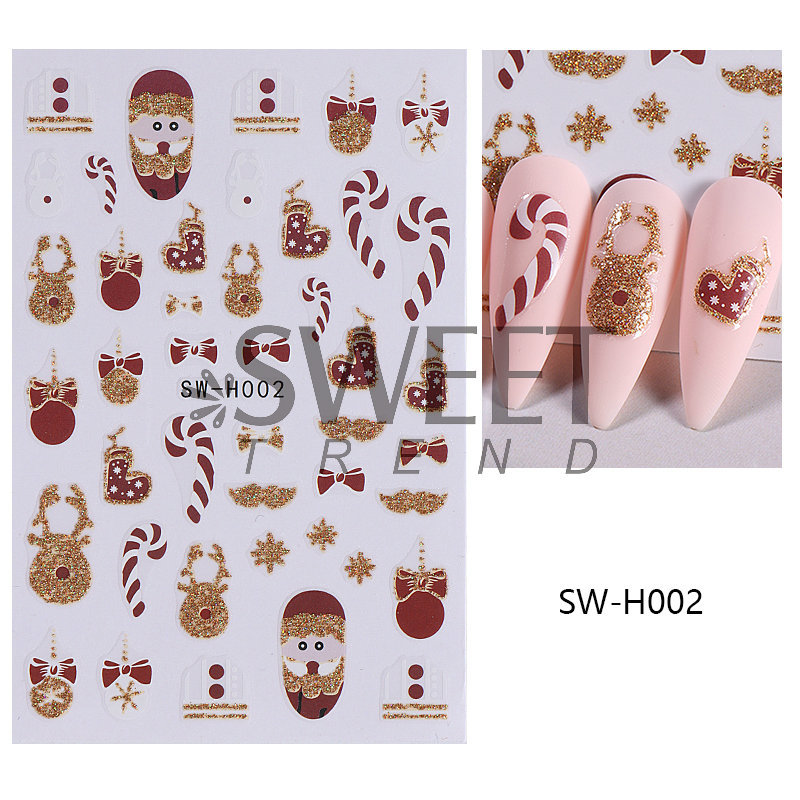국경 간 새로운 크리스마스 네일 아트 스티커 3D 반짝이 눈송이 랜턴 만화 크리스마스 트리 눈사람 엘크 네일 스티커