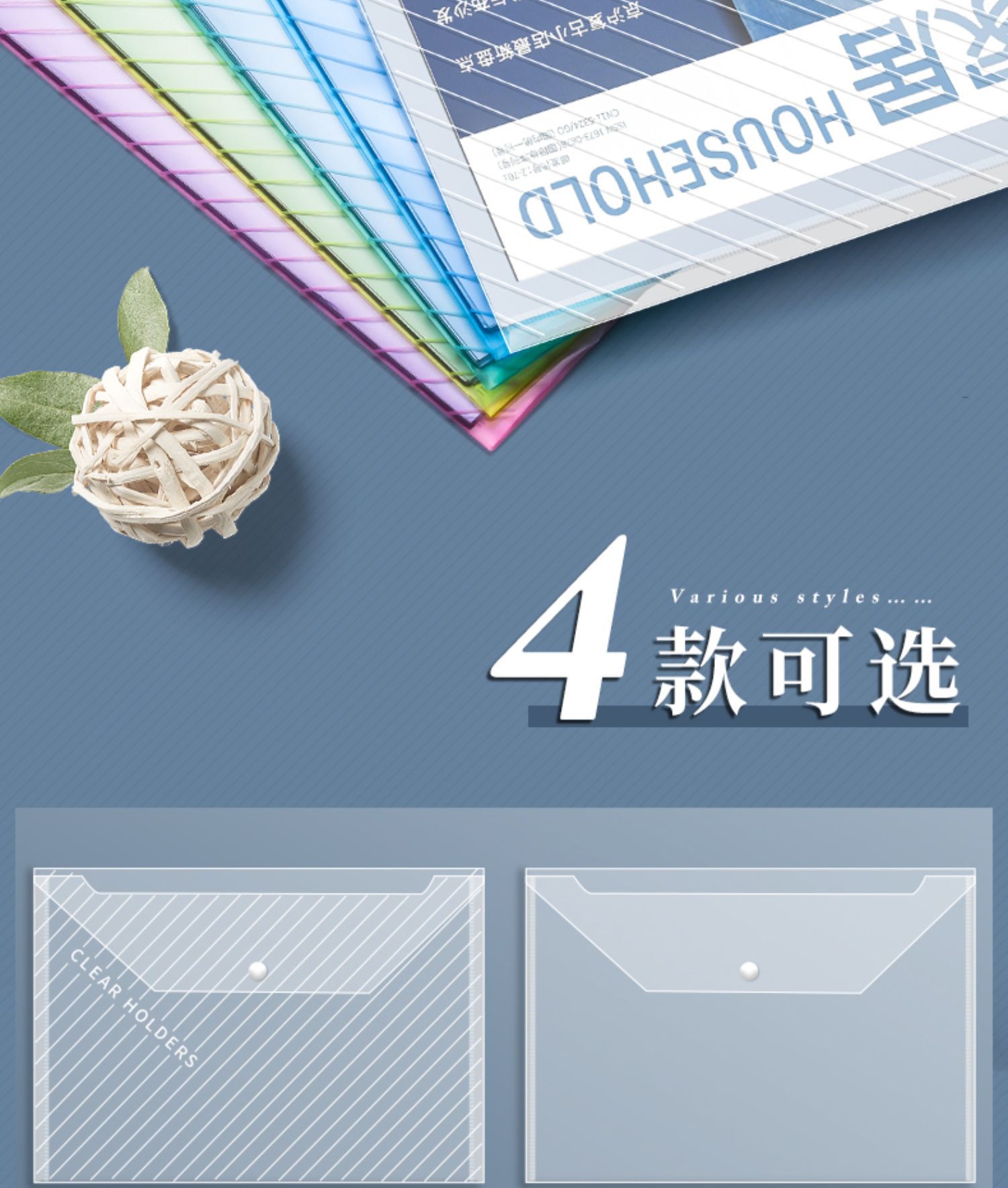 두꺼운 투명 문서 가방 플라스틱 A4 스냅 정보 가방 학생 사무실 파일 저장 가방 인쇄 가능한 로고