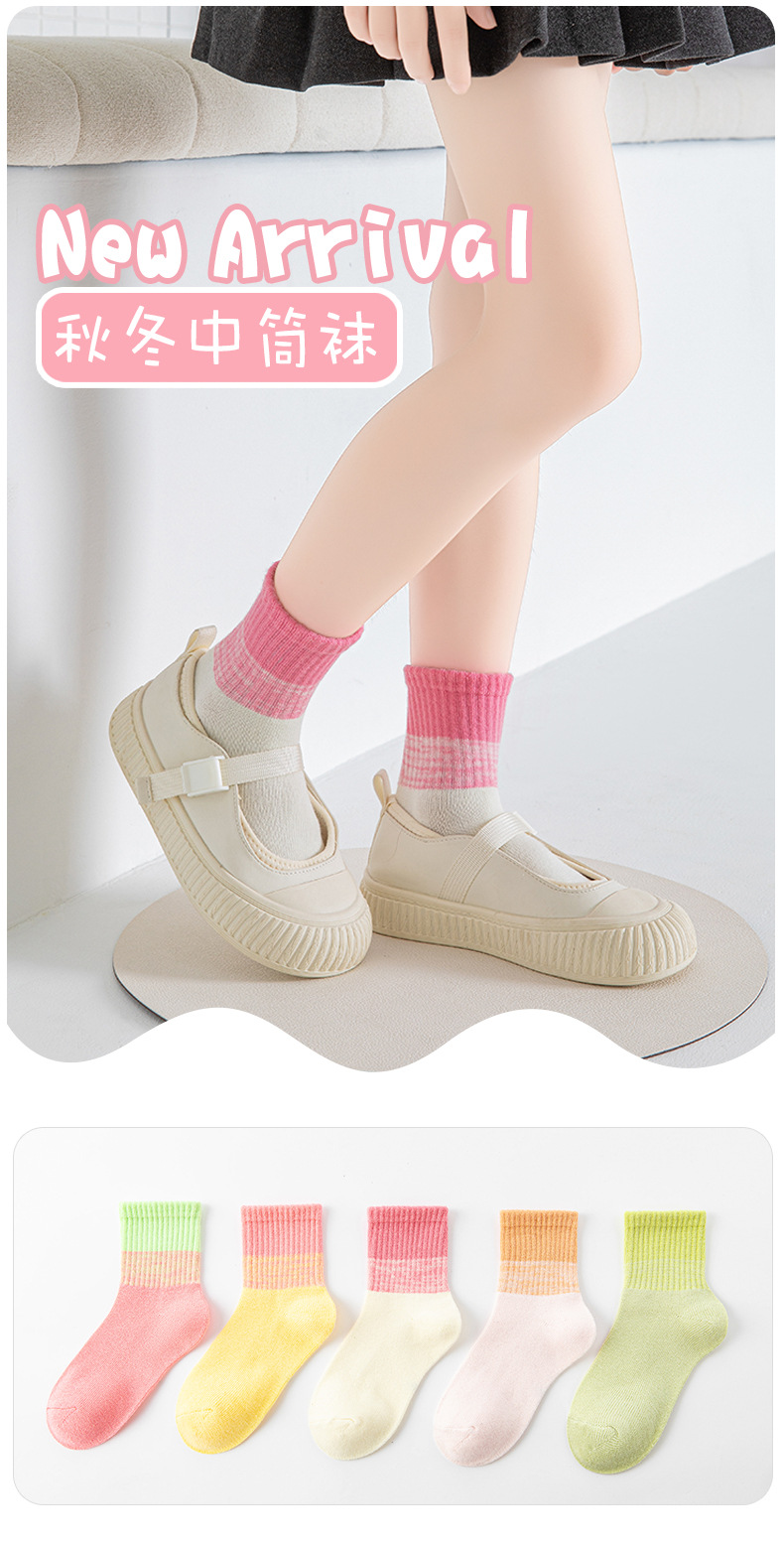 아동용 양말, 가을 신상 면양말, 중대형 아동 및 여아용 양말, 일본 및 한국 학생용 스포츠 양말, 종아리 중간 양말 5켤레