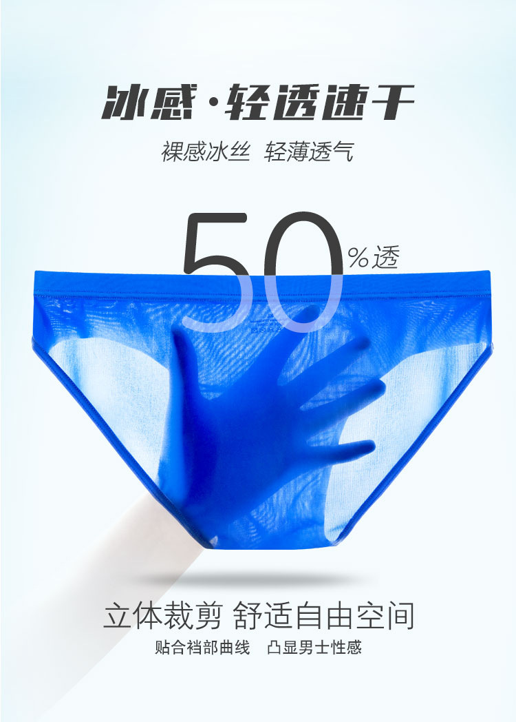 남성용 팬티, 아이스 실크, 초박형, 통기성, 편안하고 섹시하며 주머니가 없는 일체형 고탄성 속건 남성용 속옷스토어 가기