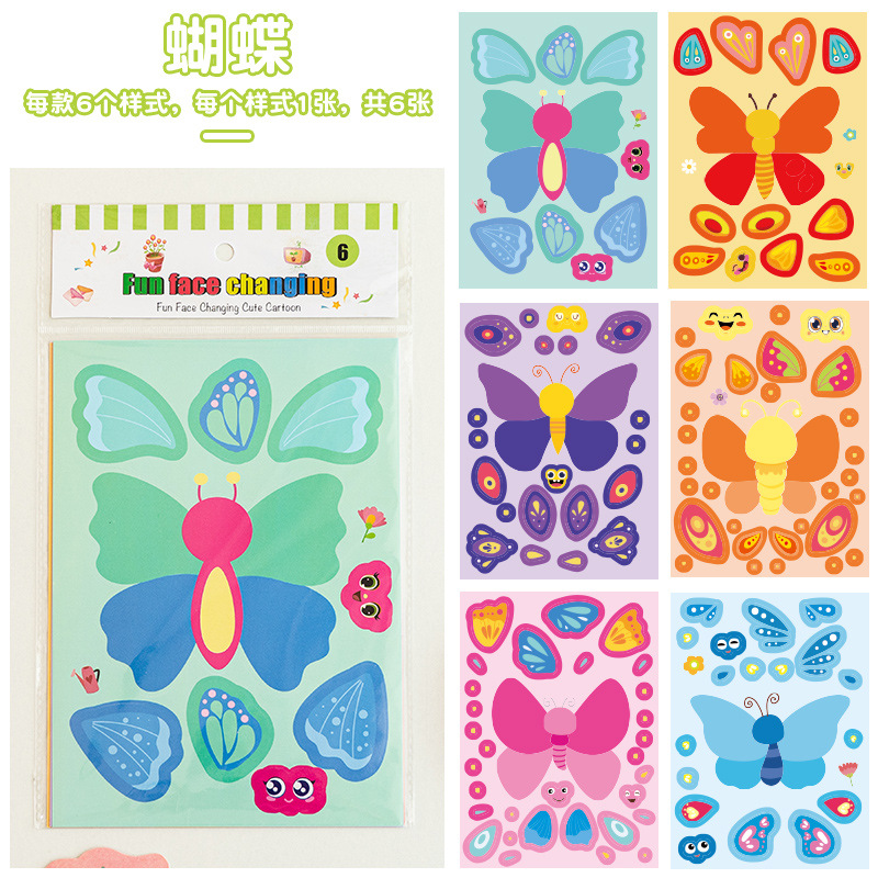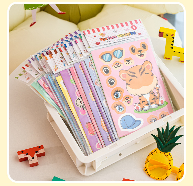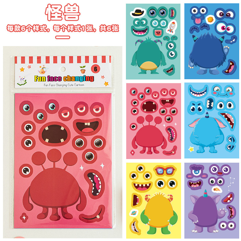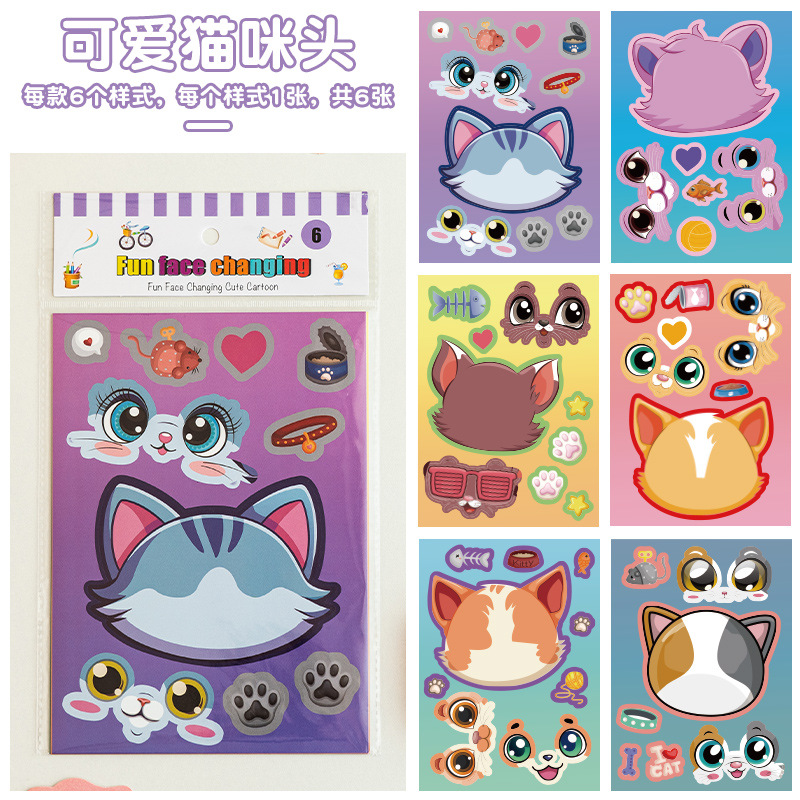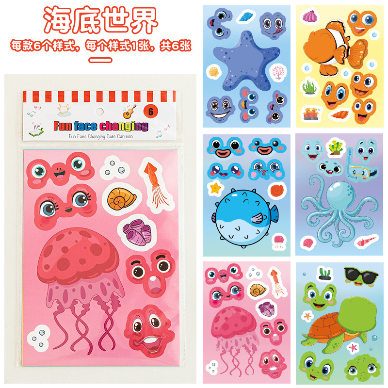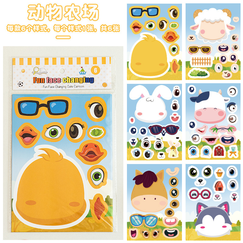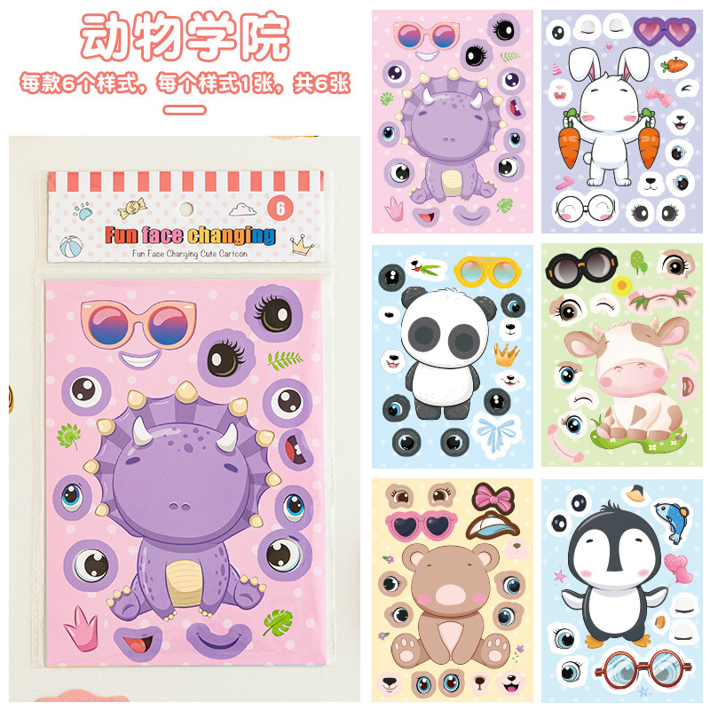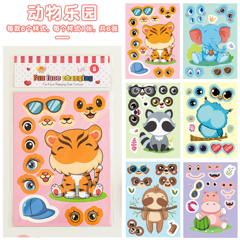 국경 간 작은 동물 콜라주 어린이 조기 교육 얼굴 변경 스티커 아기 교육 DIY 콜라주 수제 스티커