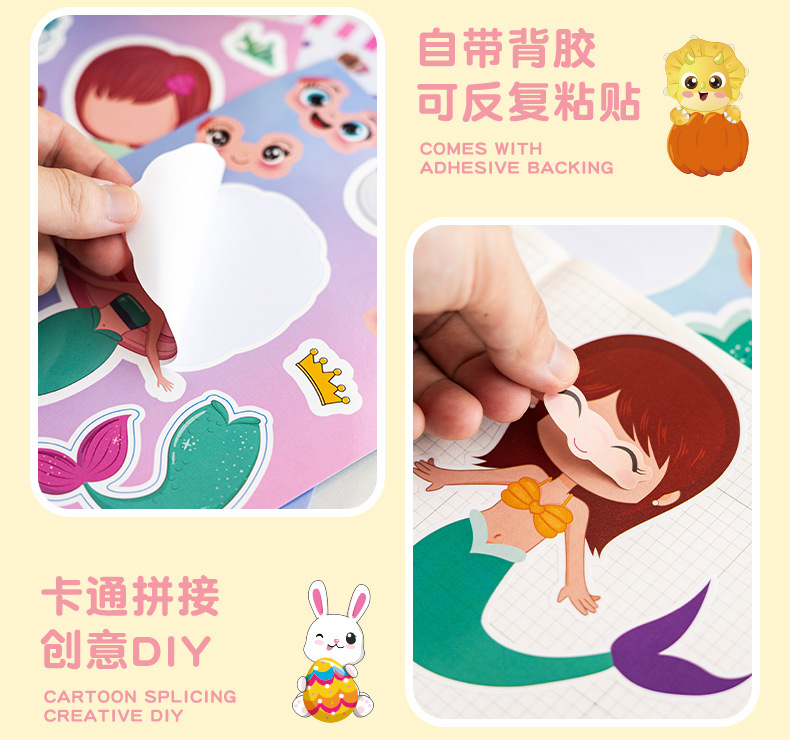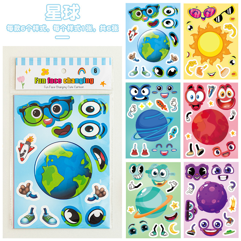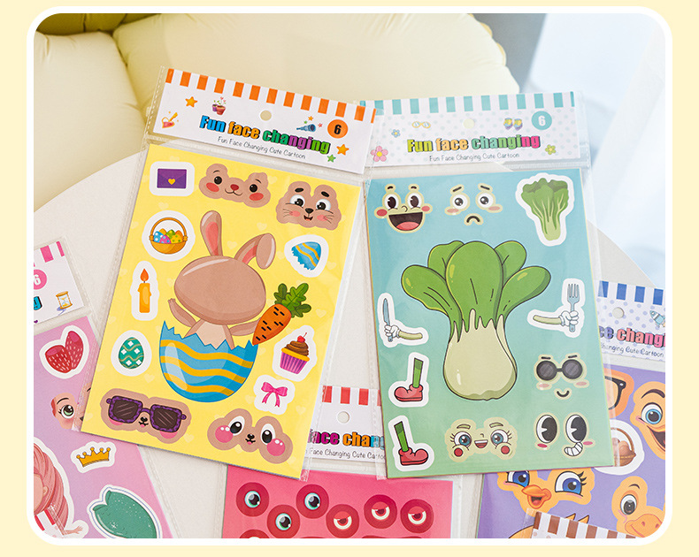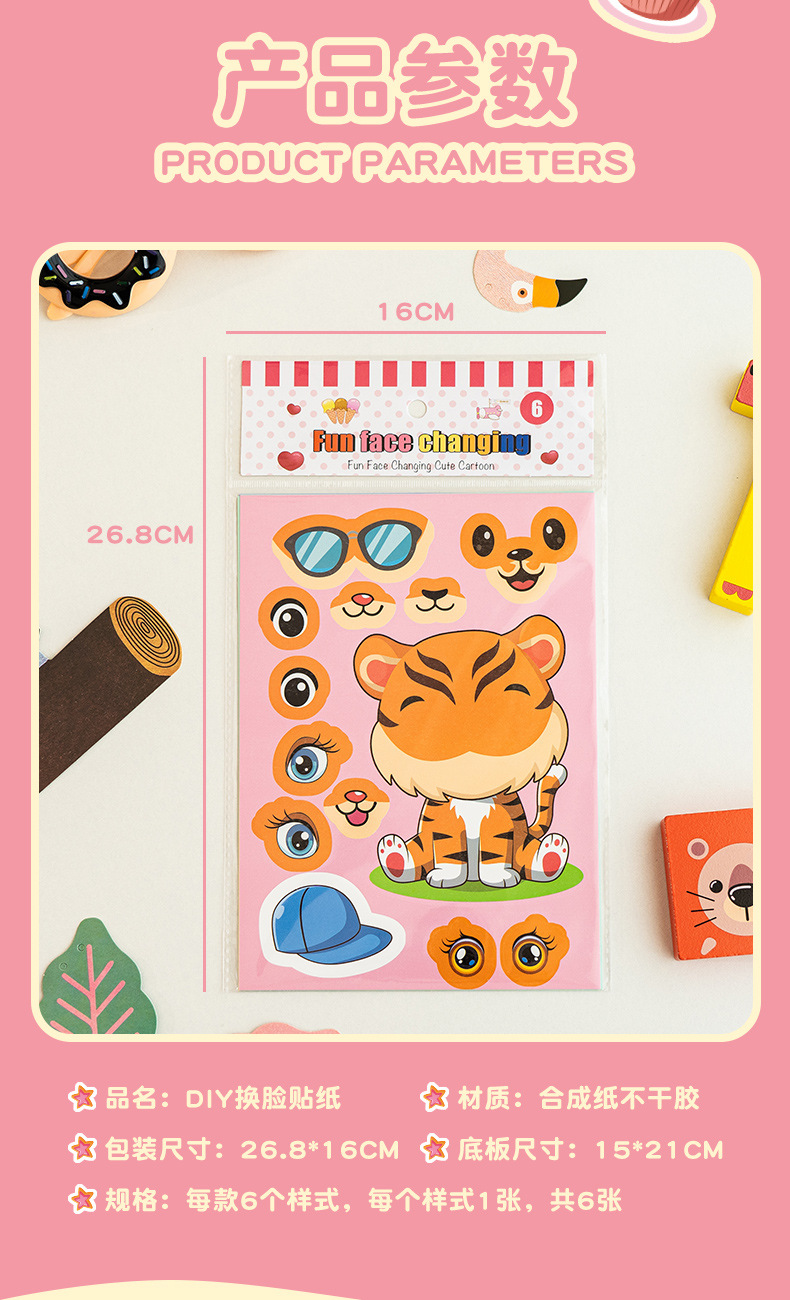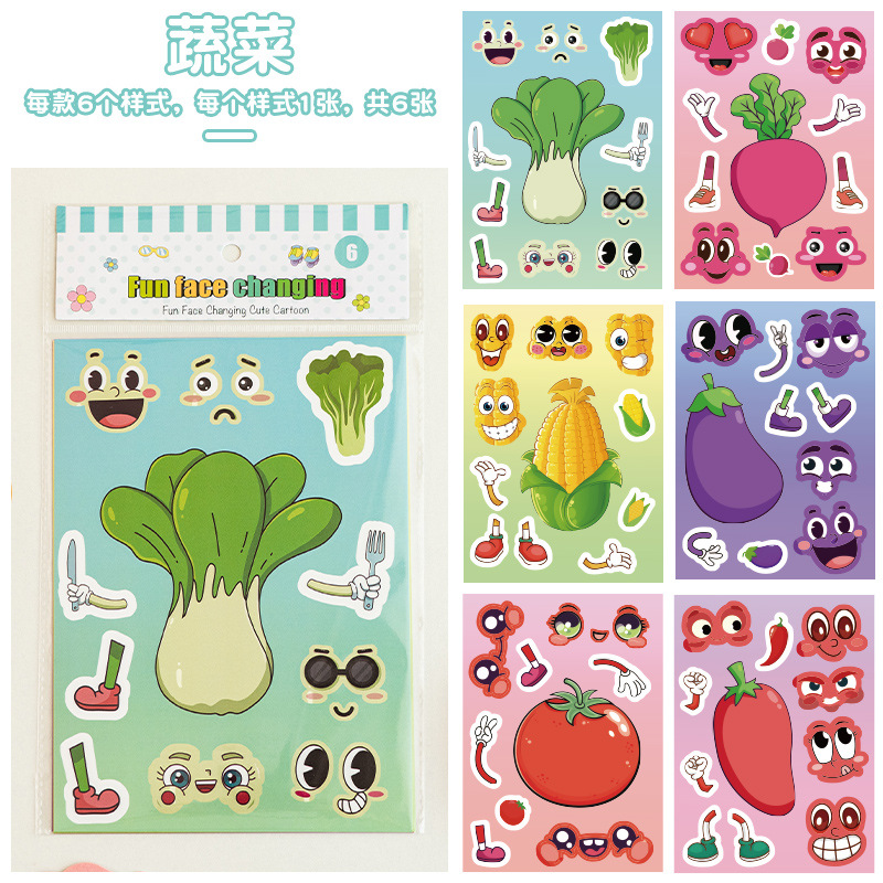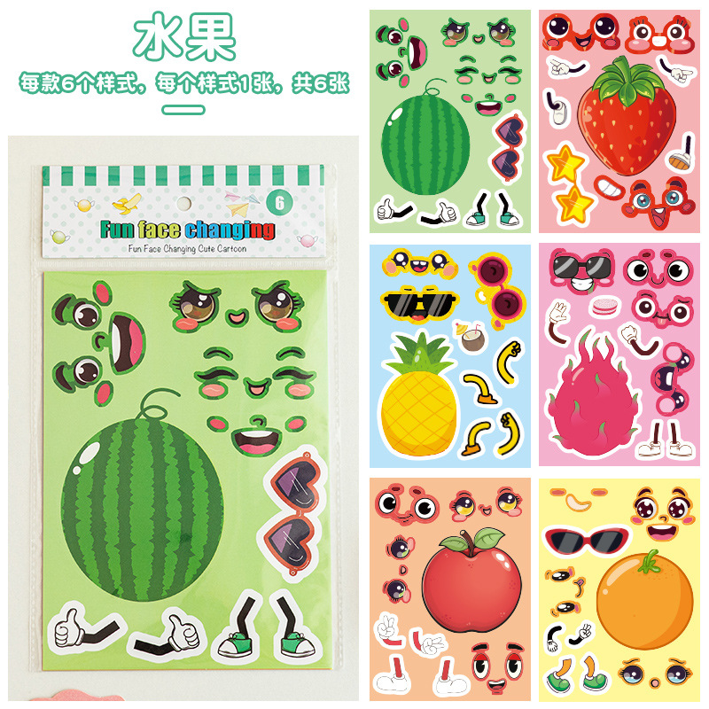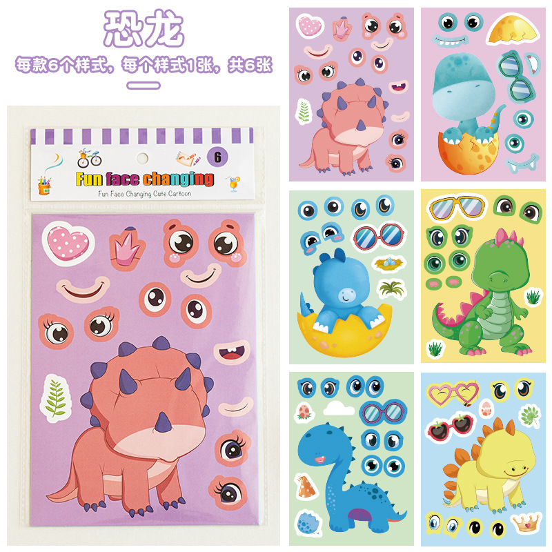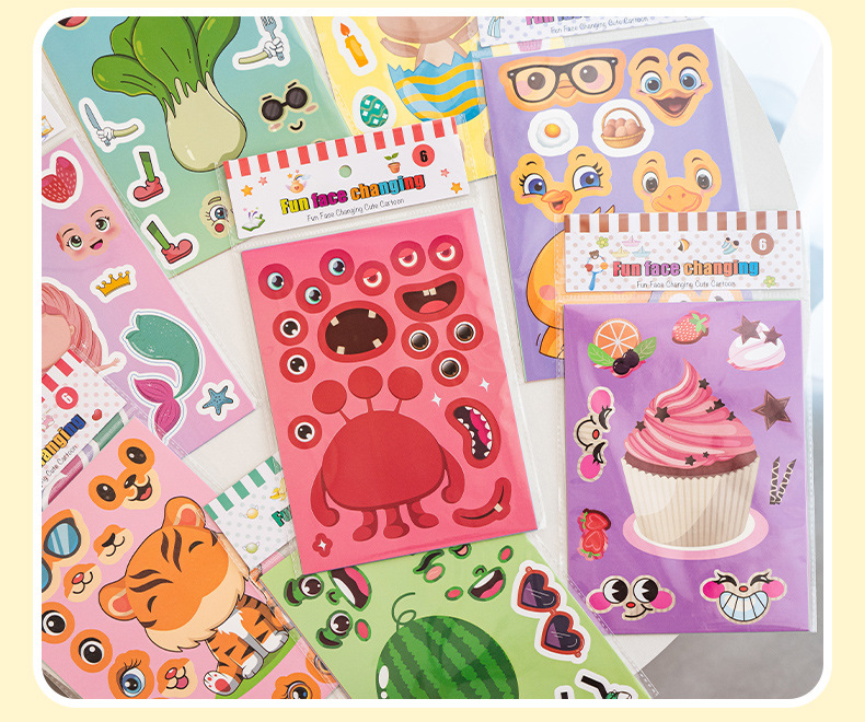 국경 간 작은 동물 콜라주 어린이 조기 교육 얼굴 변경 스티커 아기 교육 DIY 콜라주 수제 스티커