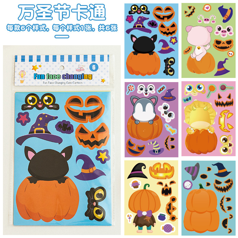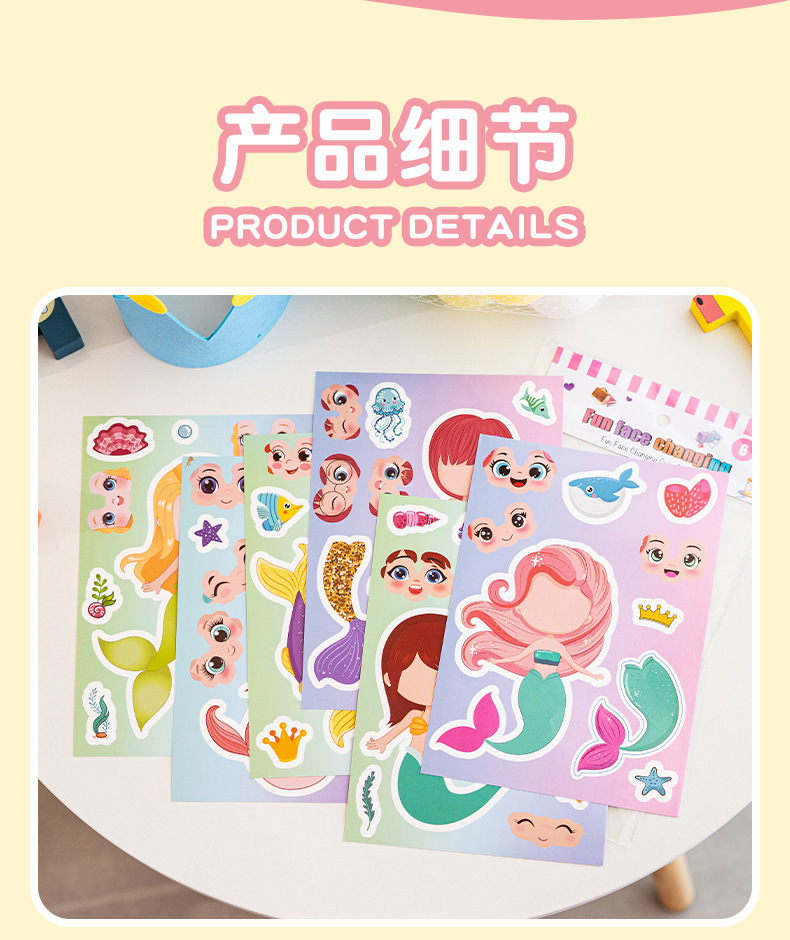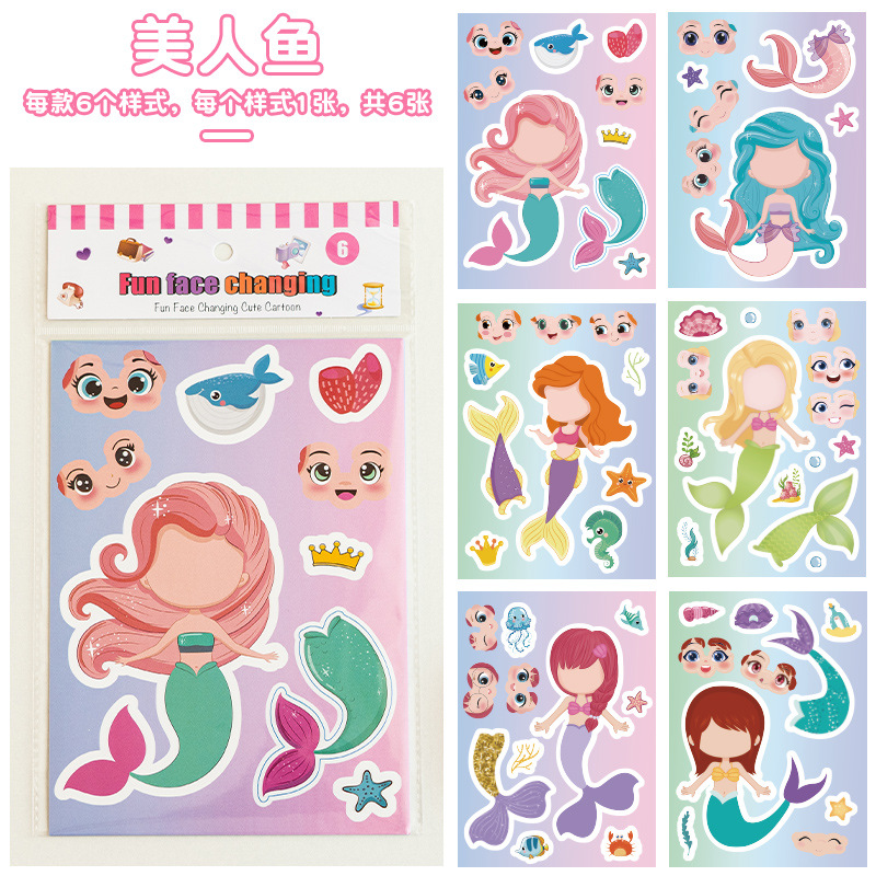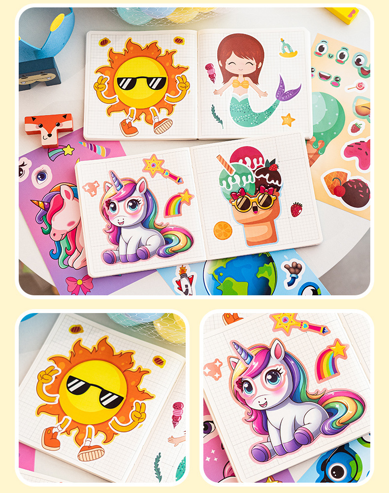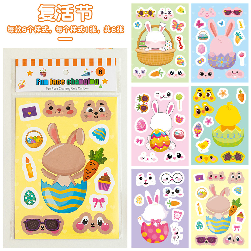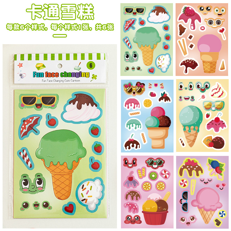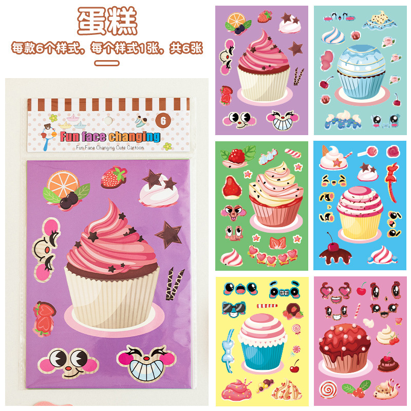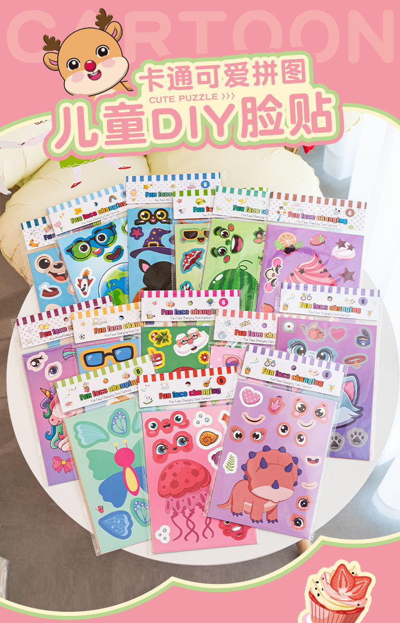 국경 간 작은 동물 콜라주 어린이 조기 교육 얼굴 변경 스티커 아기 교육 DIY 콜라주 수제 스티커