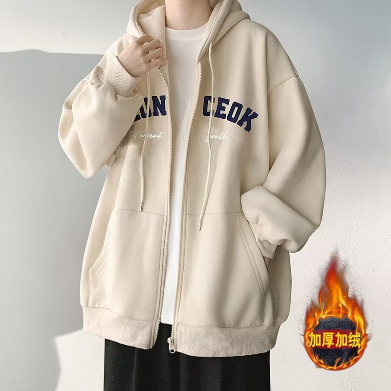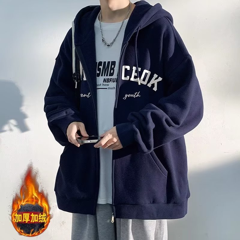 미국 패션 브랜드 코트 남자 가을과 겨울 2023 새로운 남성 후드 카디건 기모 스웨터 소년 재킷