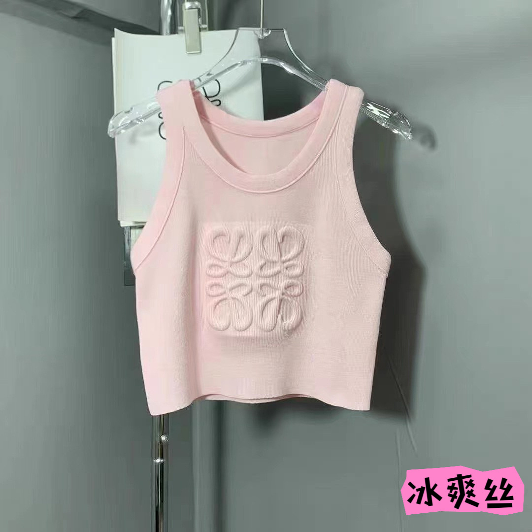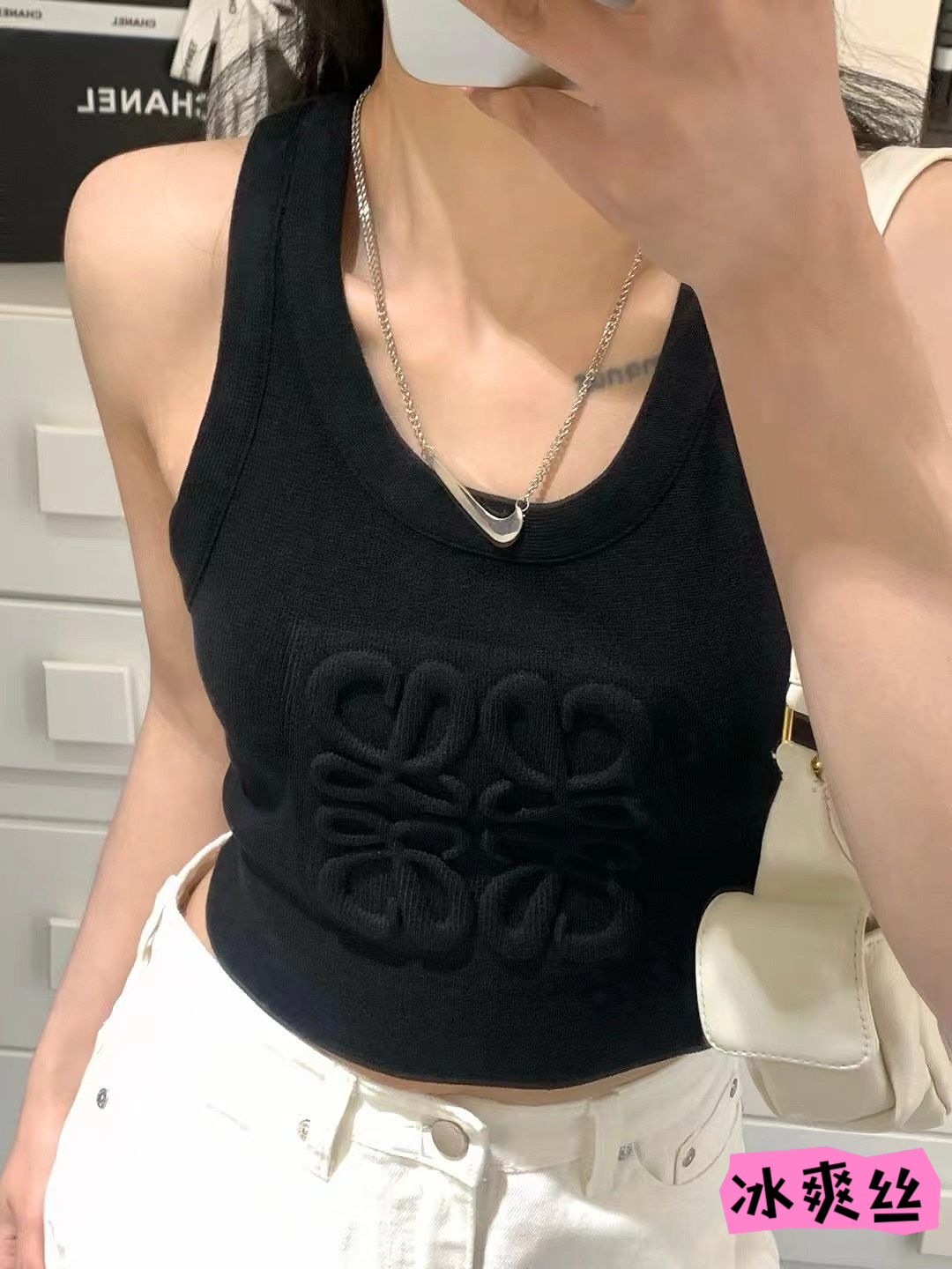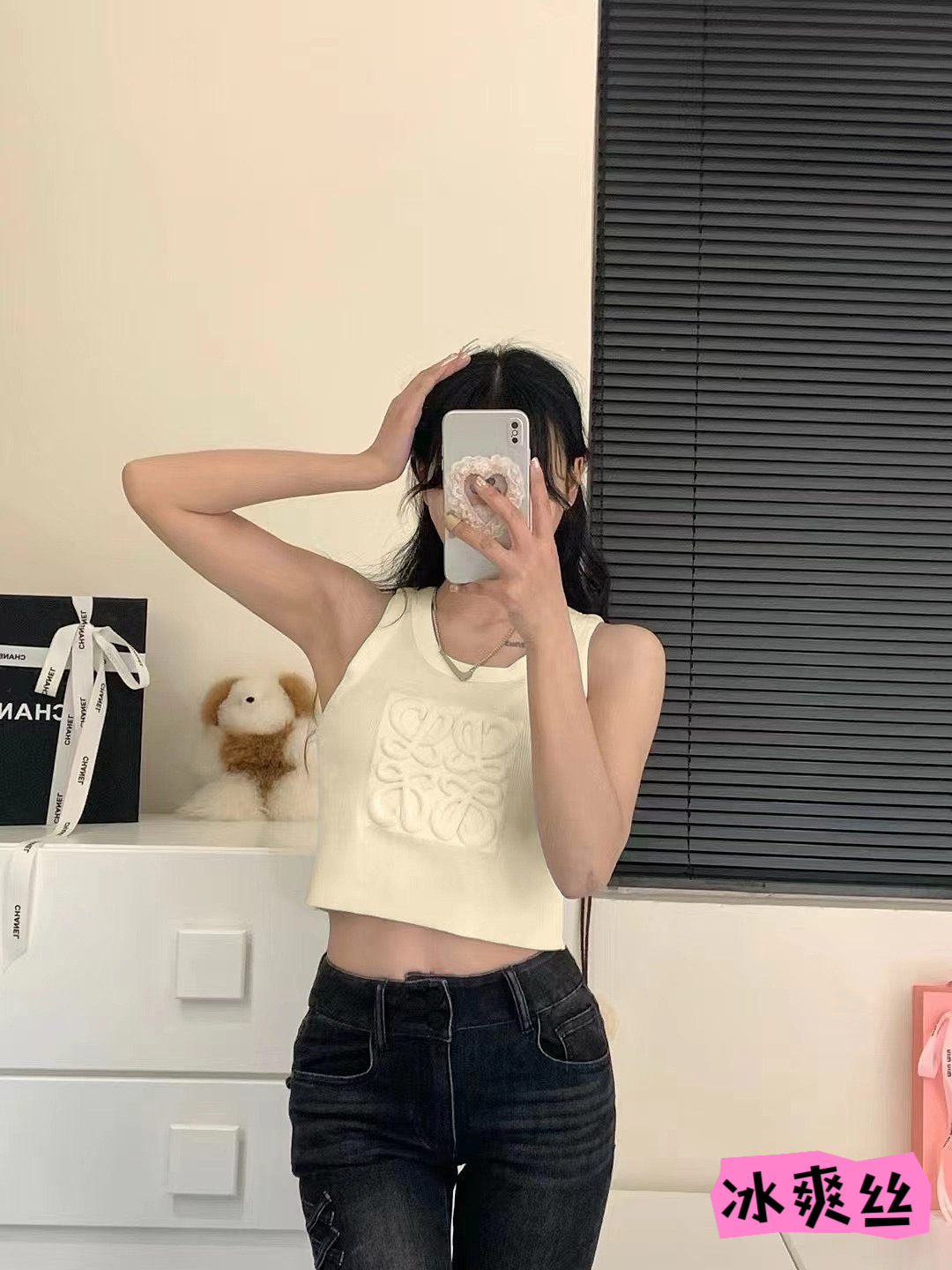 민소매 크루 넥 니트 조끼 슬링 여성 아우터웨어 새로운 2024 양각 자수 섹시한 순수한 아름다움 다시 여름 옷스토어 가기
