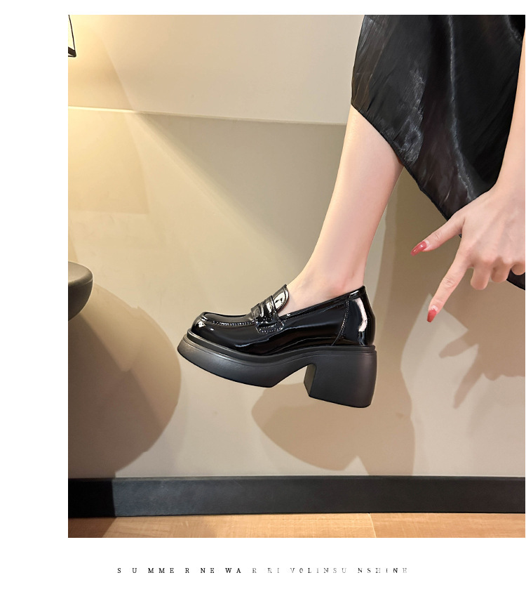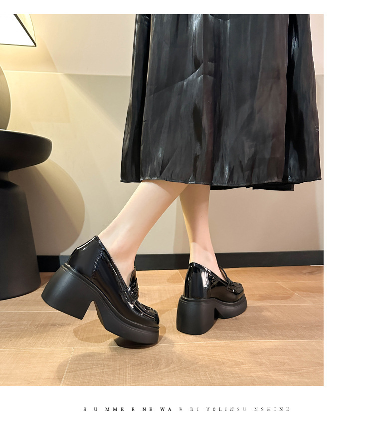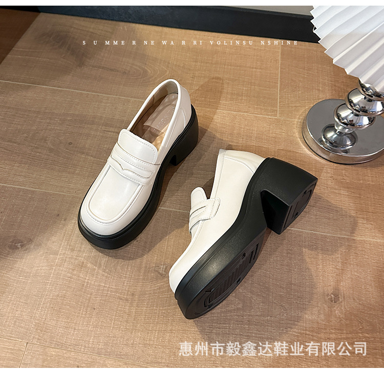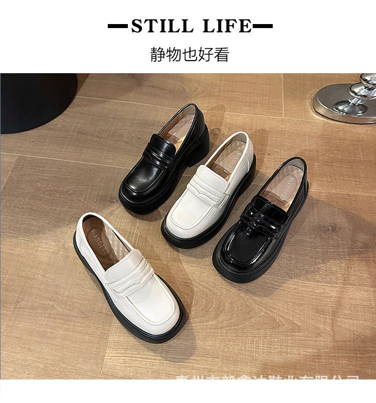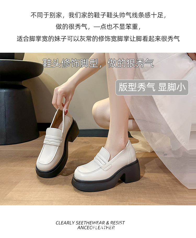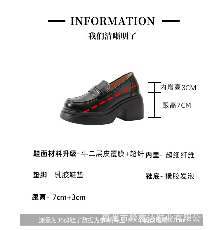 키가 커지는 여성 신발을 스몰 사이즈 두꺼운 밑창 로퍼 2024 새로운 학술 스타일의 작은 가죽 신발 한 단계 두꺼운 하이힐 단층 신발스토어 가기