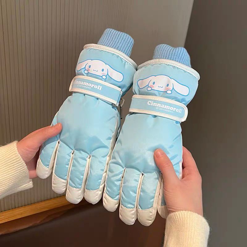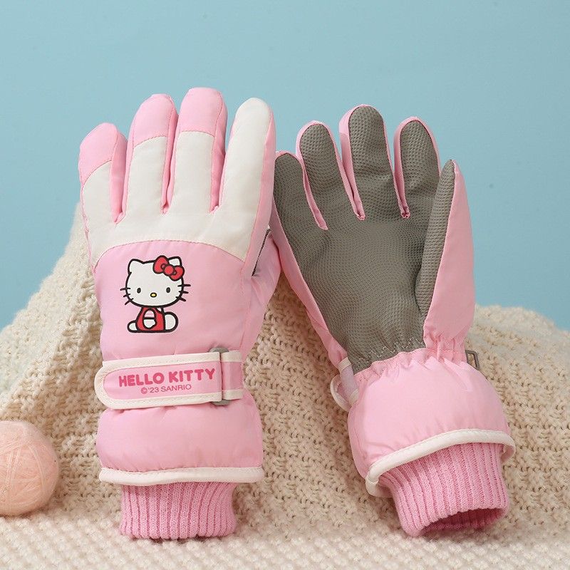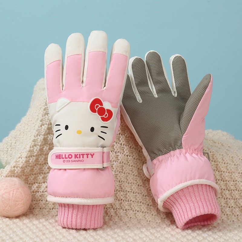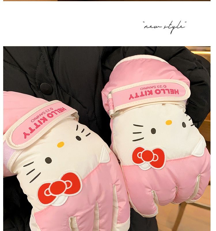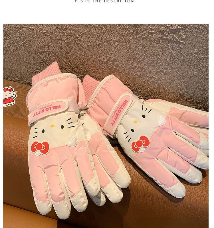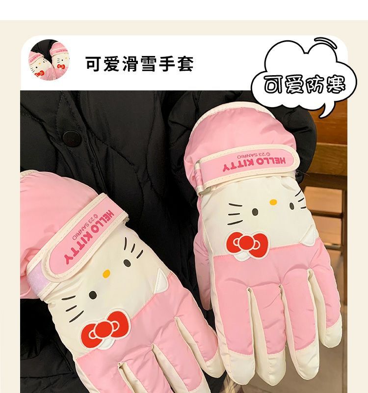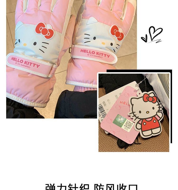 산리오 성인 스키 장갑 여성용 헬로 키티 장갑 겨울 따뜻한 방추위 두꺼운 방수 라이딩