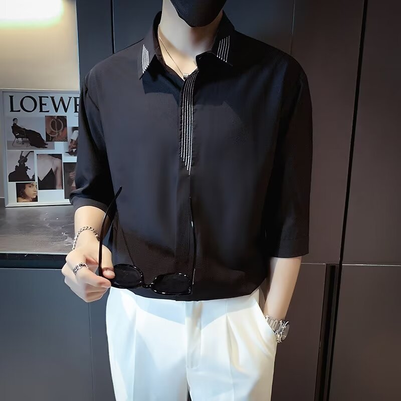 봄과 여름 디자인 센스 셔츠 남자의 짧은 소매 슬림 핏 한국 인치 셔츠 2023 새로운 패션 브랜드 꽃 셔츠스토어 가기