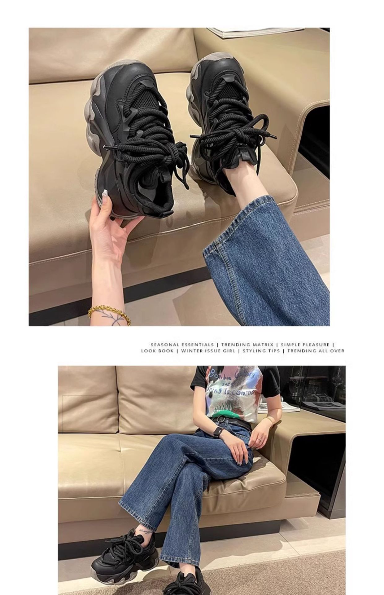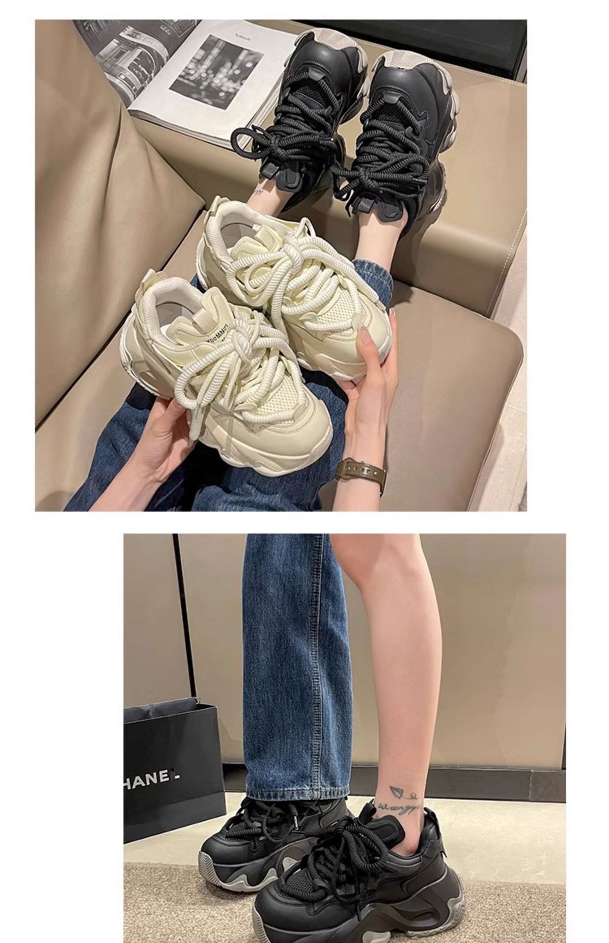 여성용 아빠 신발 2025년 신상 봄 두꺼운 밑창 플랫폼 슈즈 키높이 운동화 ins 가을 겨울 캐주얼 런닝화스토어 가기