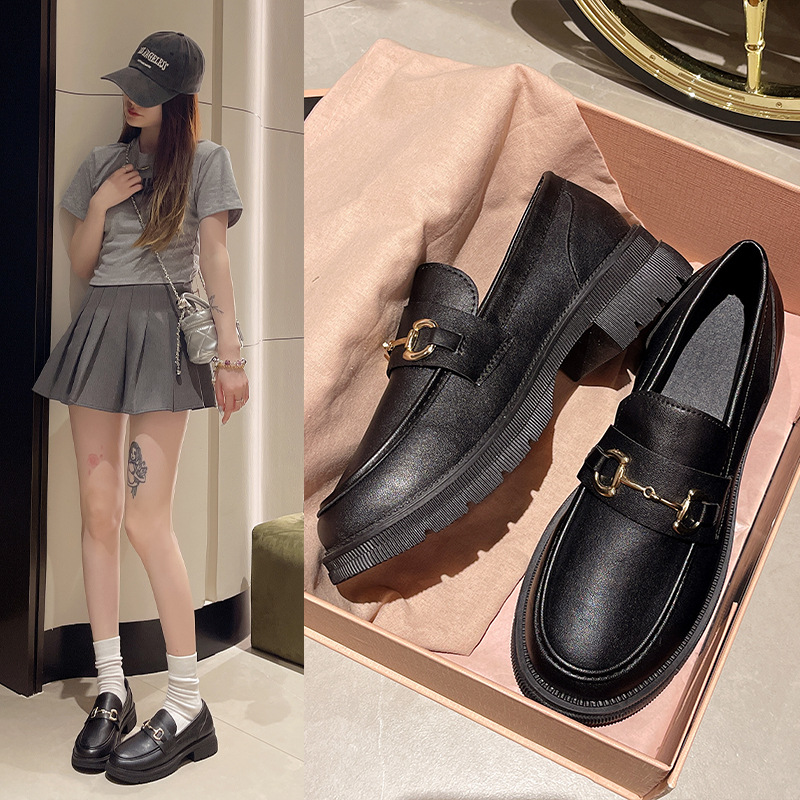 로퍼 여자 2024 년 여름 새로운 두꺼운 밑창 미드 힐 신발 라운드 토 올 매치 여성 싱글 레이어 신발 작은 가죽 신발 슬립 온 여성용 신발스토어 가기