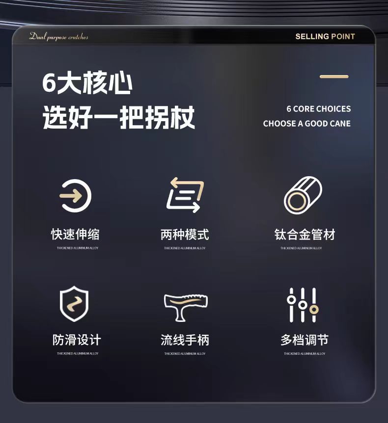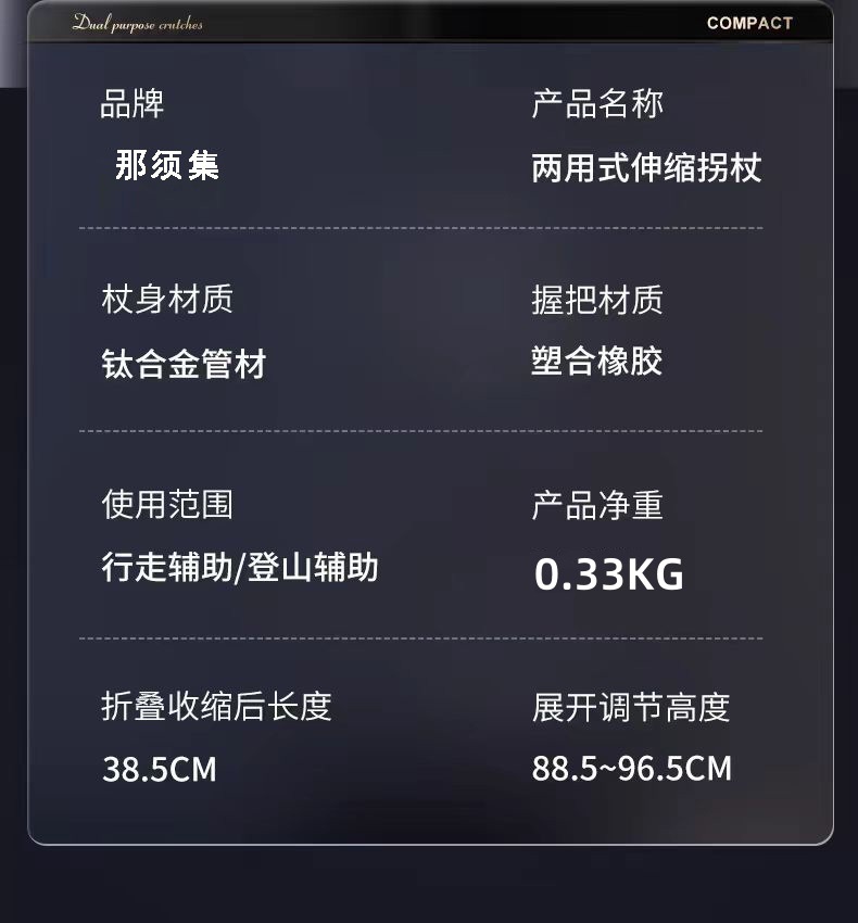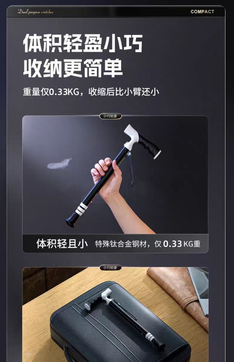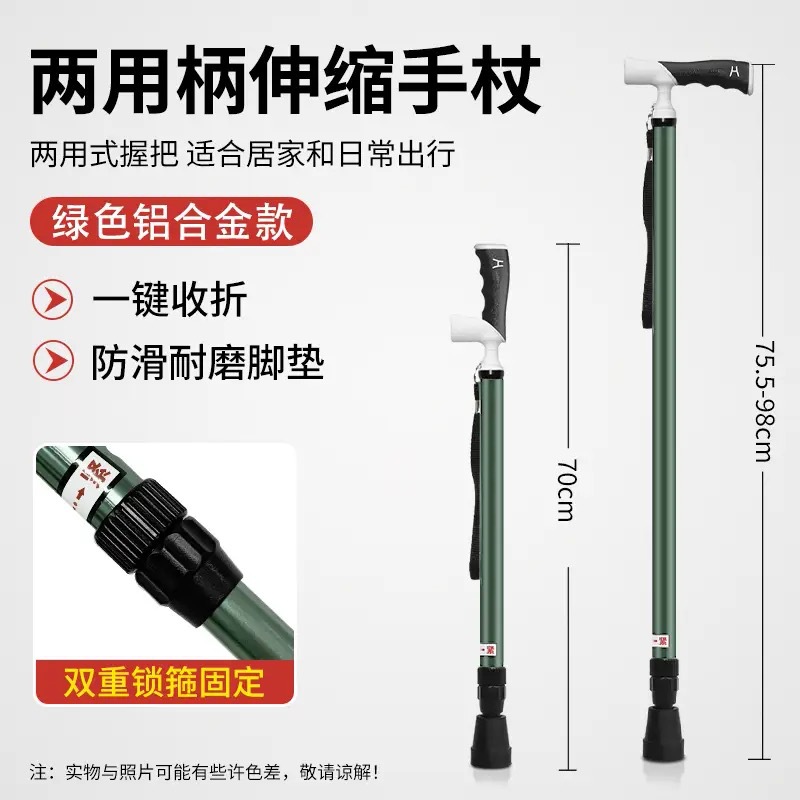 초경량 휴대용 Telescopic Crutch 미끄럼 방지 의료 목발 조절 가능한 이중 목적 등산용 워킹 스틱스토어 가기