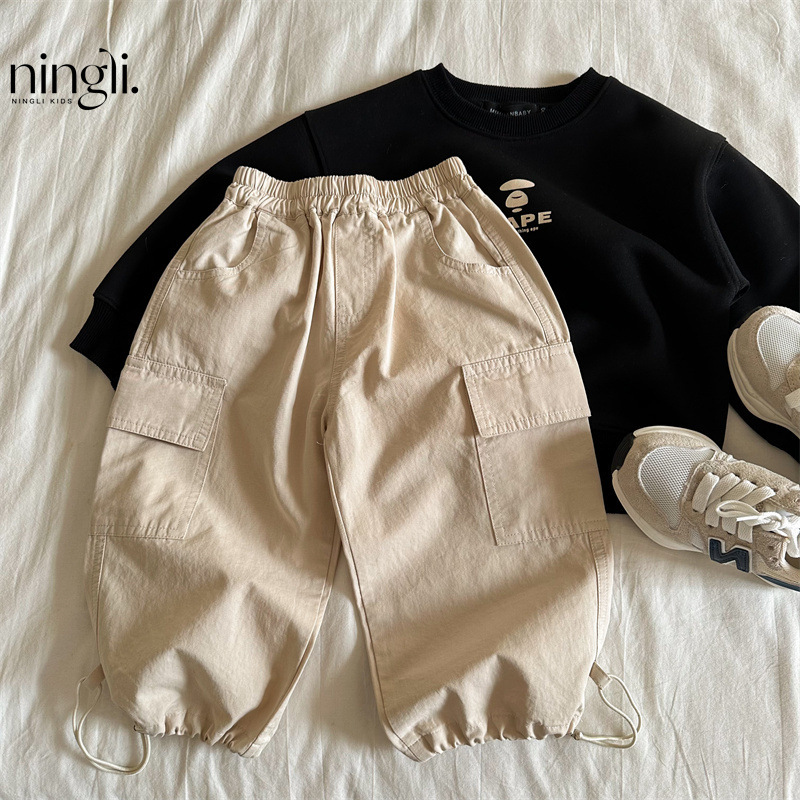 Ningli 아동 바지 소년 소녀 용 가을 신제품 솔리드 컬러 레깅스 오버올 베이비 와이드 레그 코튼 바지 유행