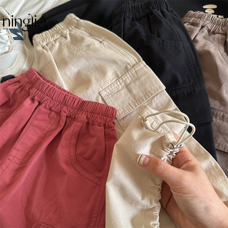 Ningli 아동 바지 소년 소녀 용 가을 신제품 솔리드 컬러 레깅스 오버올 베이비 와이드 레그 코튼 바지 유행스토어 가기