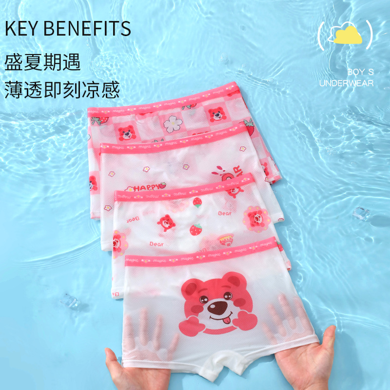 도매 여름 얇은 아이스 실크 메쉬 소녀 속옷 통기성 복서 큰 어린이 어린 소녀 속옷 어린이 속옷