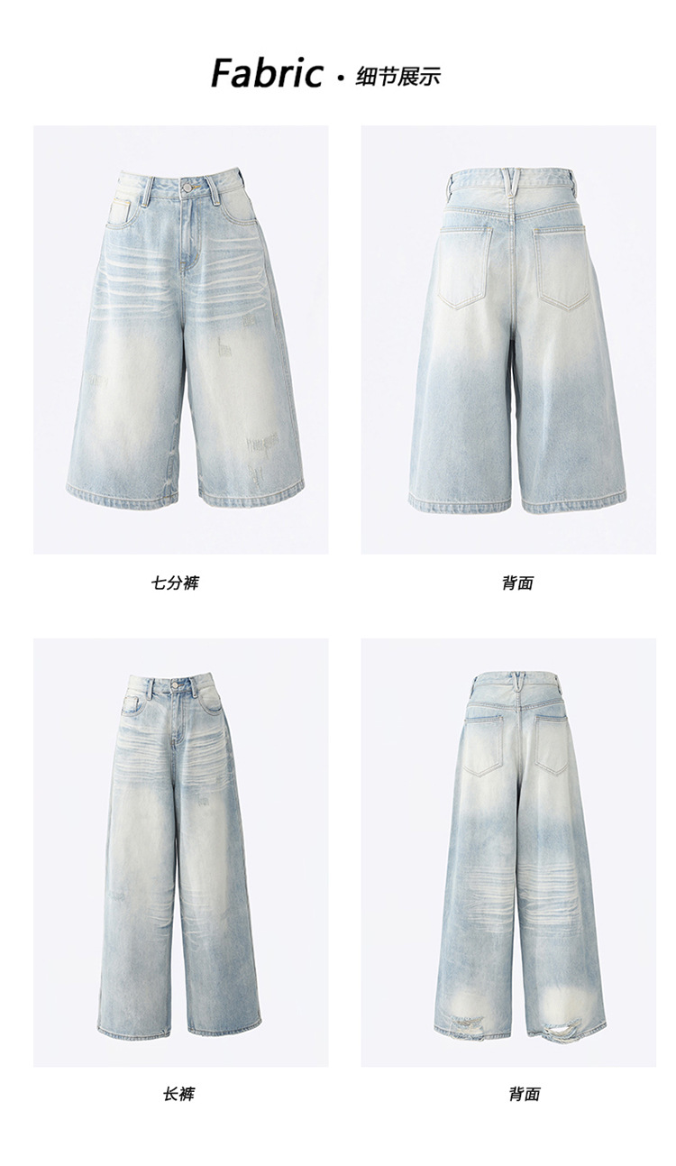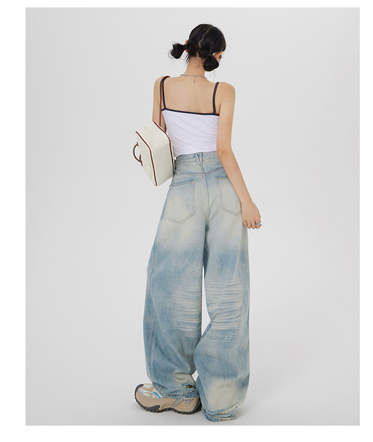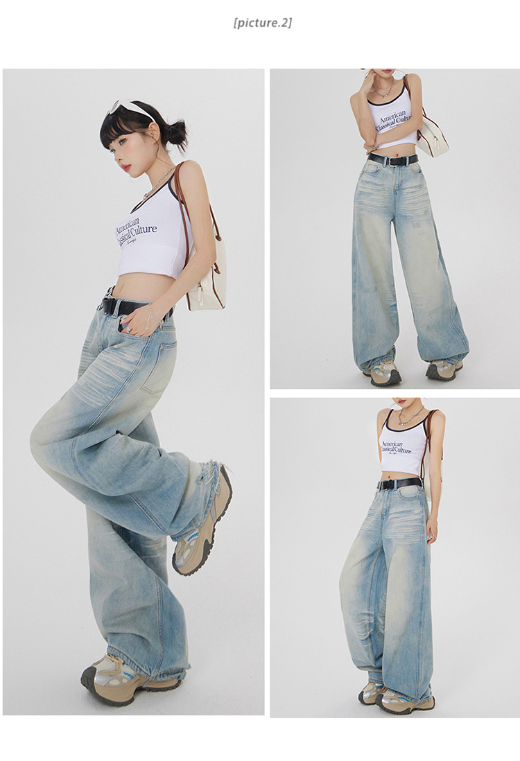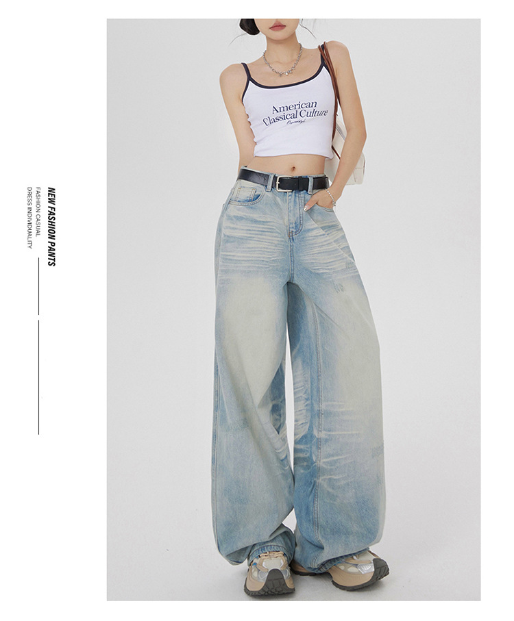 아메리칸 스타일 레트로 세척 느슨한 와이드 레그 청바지 여성의 2024 여름 높은 허리 슬리밍 올 매치 트렌디 리핑 스트레이트 팬츠스토어 가기