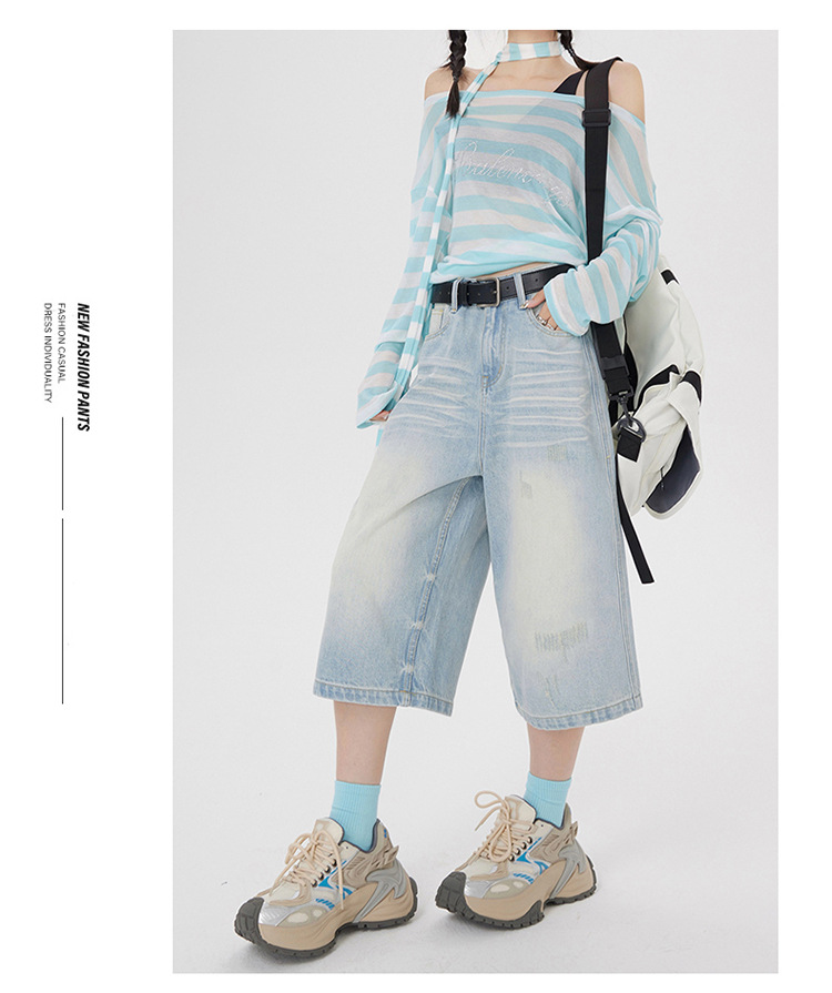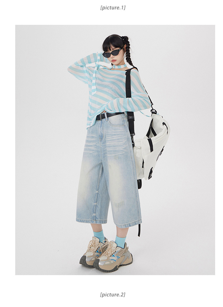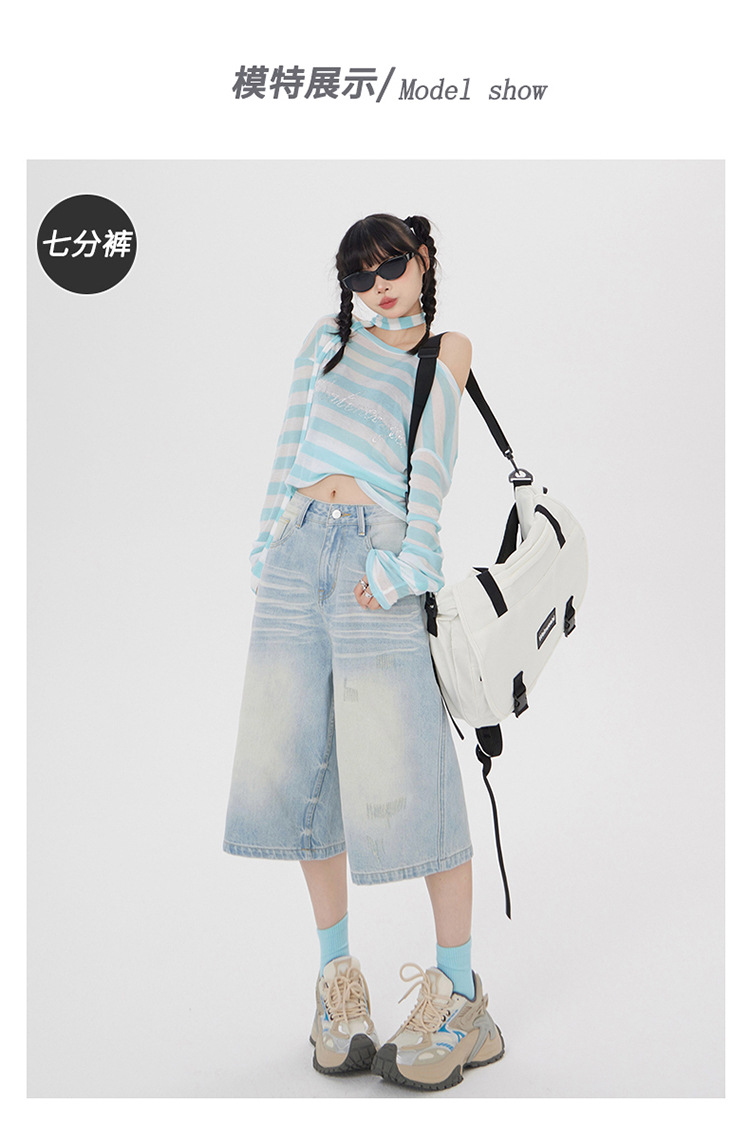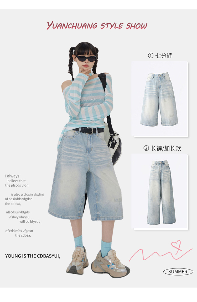 아메리칸 스타일 레트로 세척 느슨한 와이드 레그 청바지 여성의 2024 여름 높은 허리 슬리밍 올 매치 트렌디 리핑 스트레이트 팬츠스토어 가기