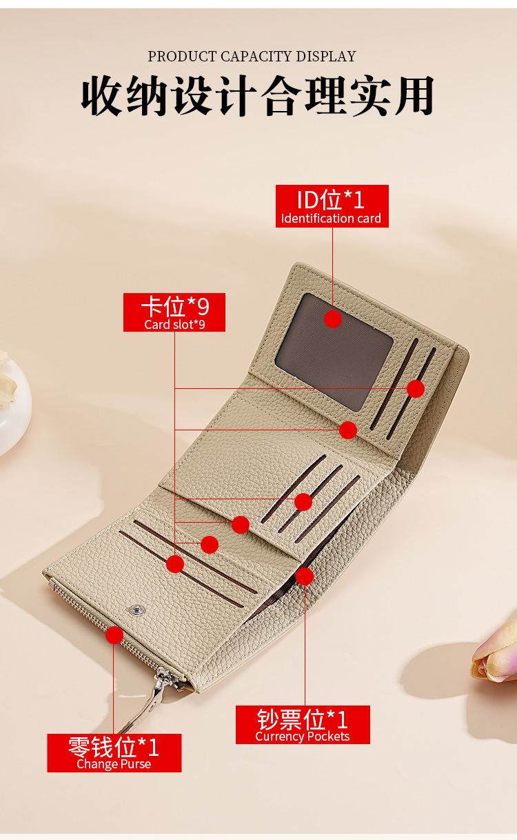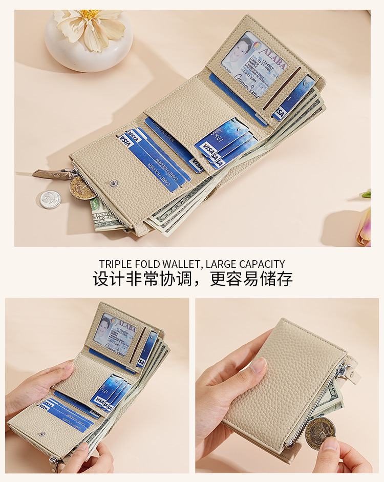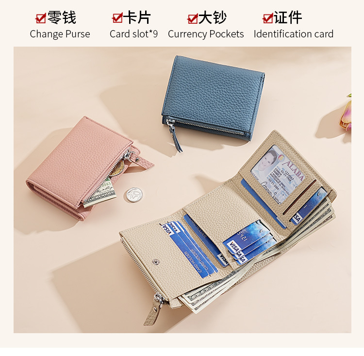 정품 가죽 일본식 지갑 여성 3 배 신용 카드 홀더 RFID 접이식 카드 홀더 카우보이 리치 패턴 지퍼 동전 가방스토어 가기