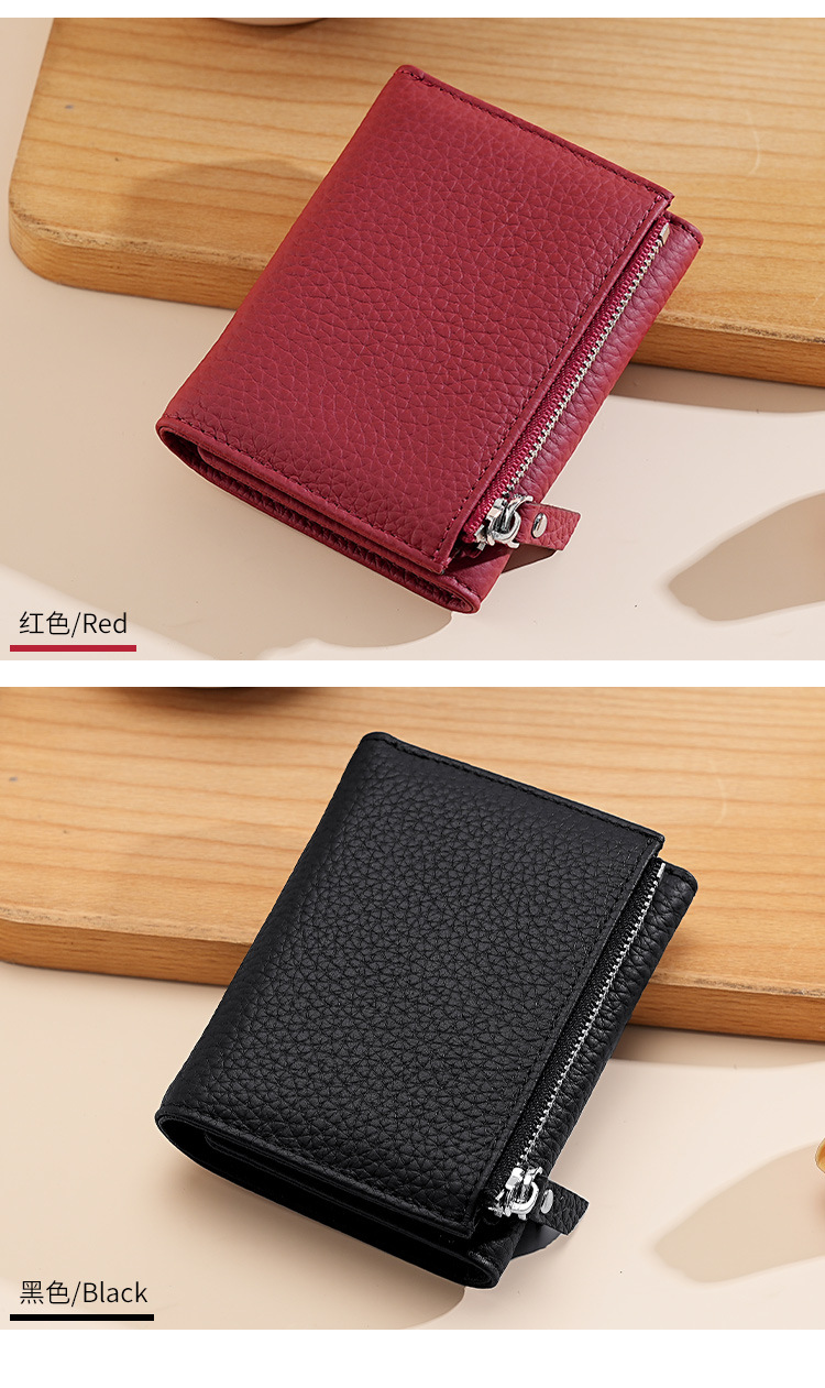 정품 가죽 일본식 지갑 여성 3 배 신용 카드 홀더 RFID 접이식 카드 홀더 카우보이 리치 패턴 지퍼 동전 가방
