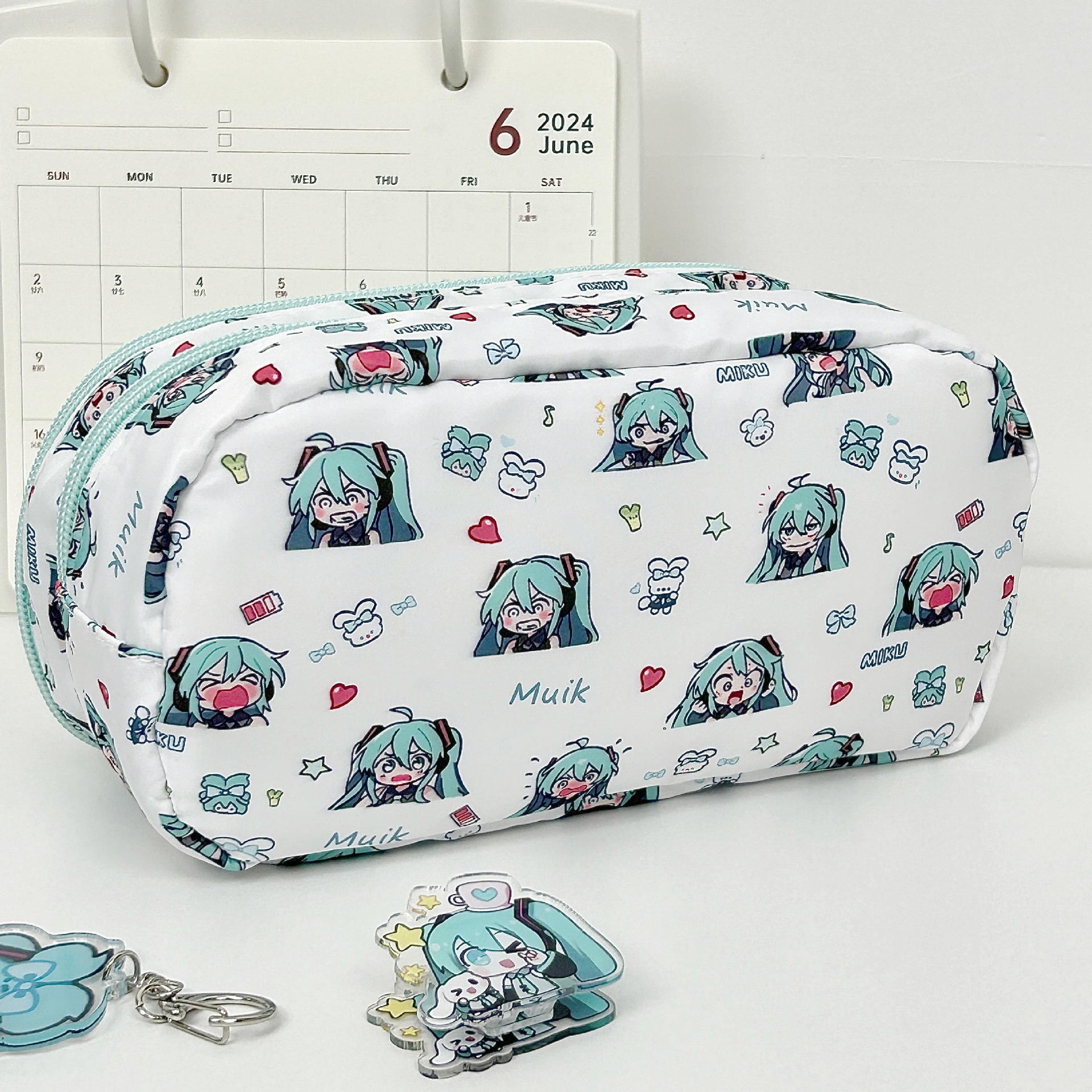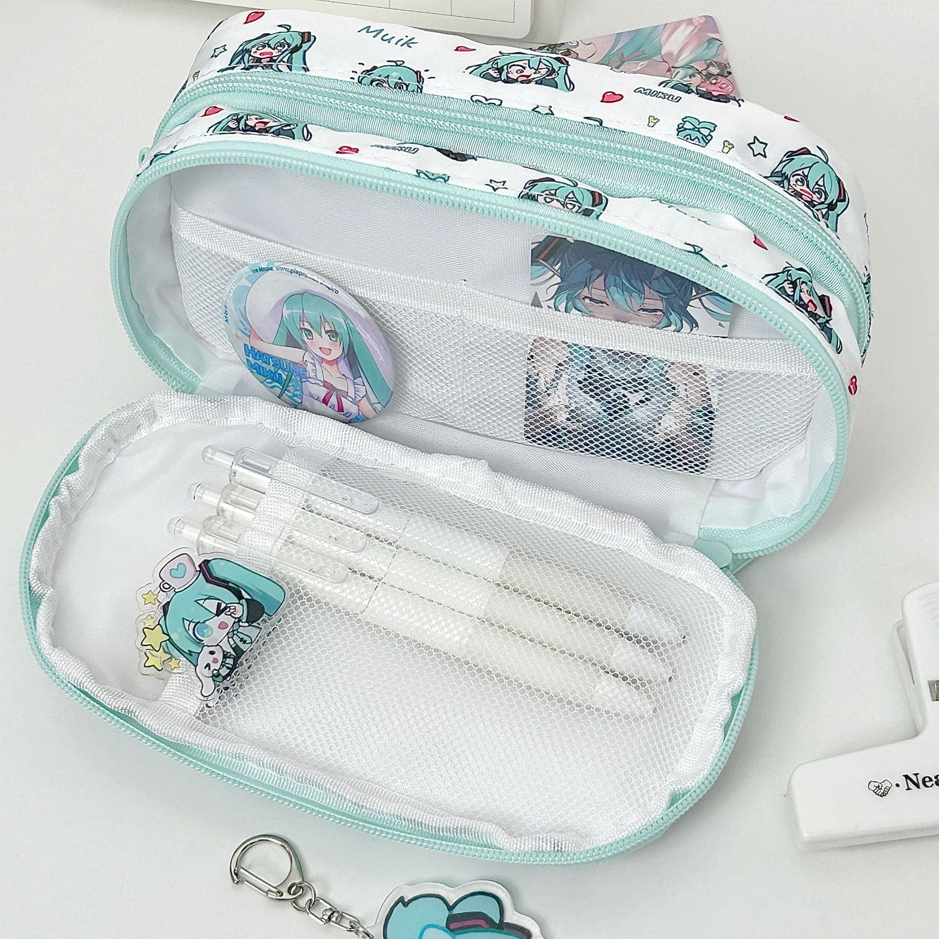 히소노 미래 4 층 통증 팩 연필 가방 미쿠 높은 가치의 학생 연필 문구 가방 대용량 투명 문구 상자