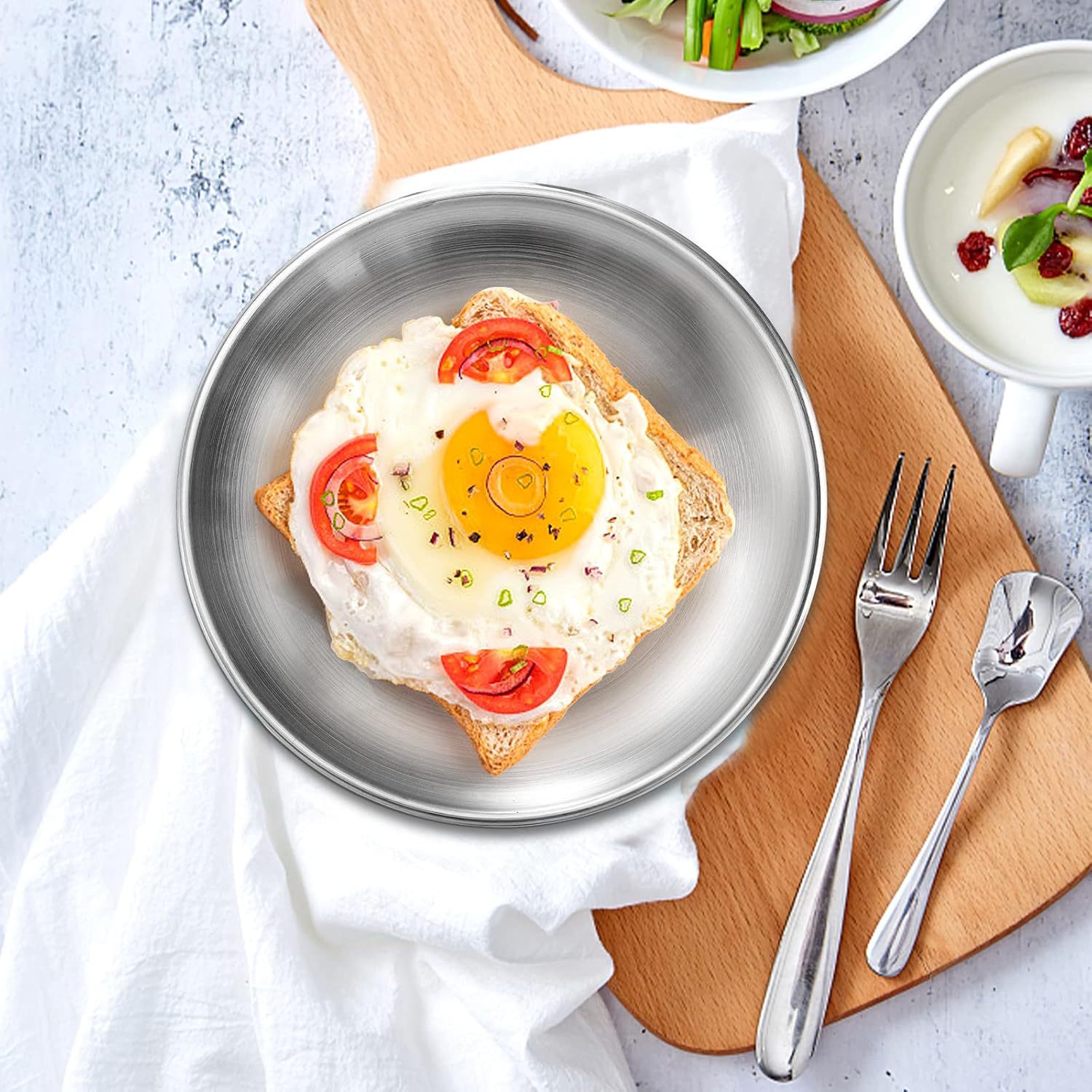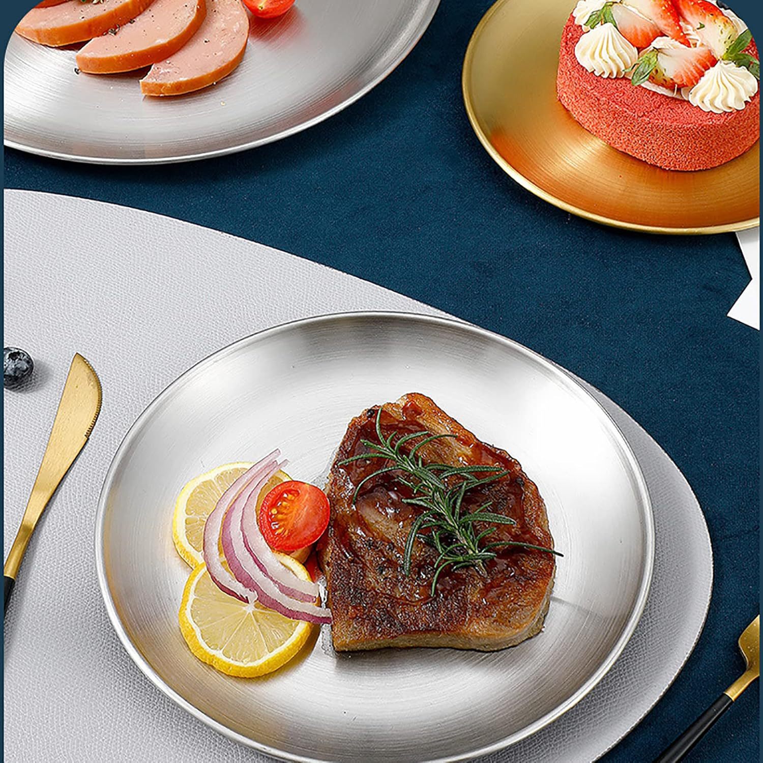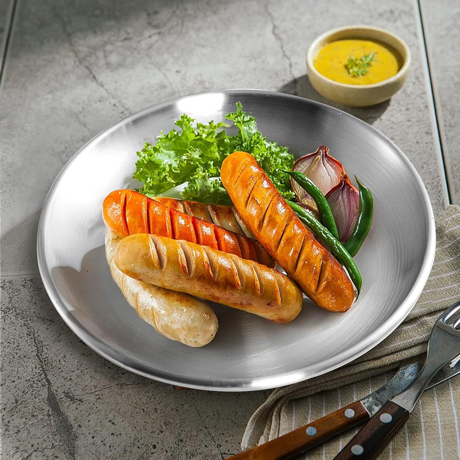304 스테인레스 스틸 디너 플레이트 야외 캠핑 플레이트 과일 플레이트 플랫 플레이트 경량 디너 플레이트 두꺼운 플레이트스토어 가기