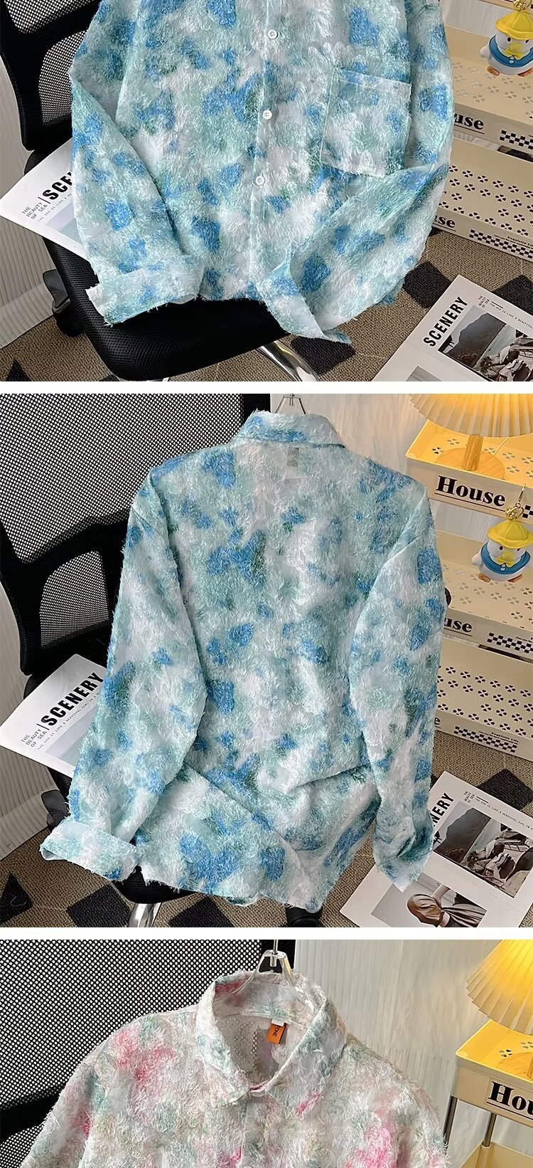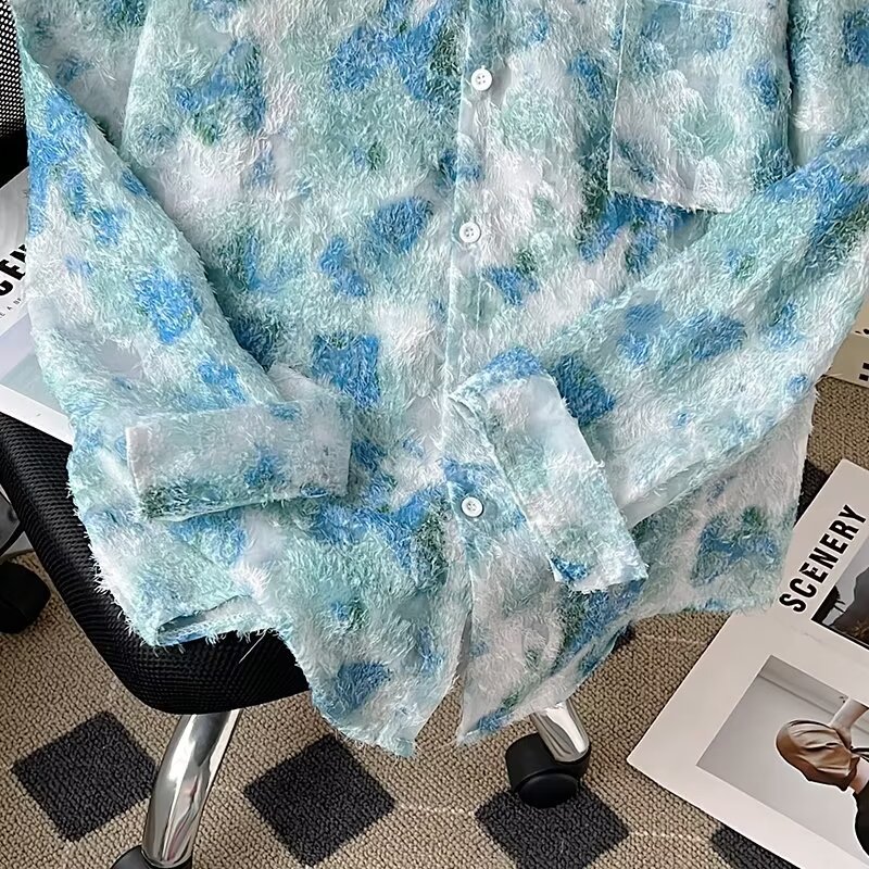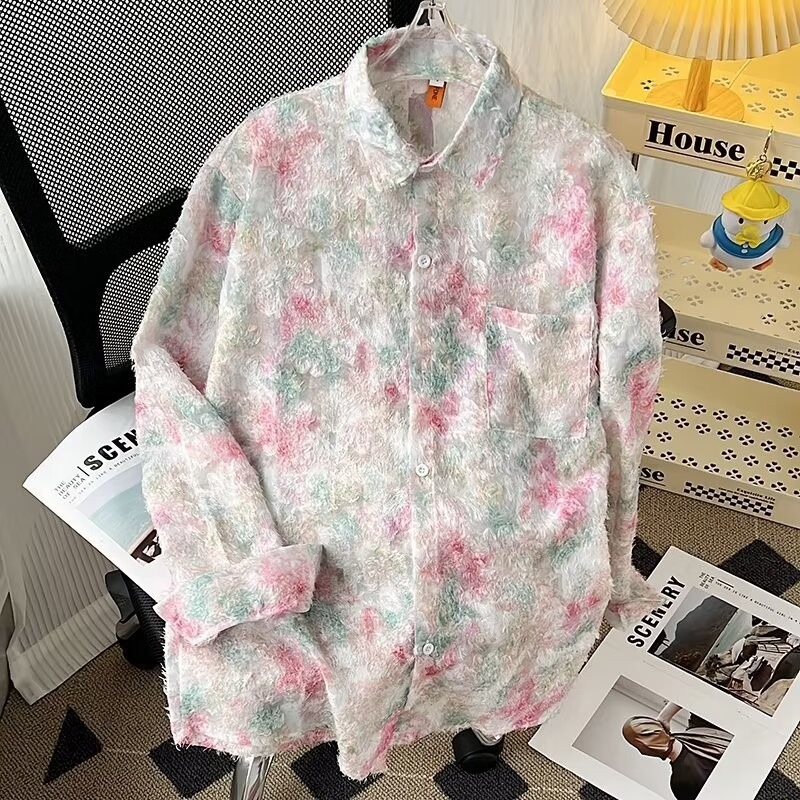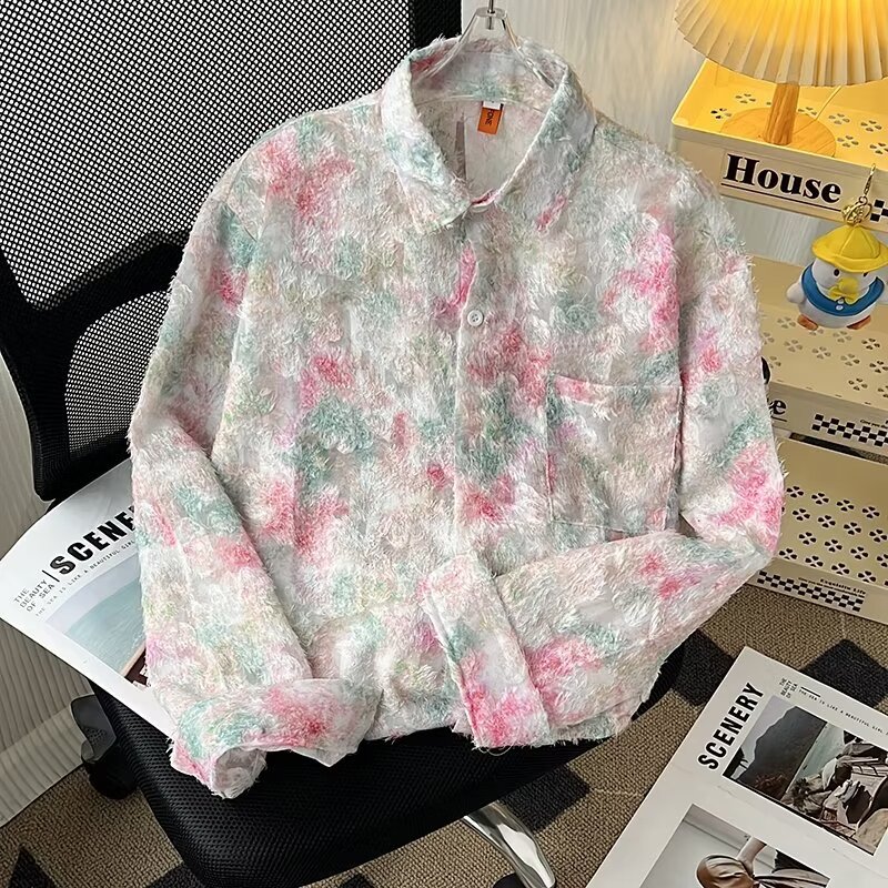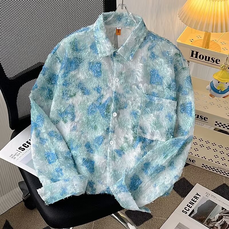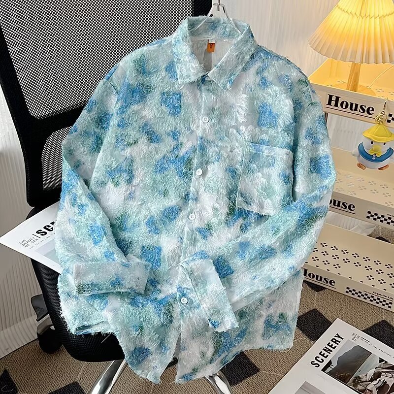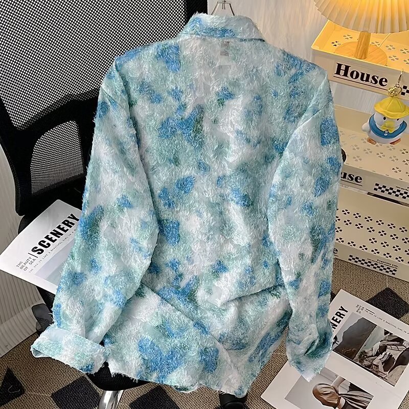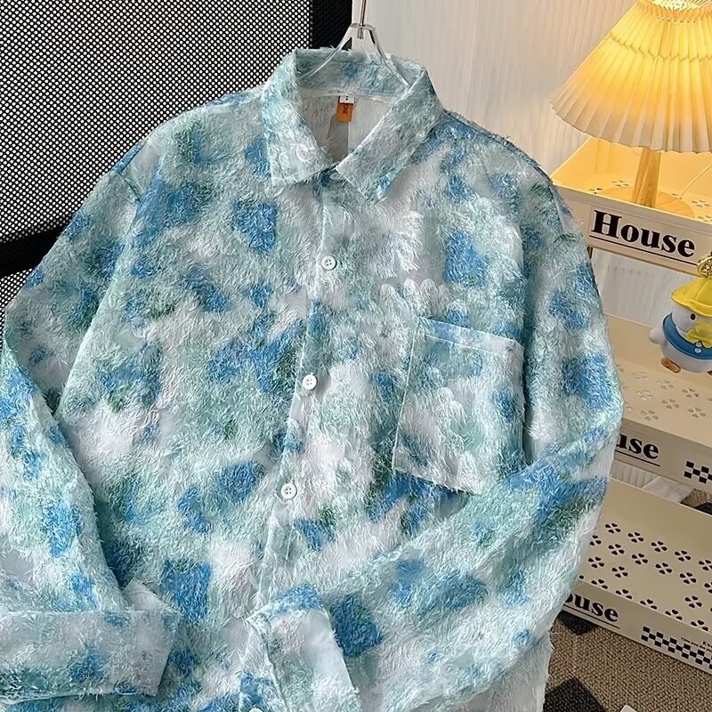봄과 가을 새로운 중국 스타일 국가 스타일 나비 자수 분위기 셔츠 남자의 틈새 캐주얼 느슨한 긴 소매 탑