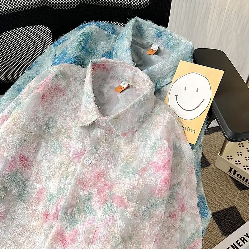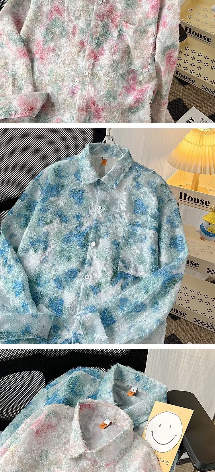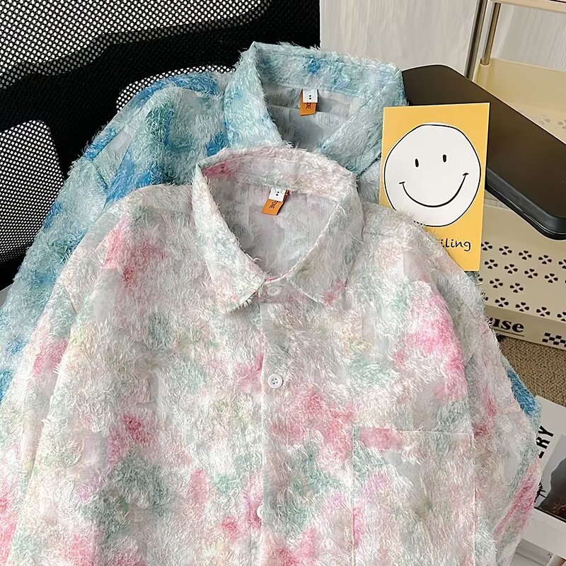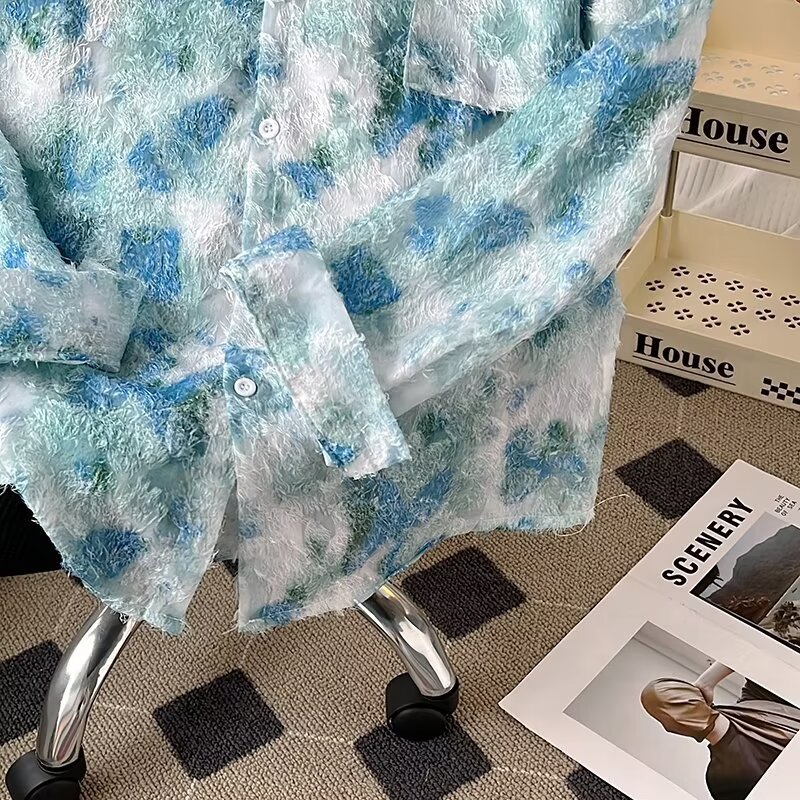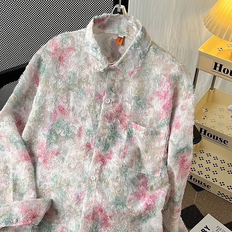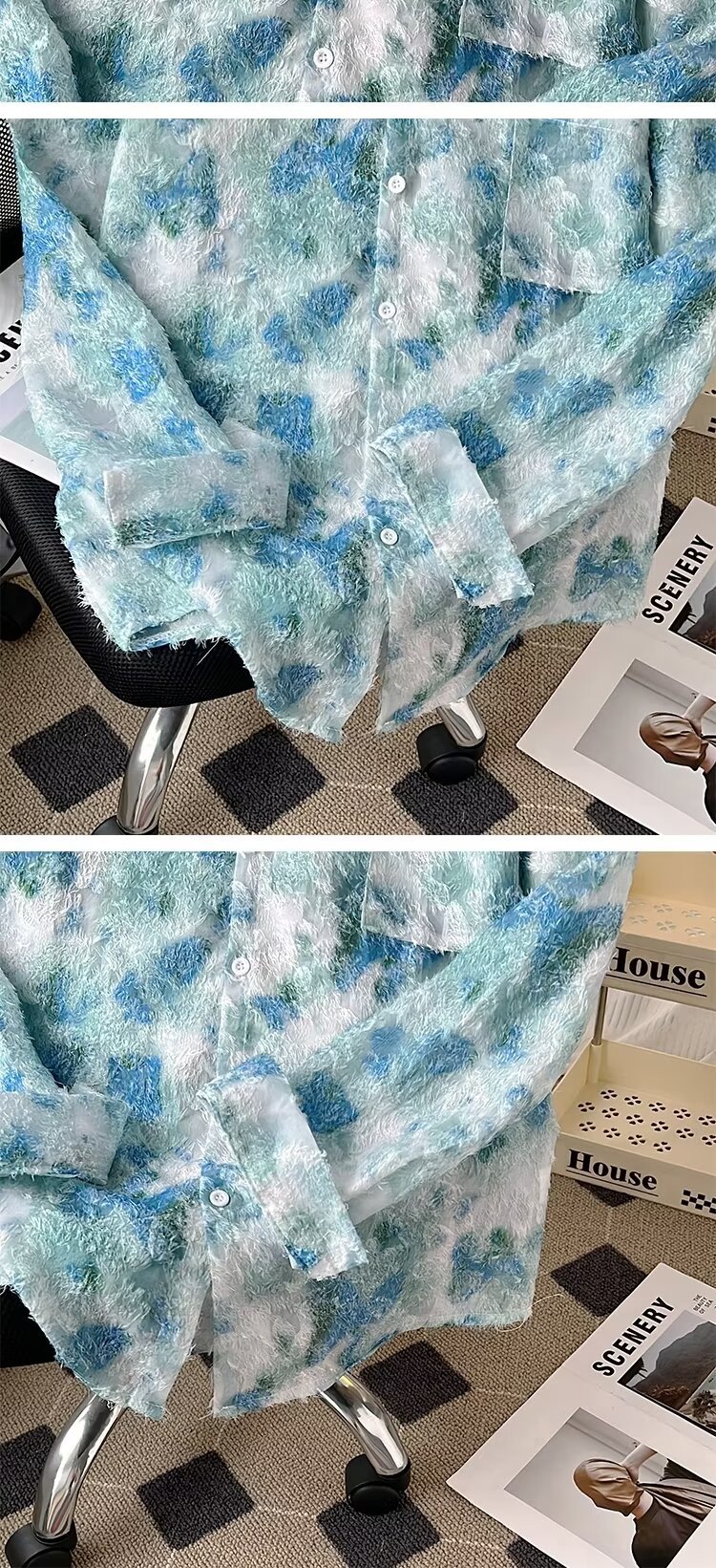 봄과 가을 새로운 중국 스타일 국가 스타일 나비 자수 분위기 셔츠 남자의 틈새 캐주얼 느슨한 긴 소매 탑