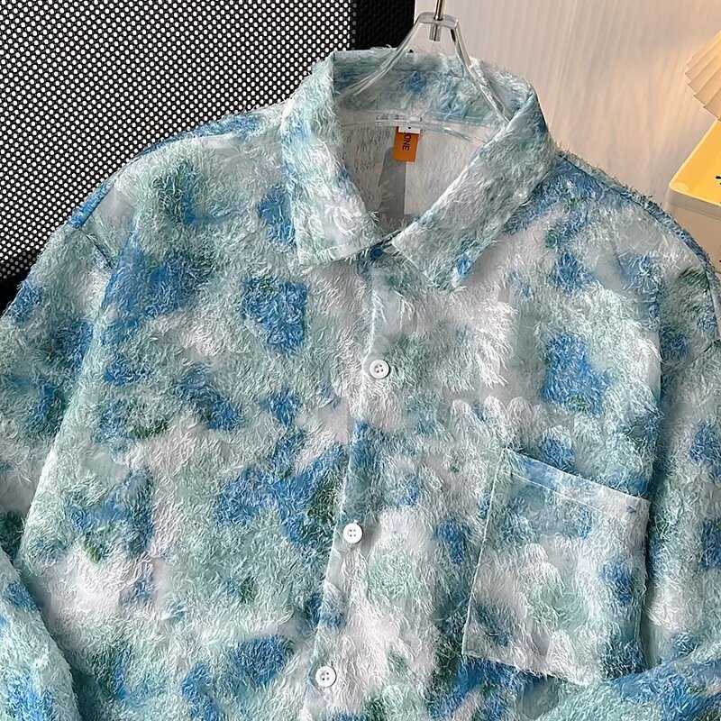 봄과 가을 새로운 중국 스타일 국가 스타일 나비 자수 분위기 셔츠 남자의 틈새 캐주얼 느슨한 긴 소매 탑스토어 가기