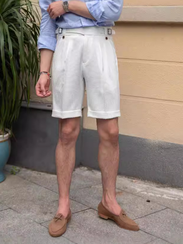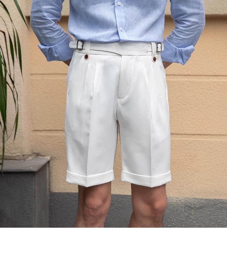 남자의 얇은 여름 통기성 구르 카 캐주얼 반바지 이탈리아 영국 복고풍 허리 직선 바지 Yuppie 바지